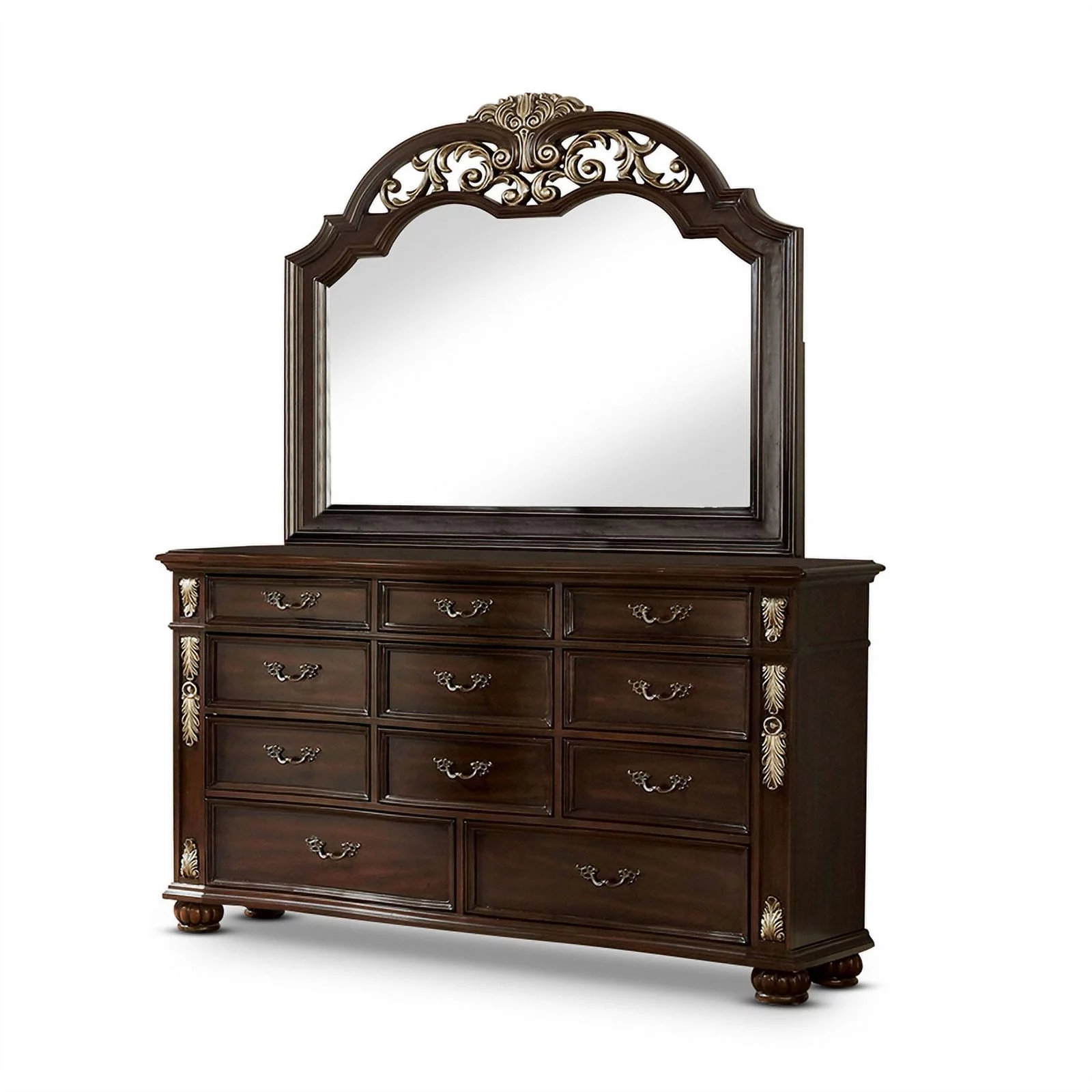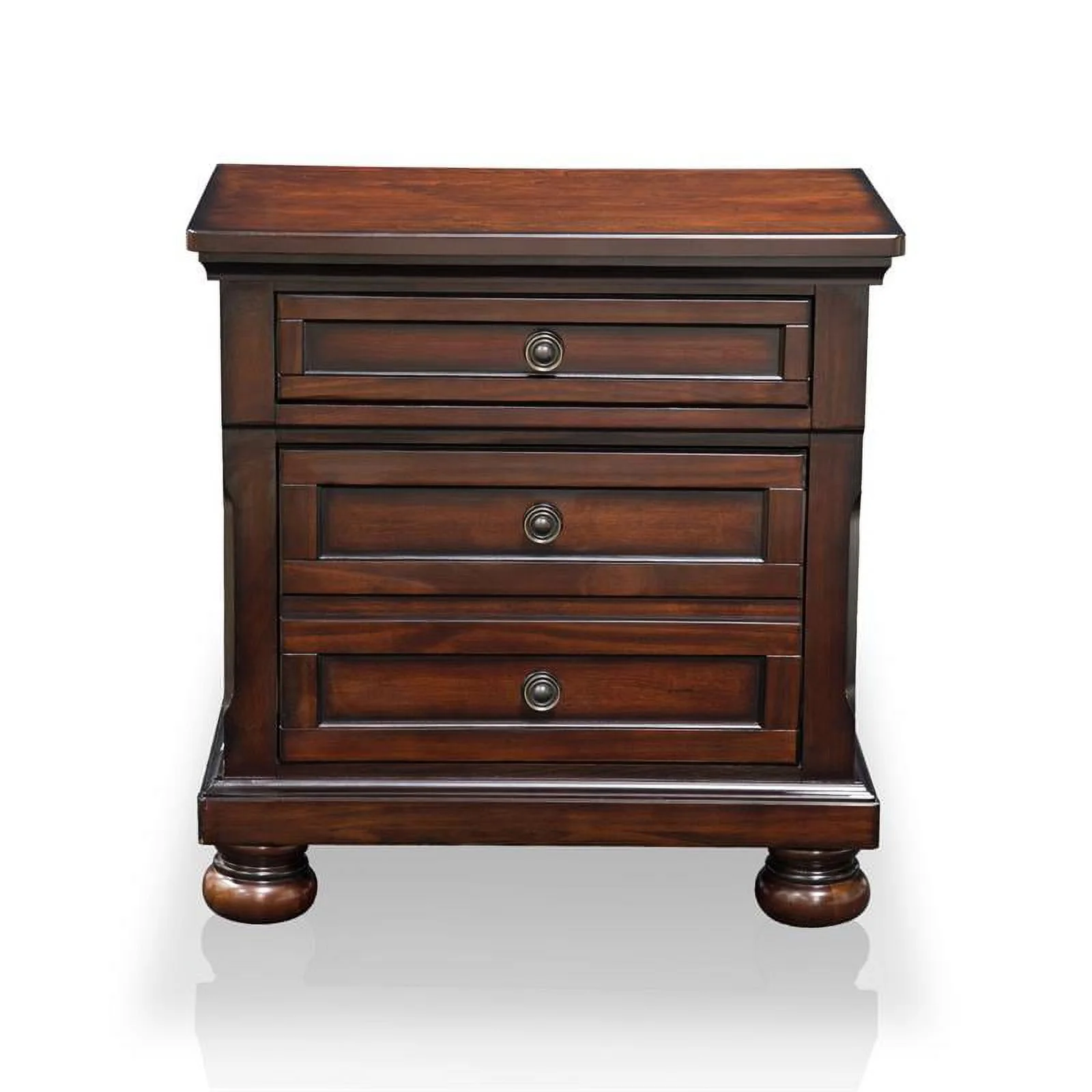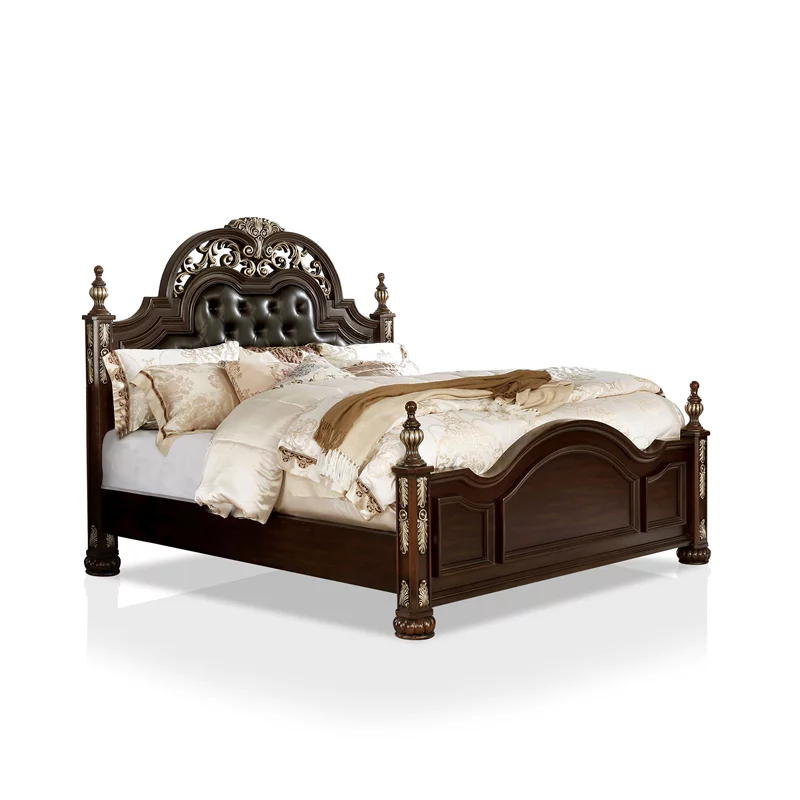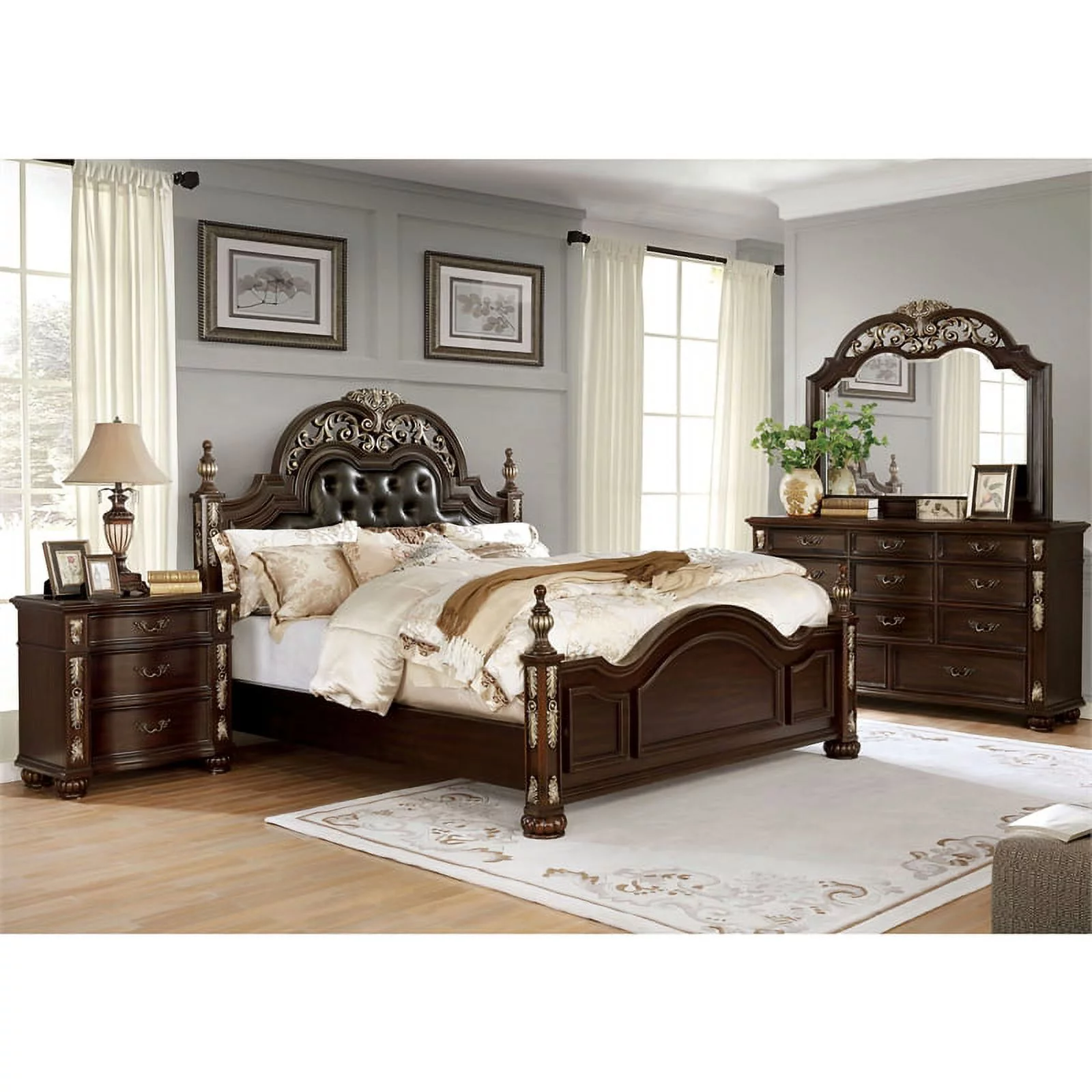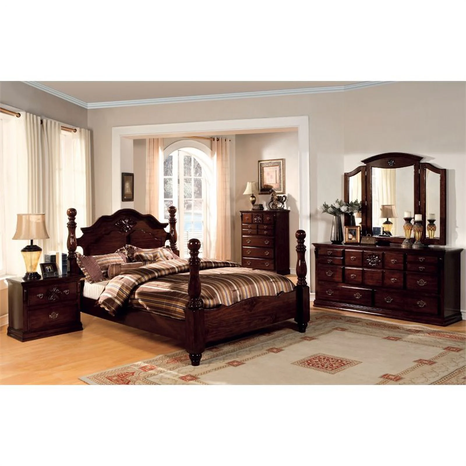 FOA Eckel 4pc Brown Cherry Wood Bedroom Set - King+Nightstand+Dresser+Mirror