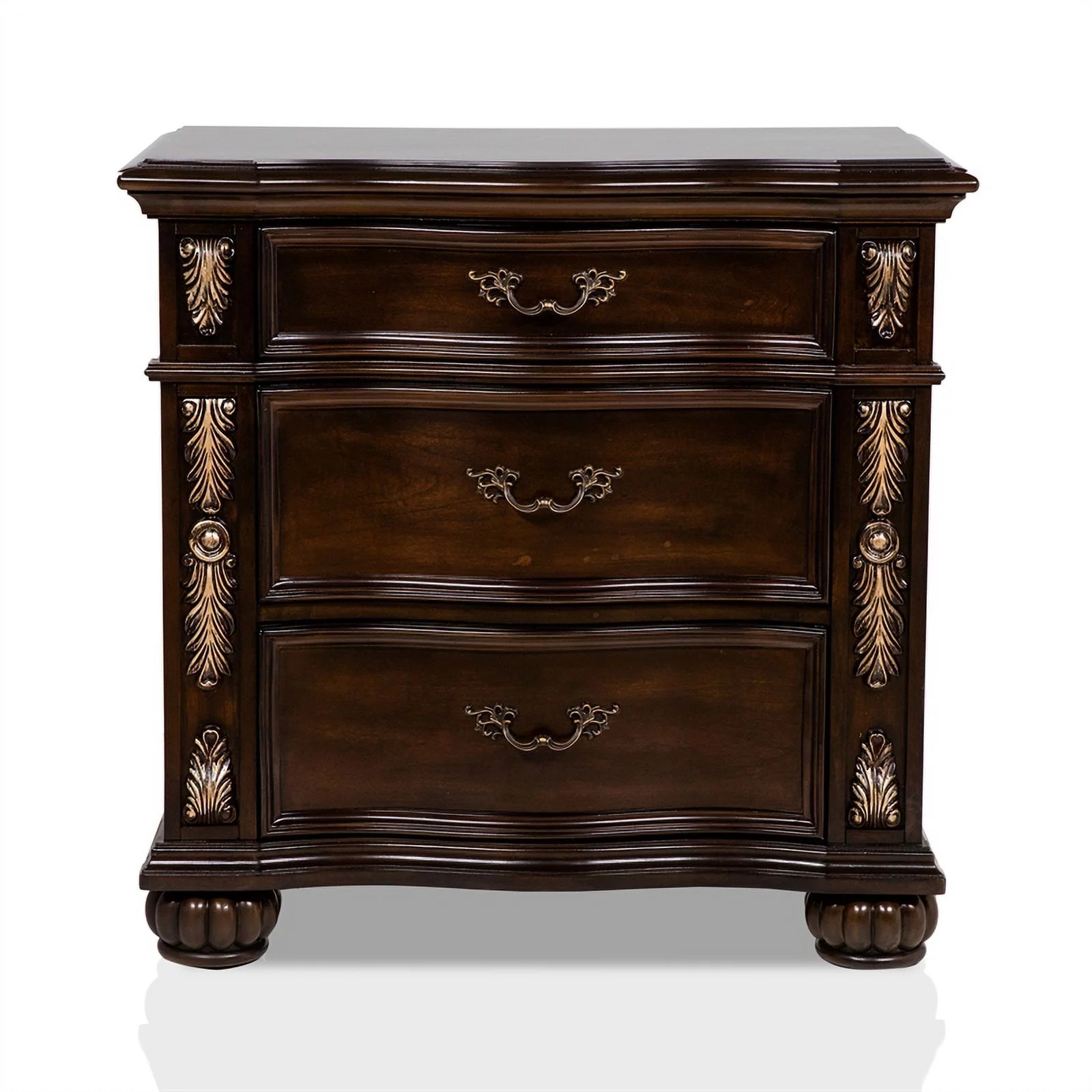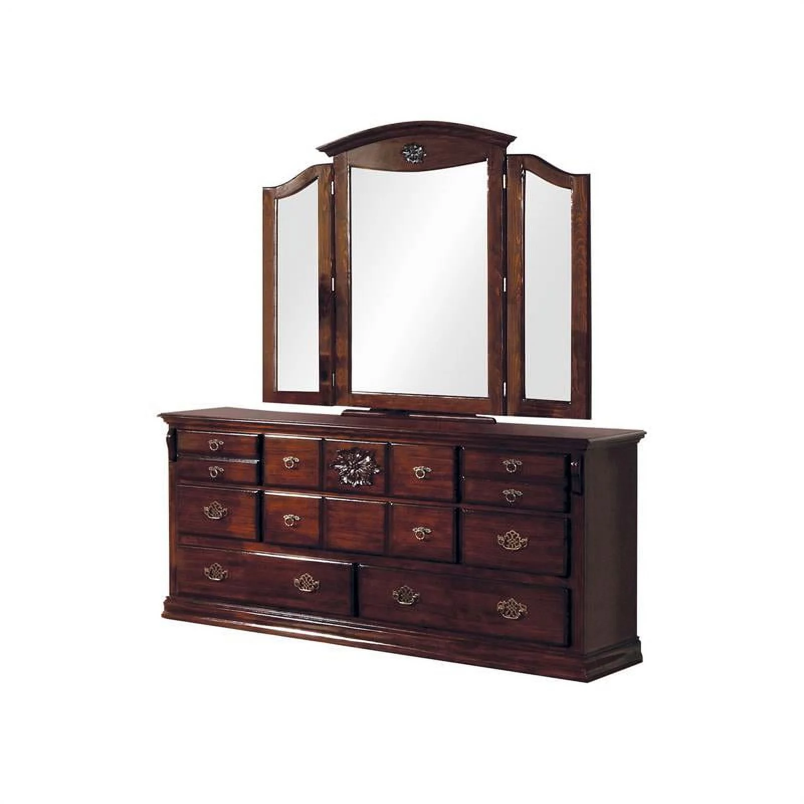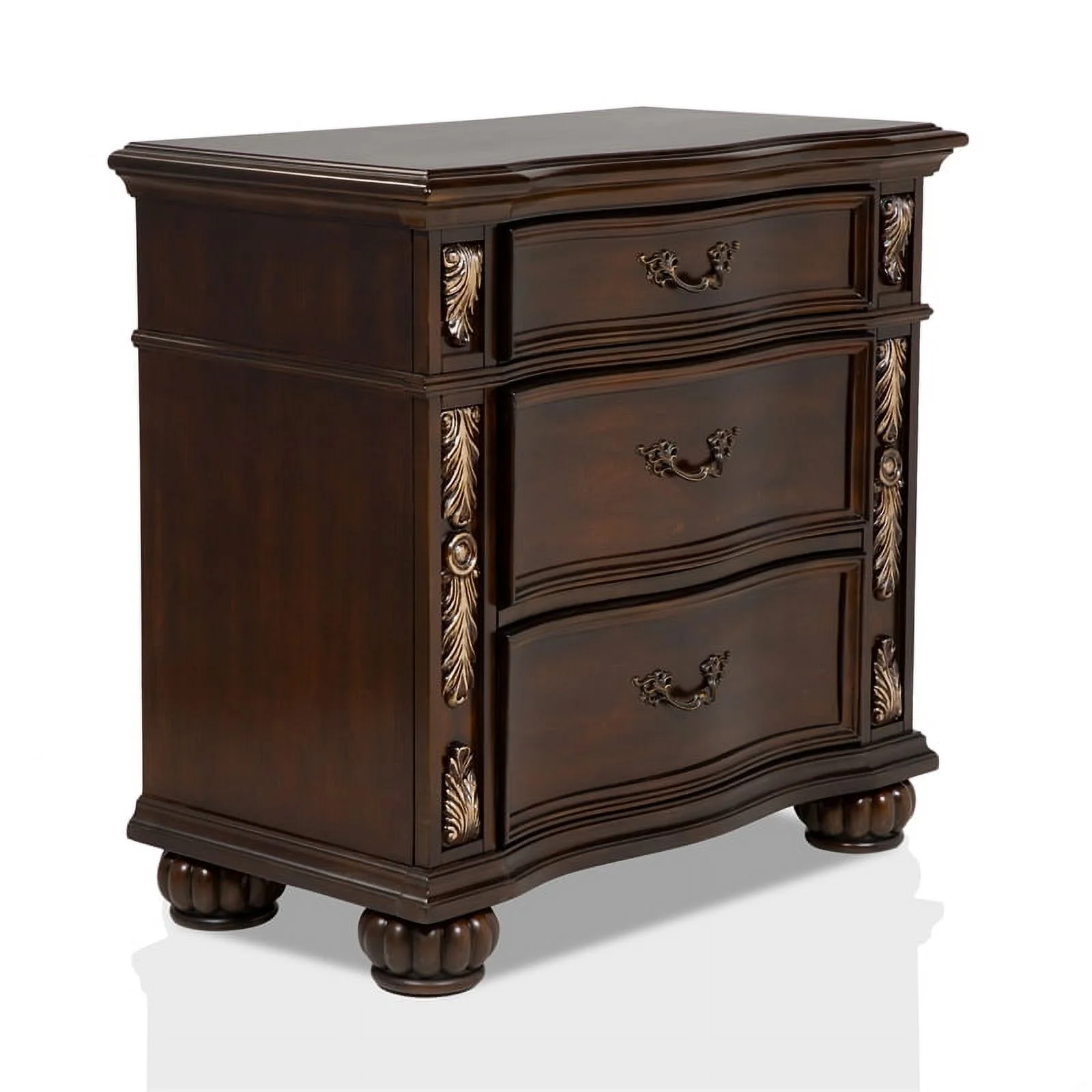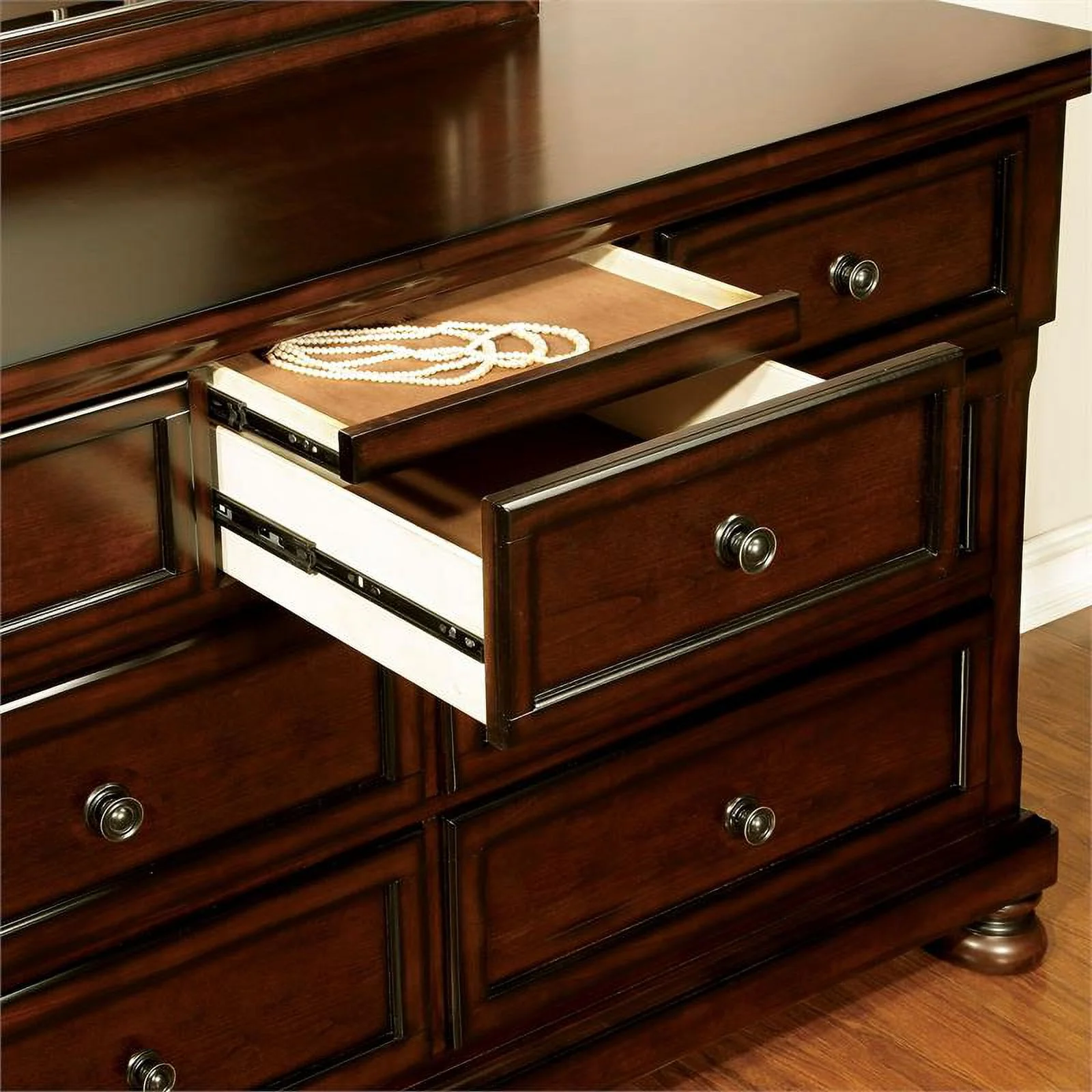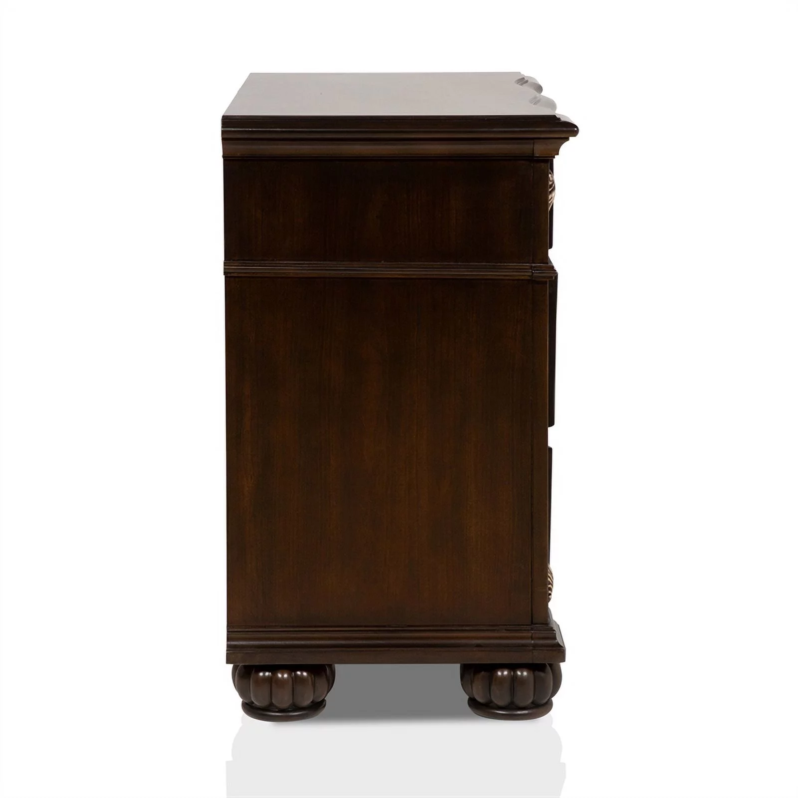FOA Eckel 4pc Brown Cherry Wood Bedroom Set - King+Nightstand+Dresser+Mirror