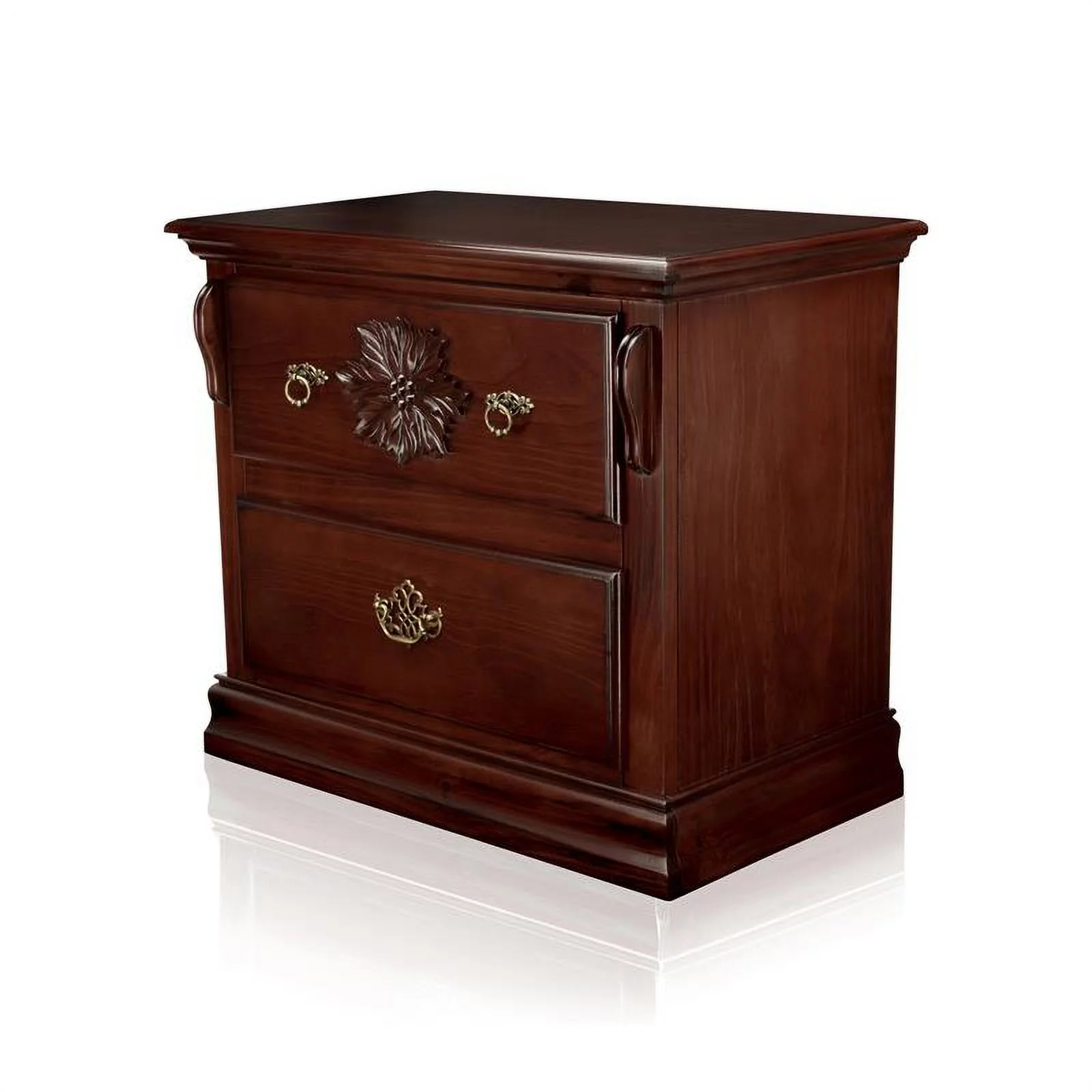 FOA Caiden 2pc Dark Cherry Solid Wood Bedroom Set - Nightstand + Dresser