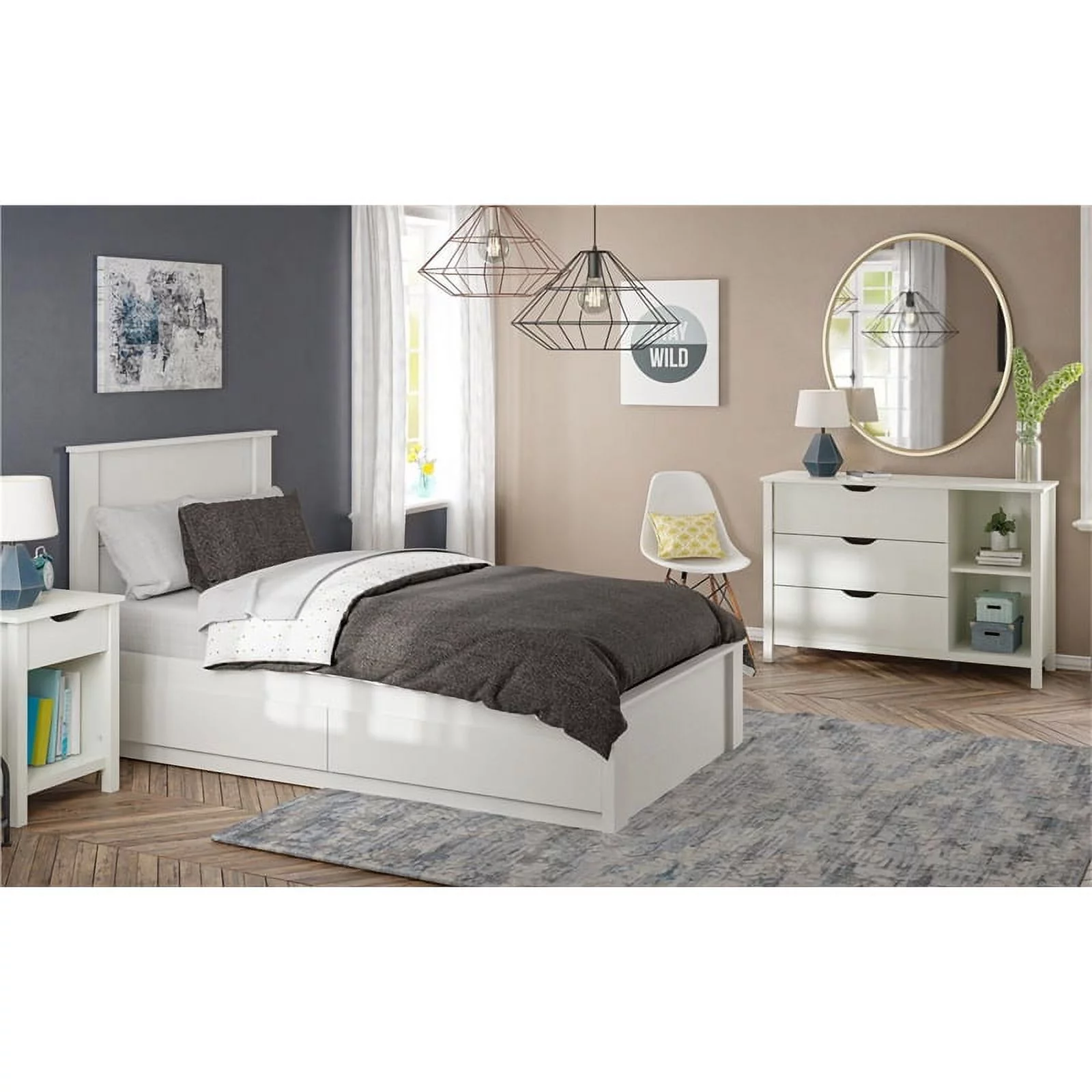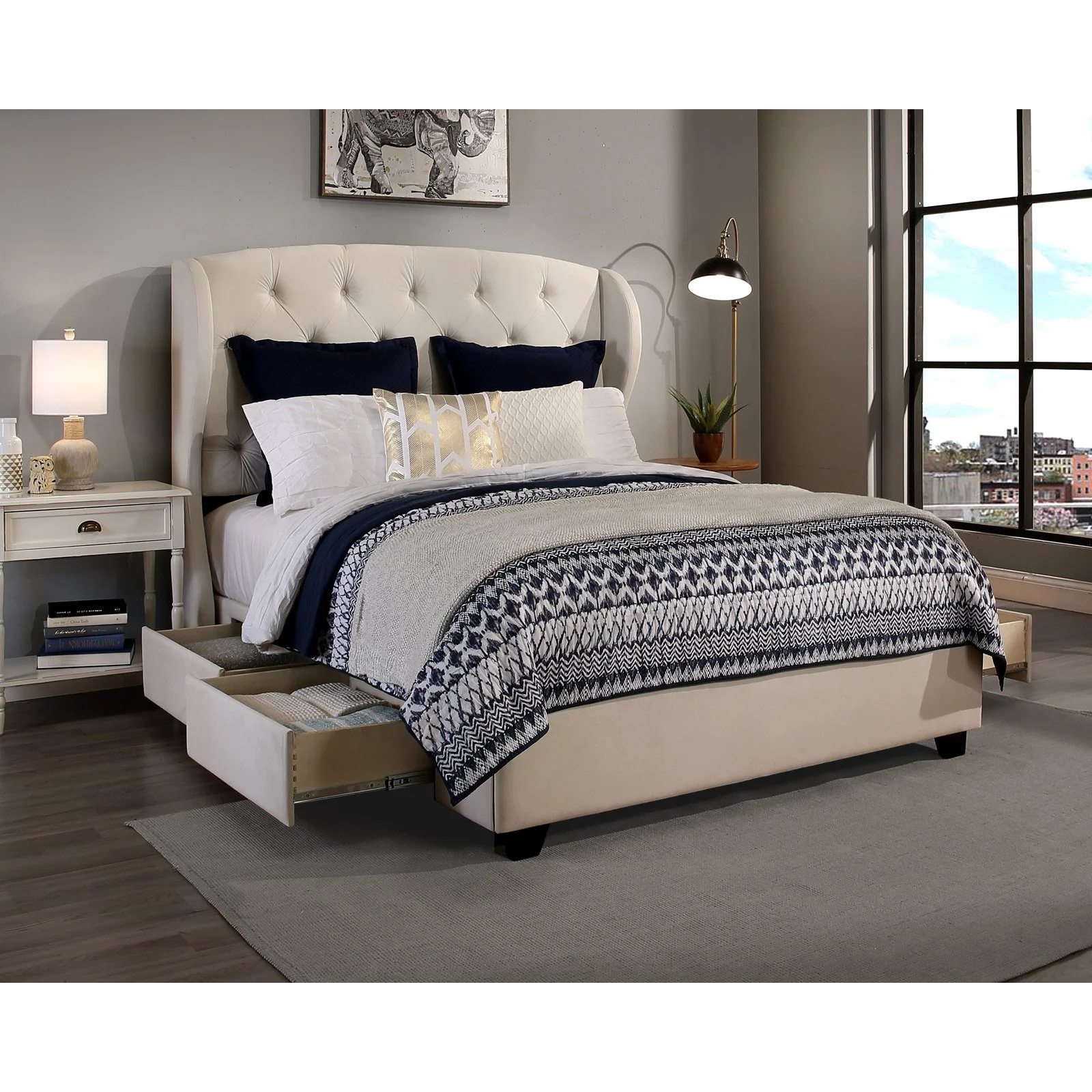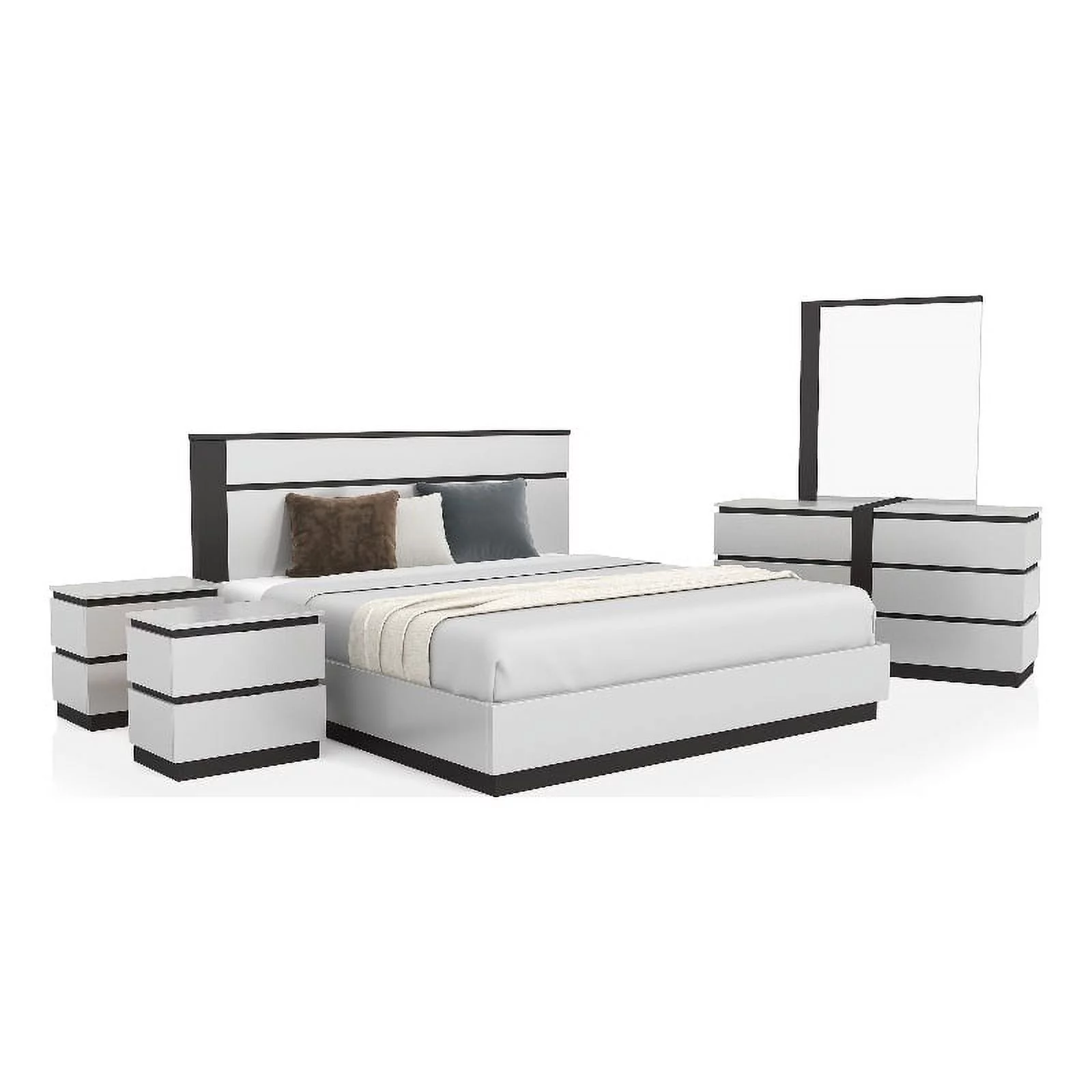 FOA Misti 5pc White Wood Storage Bed Set - King+2 Nightstands+Dresser+Mirror