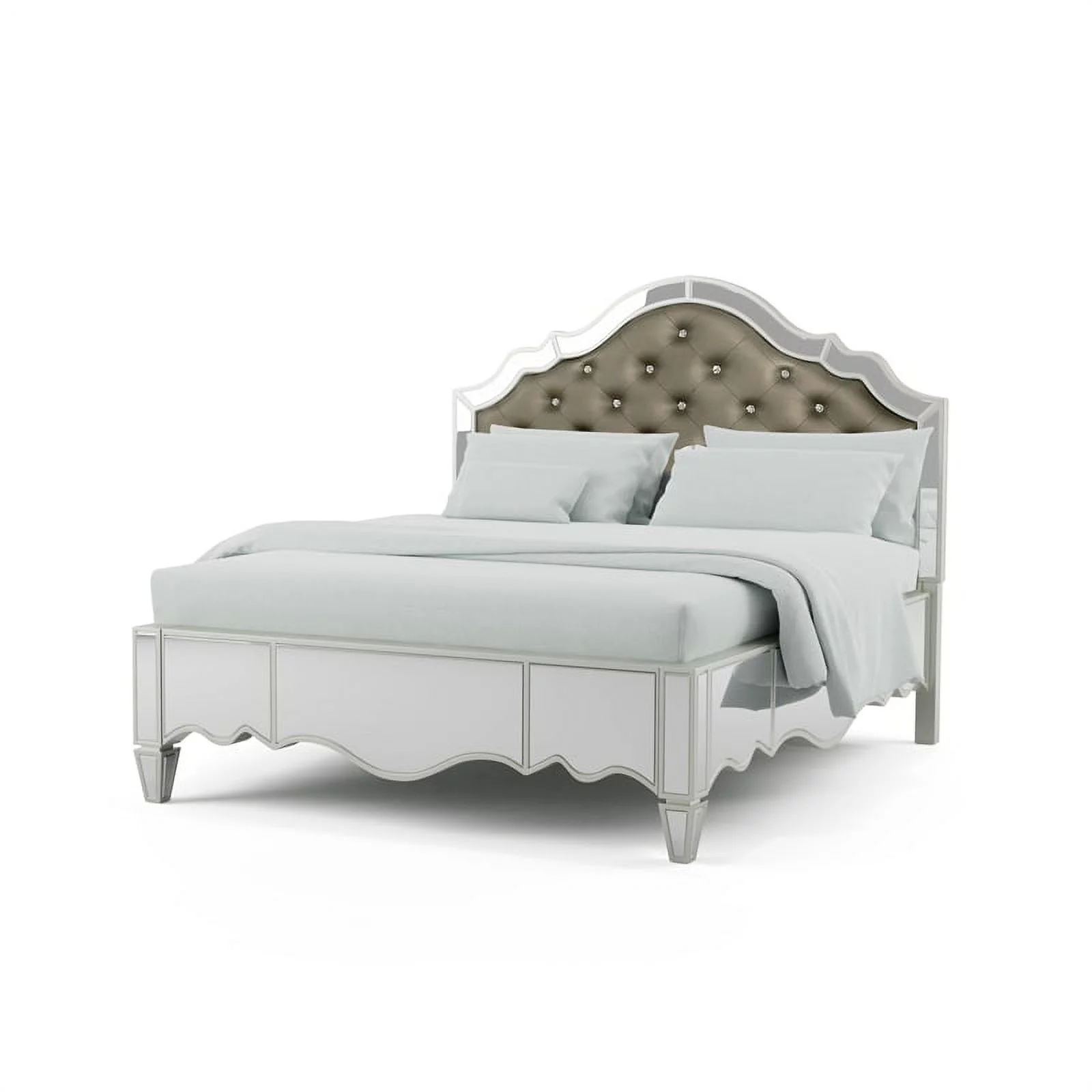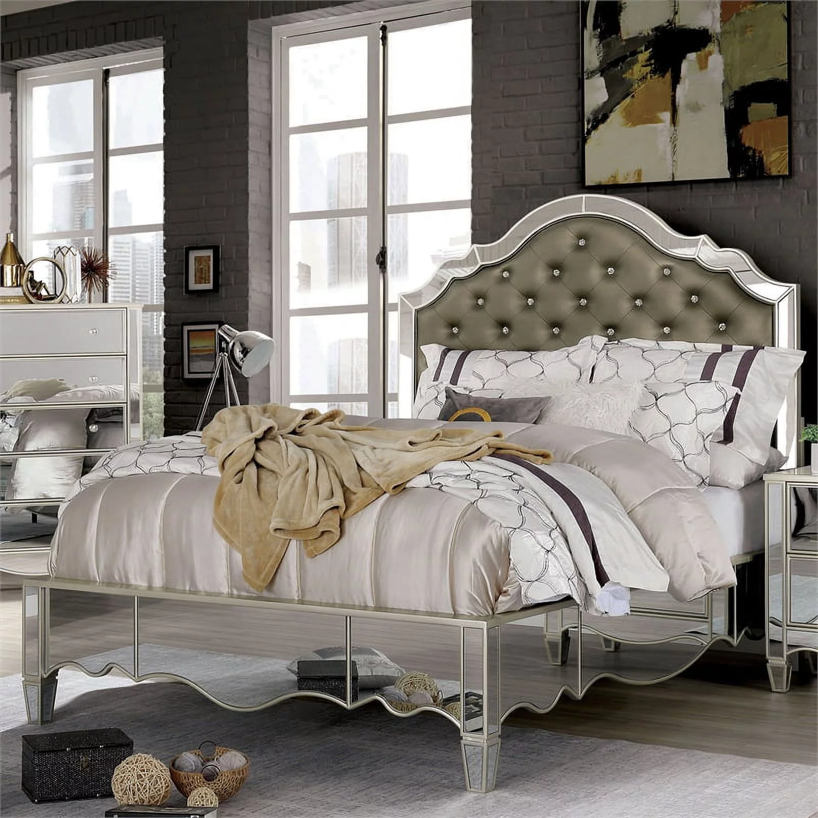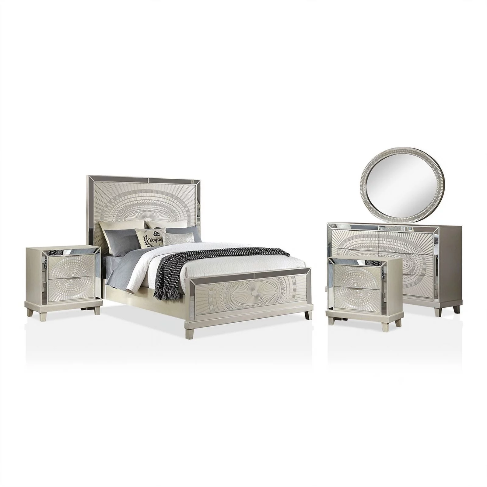 FOA Suie 5pc Champagne Gold Wood Bed Set - King+2 Nightstands+Dresser+Mirror