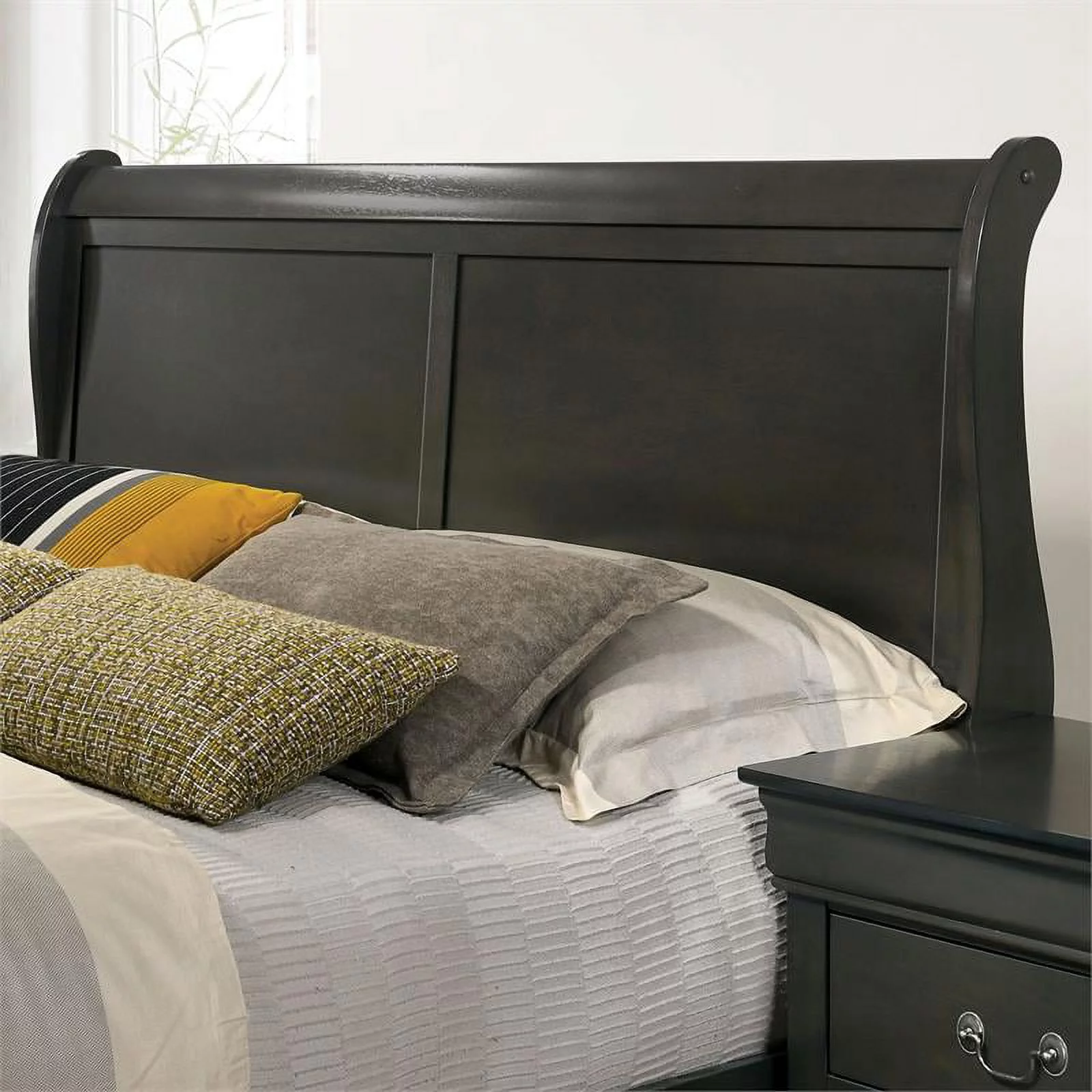 1pc Full Size Gray Fabric Upholstered Tufted Panel Headboard Bed Furniture