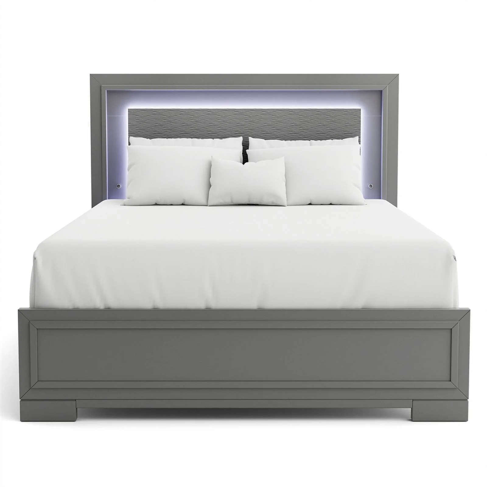 FOA Santi 6pc Gray Wood Bedroom Set - King +2 Nightstands +Chest +Dresser+Mirror