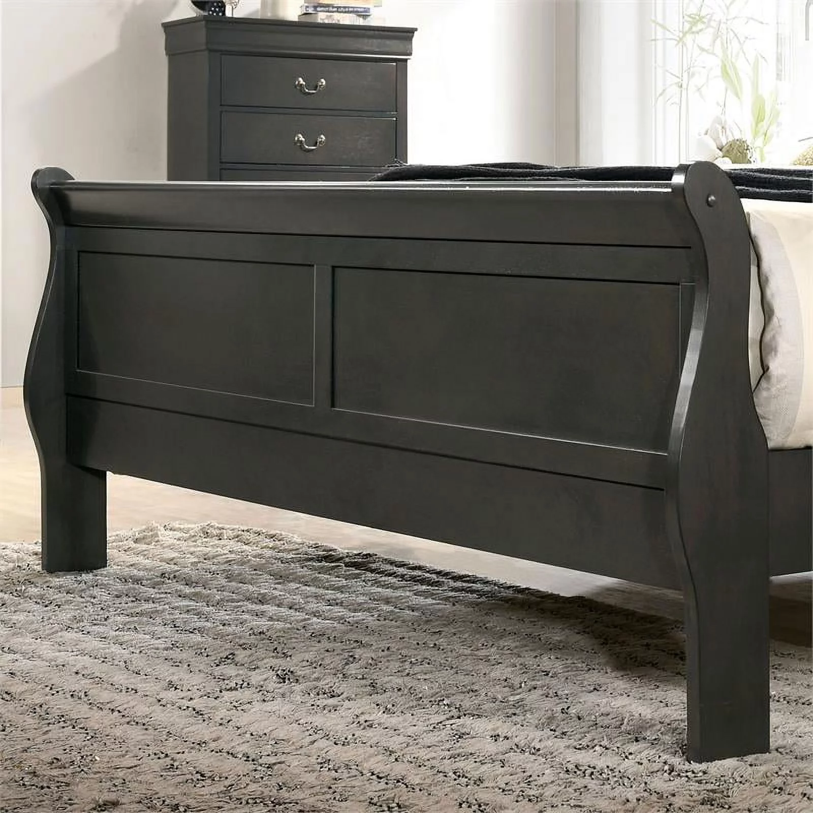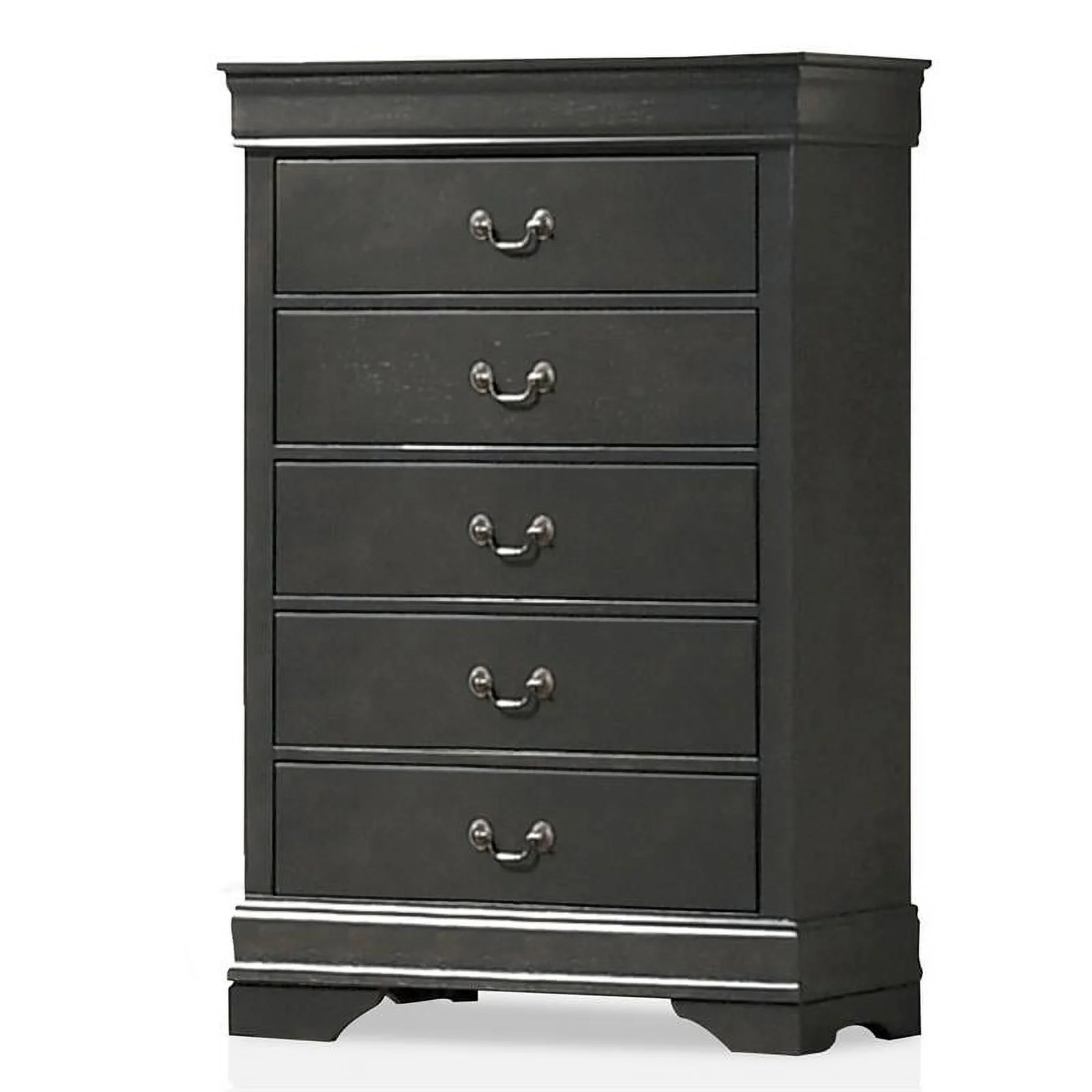 Dark Walnut Wood 5pc Bedroom Set with Bed+ Dresser+ Mirror+ Nightstand+ Chest