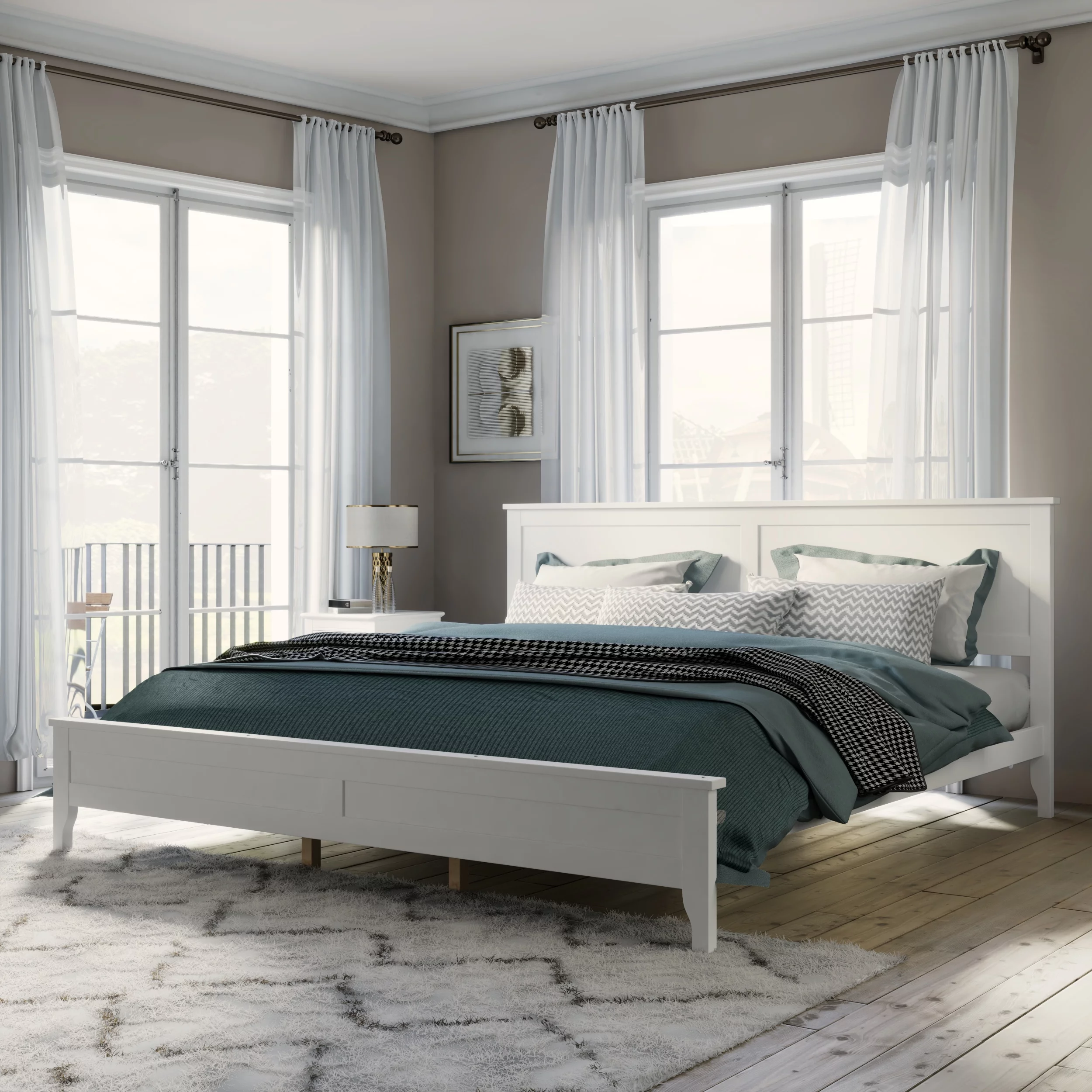 CoSoTower White Solid Wood 5 Pieces King Bedroom Sets(Bed+Nightstand*2+Chest+Dresser)