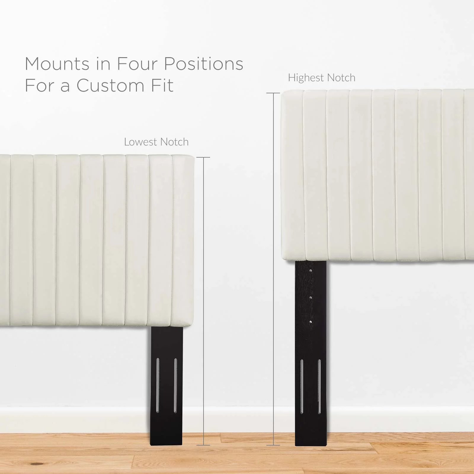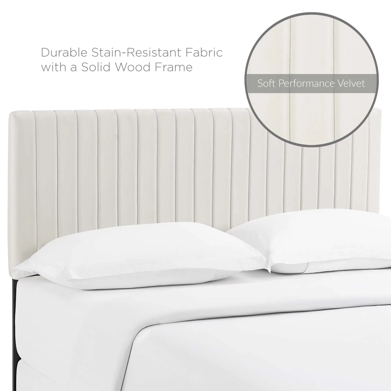 Contemporary Modern Urban Designer Bedroom Full and Queen Size Headbaord, Velvet Fabric, Ivory White