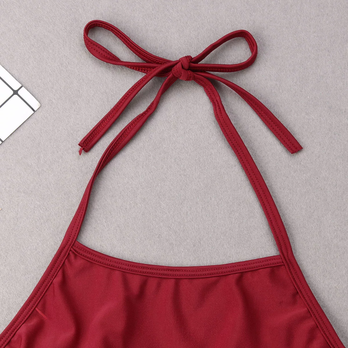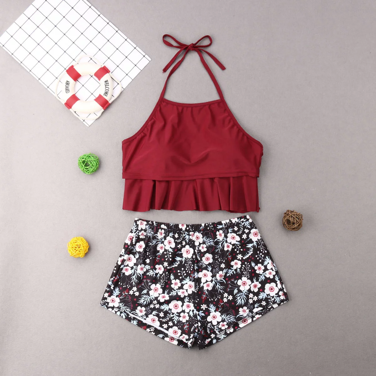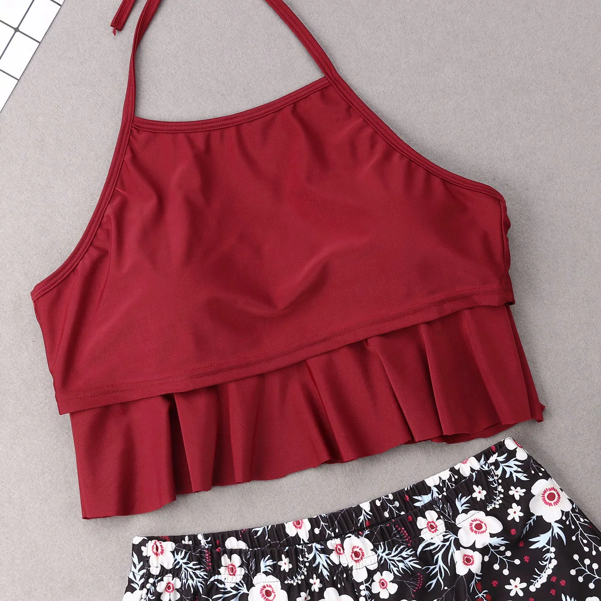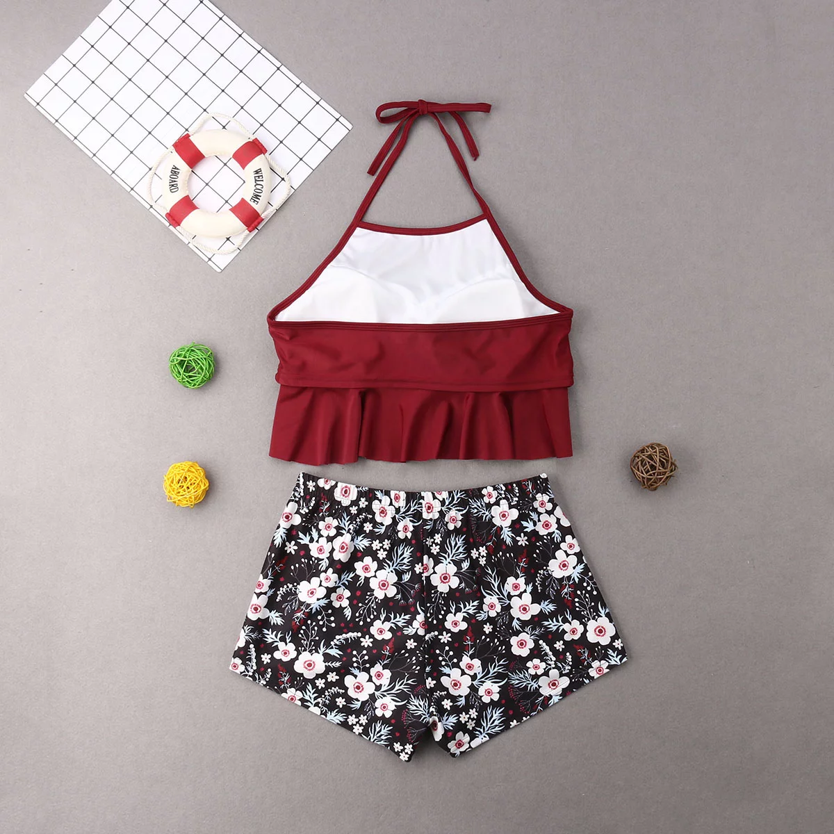 Family Matching Mother Girl Bikini Set Halter Floral Ruffle High Waisted Swimwear Bathing Suit