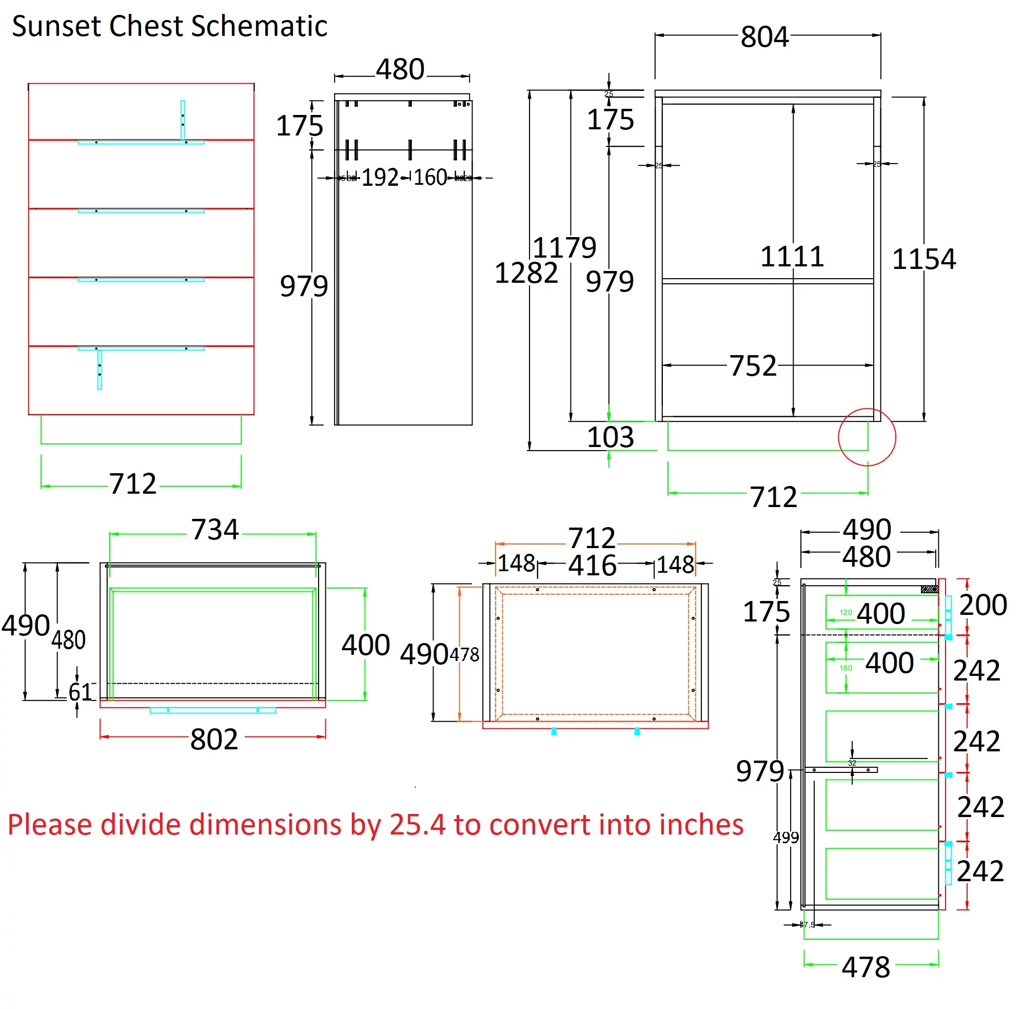 Ranshaw 6PC Cal King Storage Bed, 2 Nightstand, Dresser, Mirror & Chest Set in Mocha Brown Mahogany