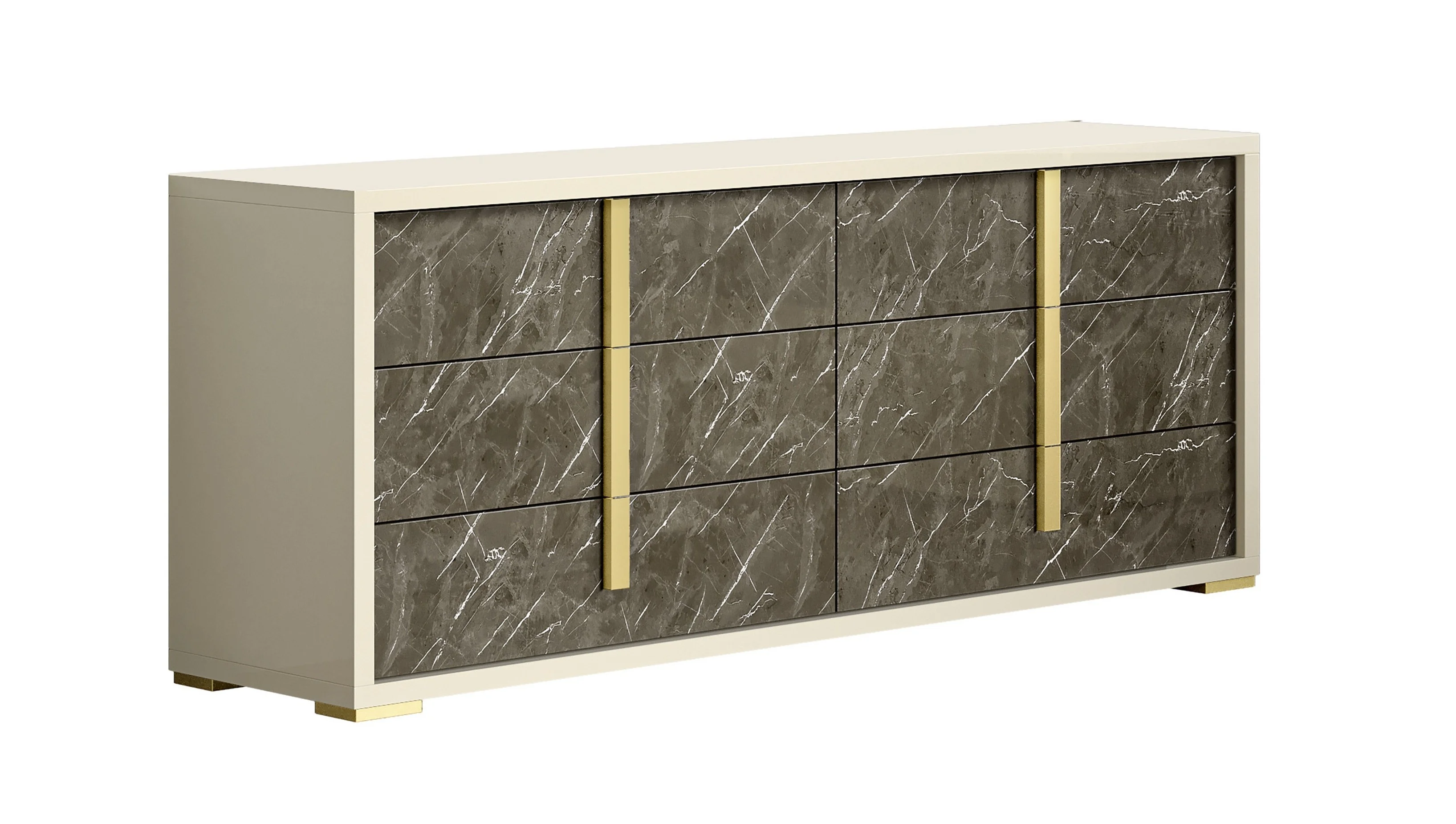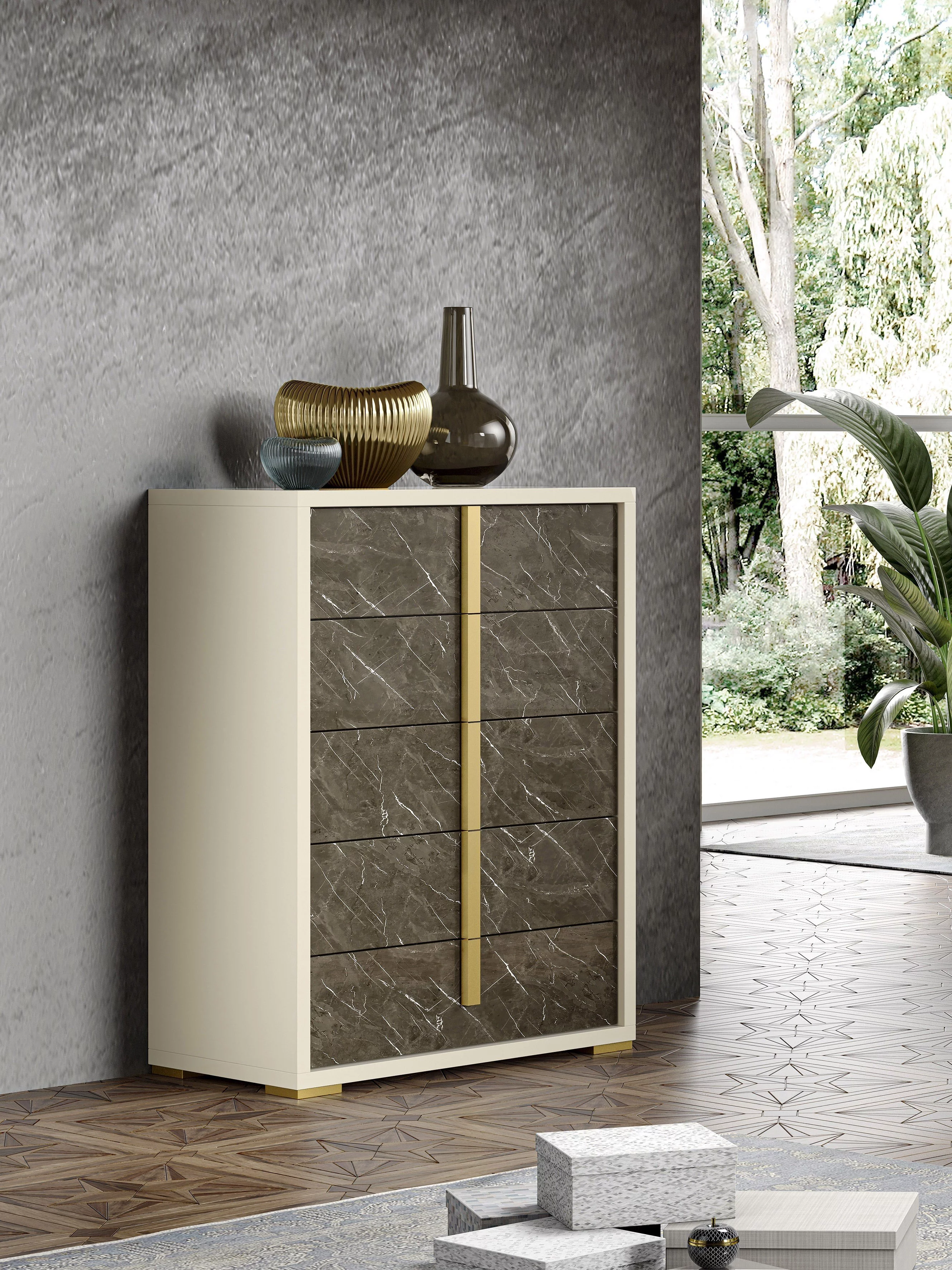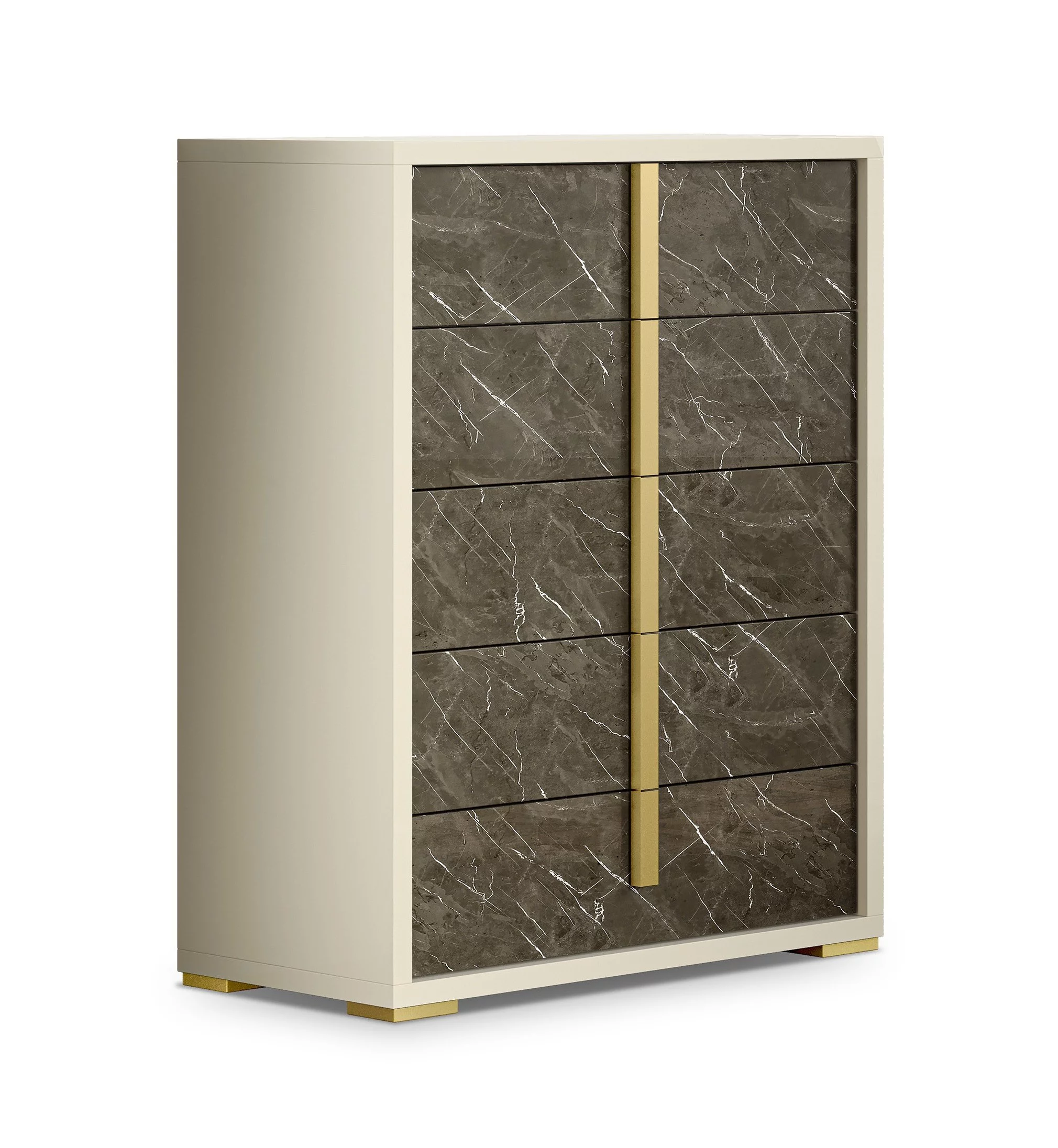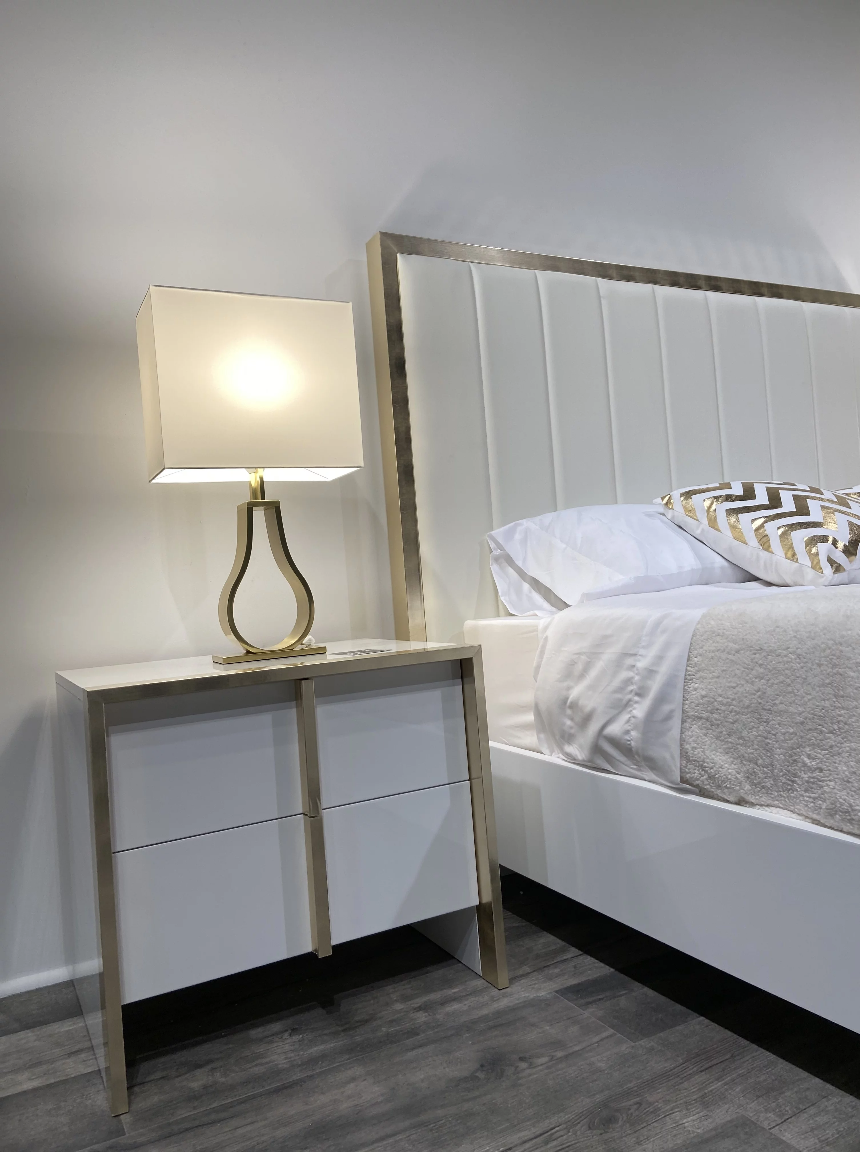J&M Furniture Fiocco Premium Bedroom with 6 piece king bed, chest, dresser, mirror and 2 nightstand, king bedroom set