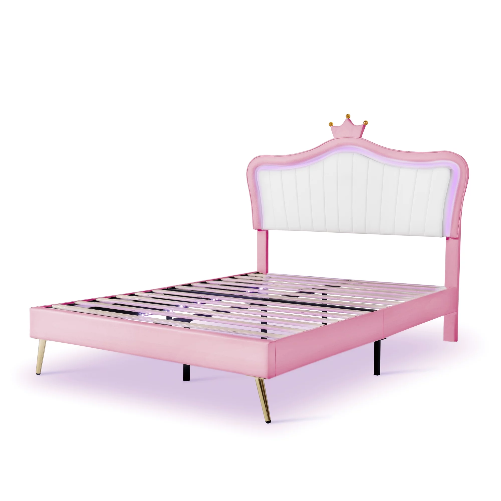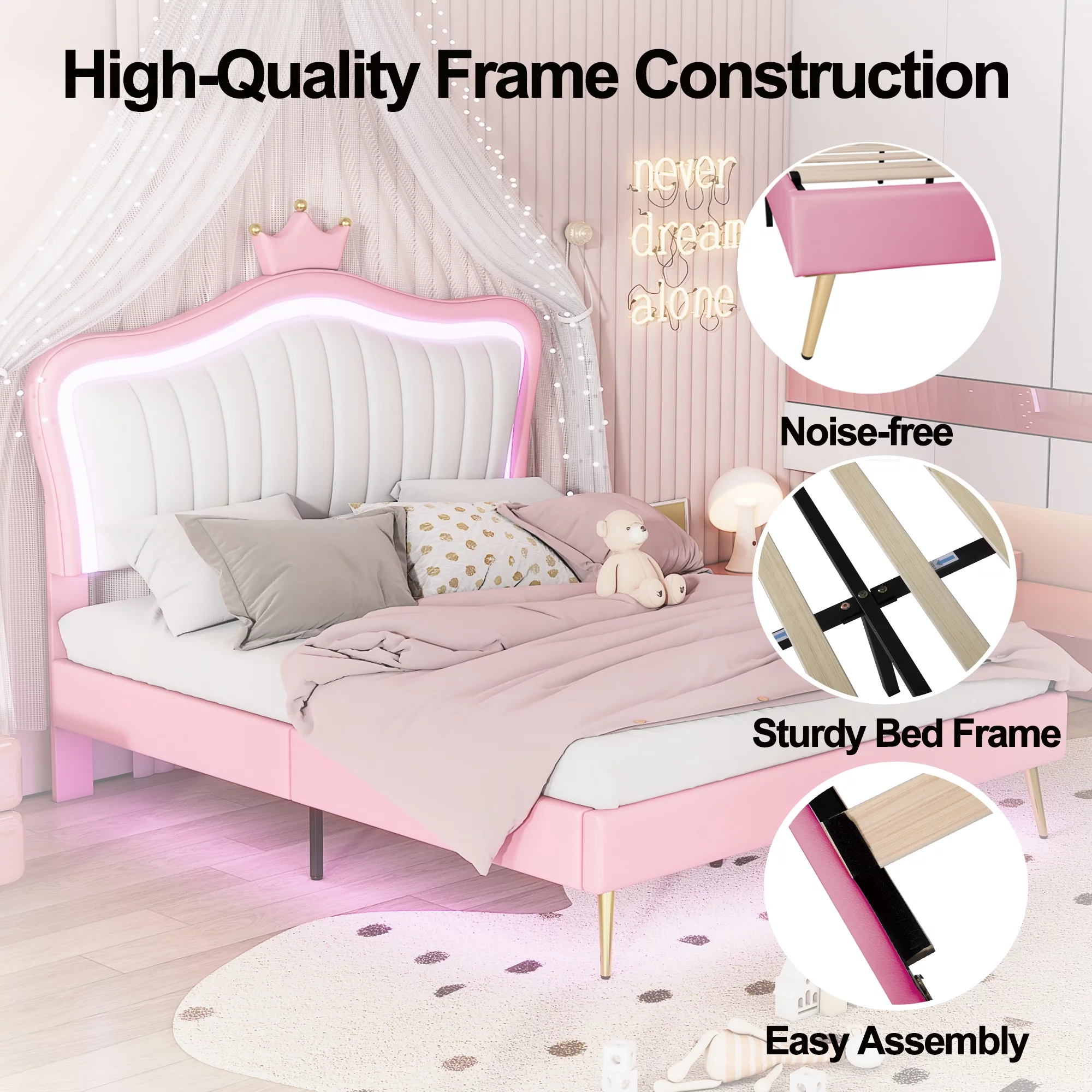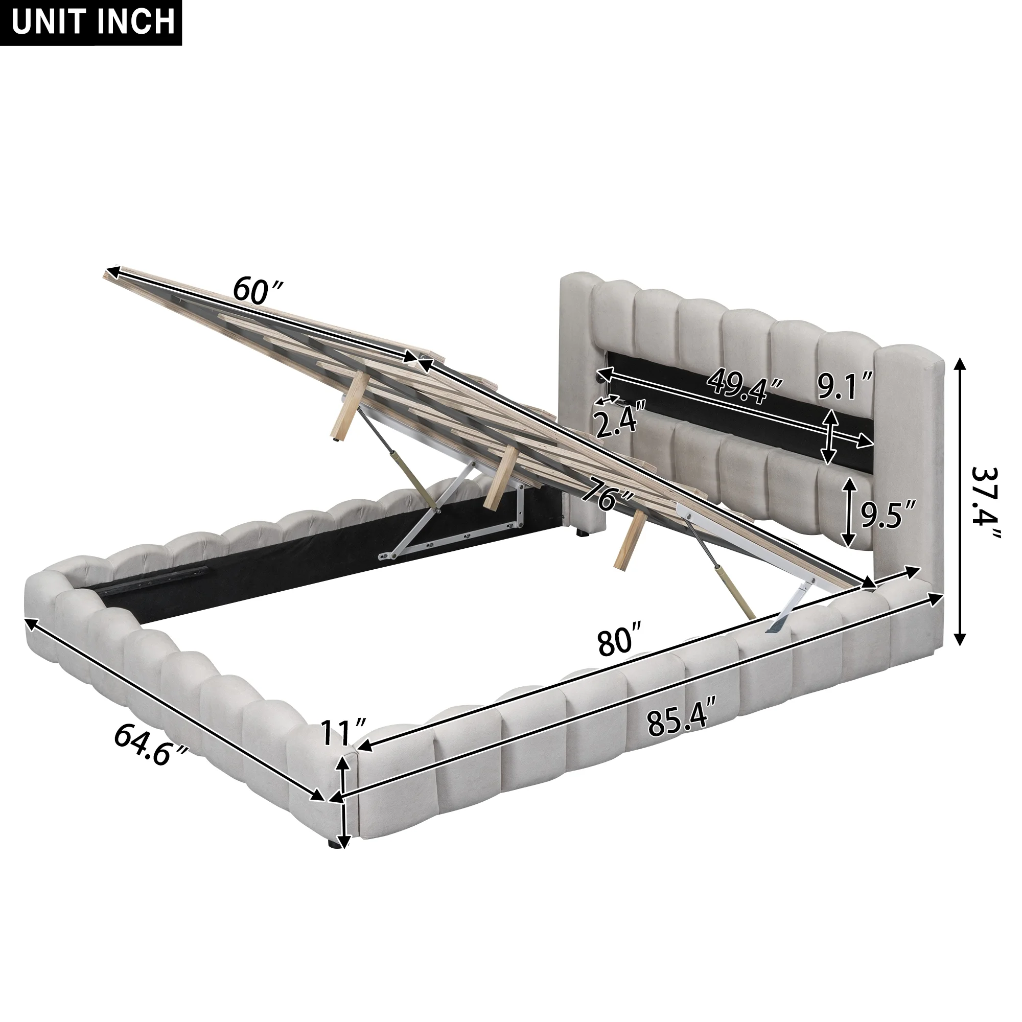 Nestfair Beige Queen Size Upholstered Platform Bed with LED Headboard and USB