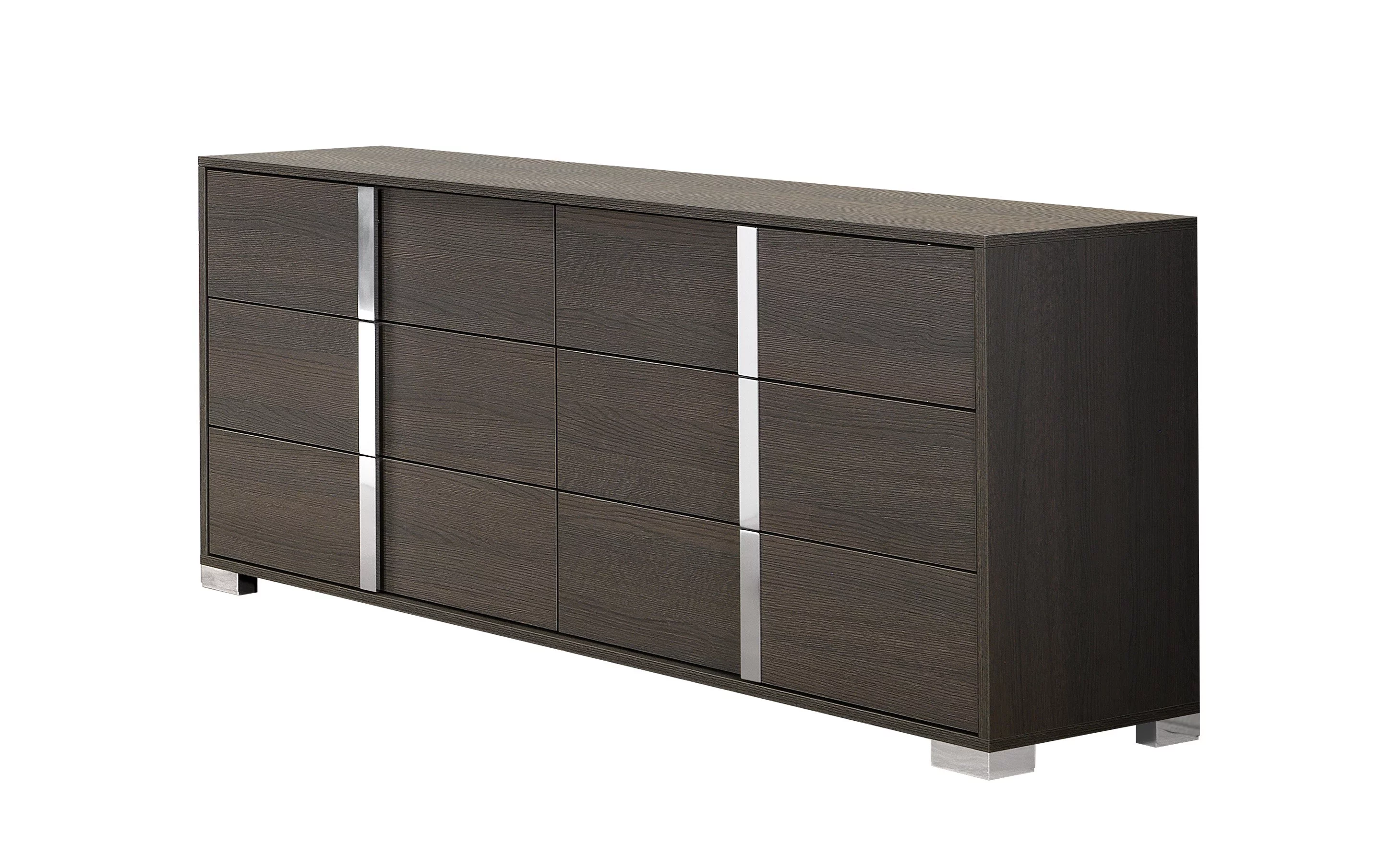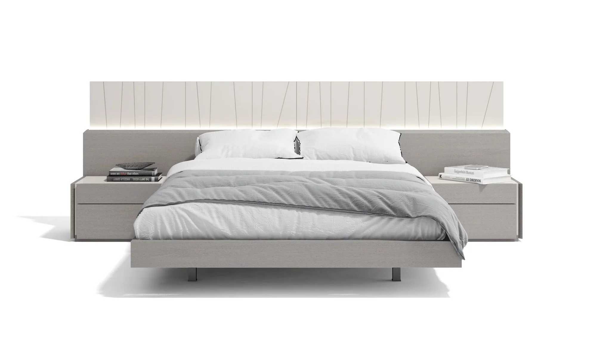 J&M Furniture Porto Premium Bedroom Set in Grey with 6 piece queen bed, chest, dresser, mirror and 2 nightstand, queen bedroom set