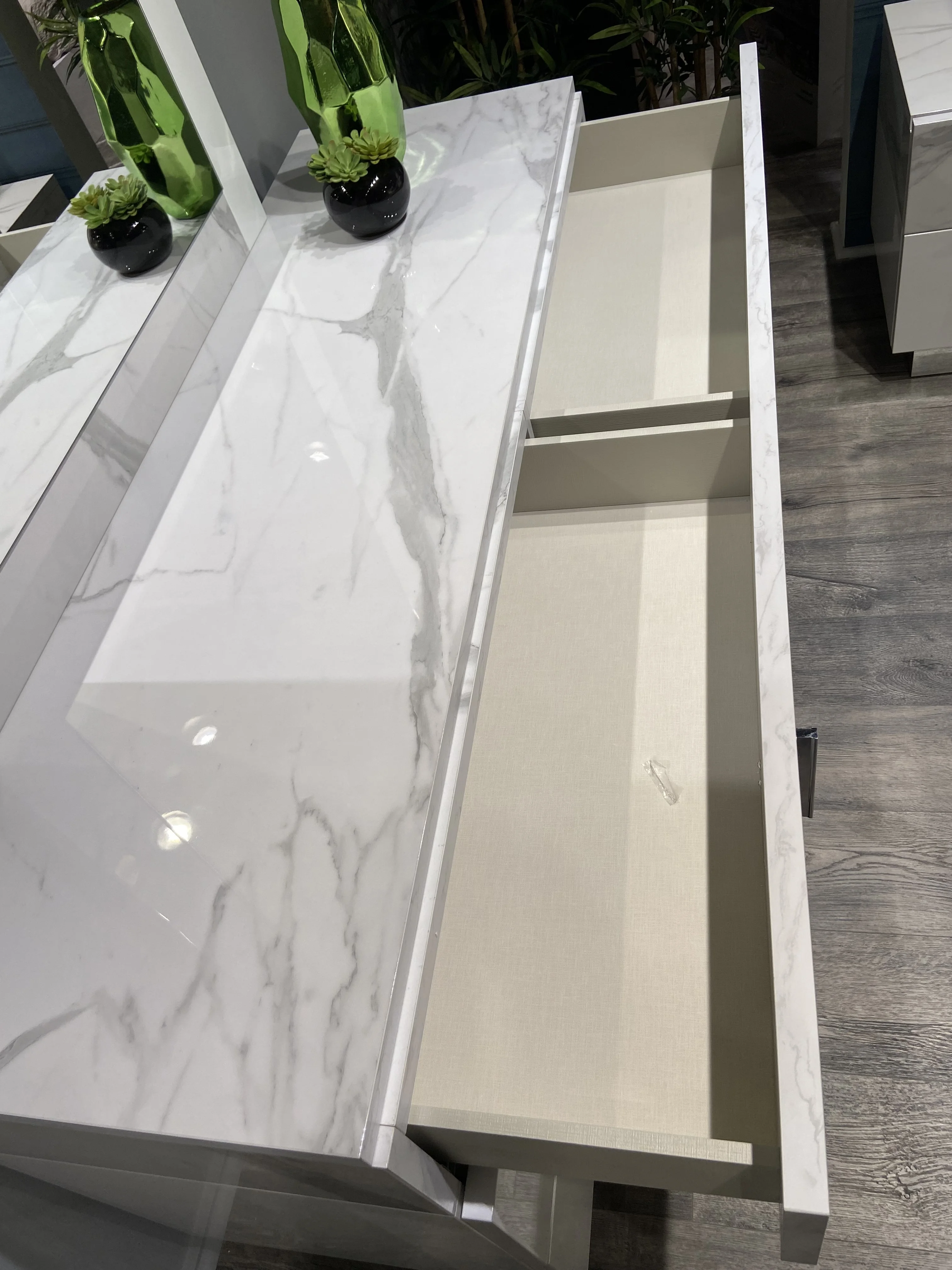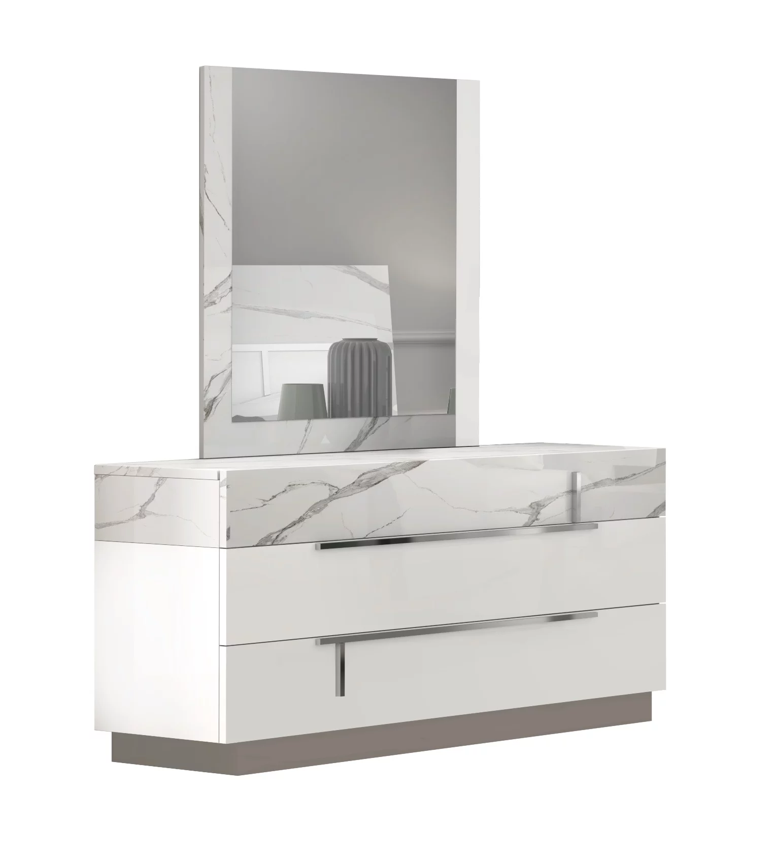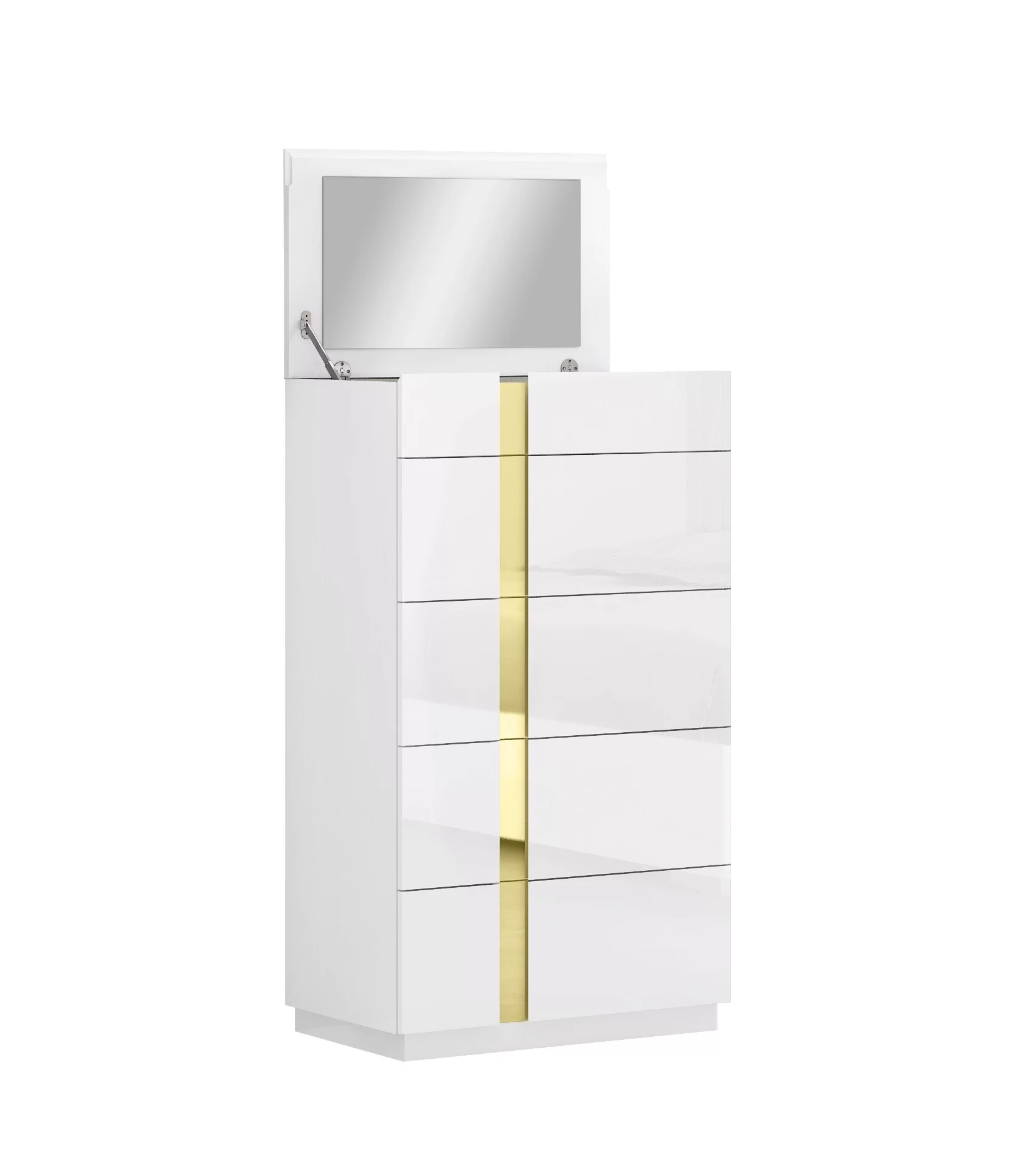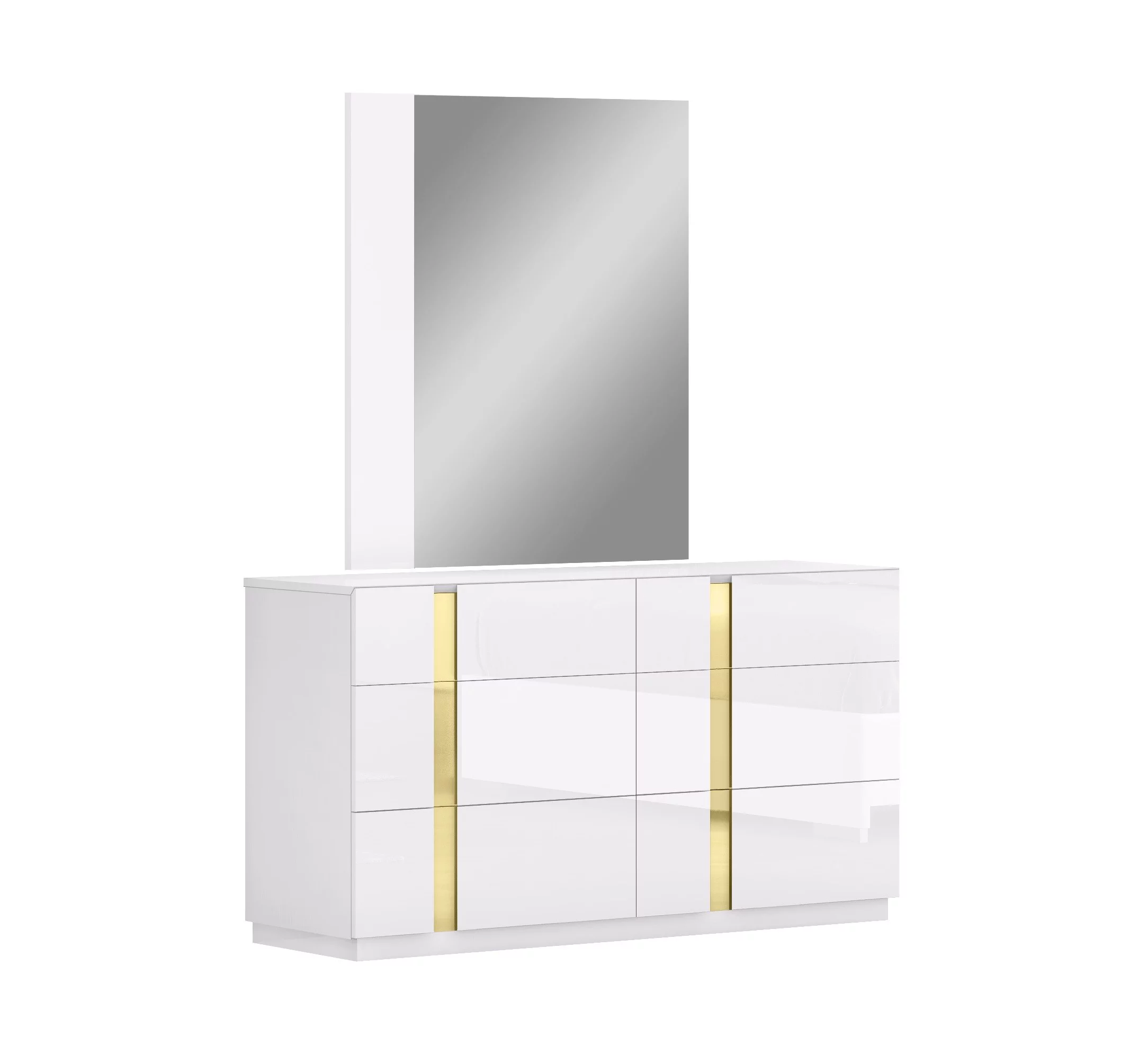 J&M Furniture Fiocco Premium Bedroom with 6 piece queen bed, cest , dresser, mirror and 2 nightstand, queen bedroom set