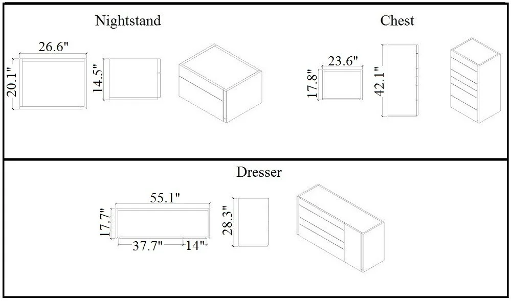 J&M Furniture Kyoto Premium Bedroom with 6 piece king bed, chest ,dresser, mirror and 2 nightstand, king bedroom set