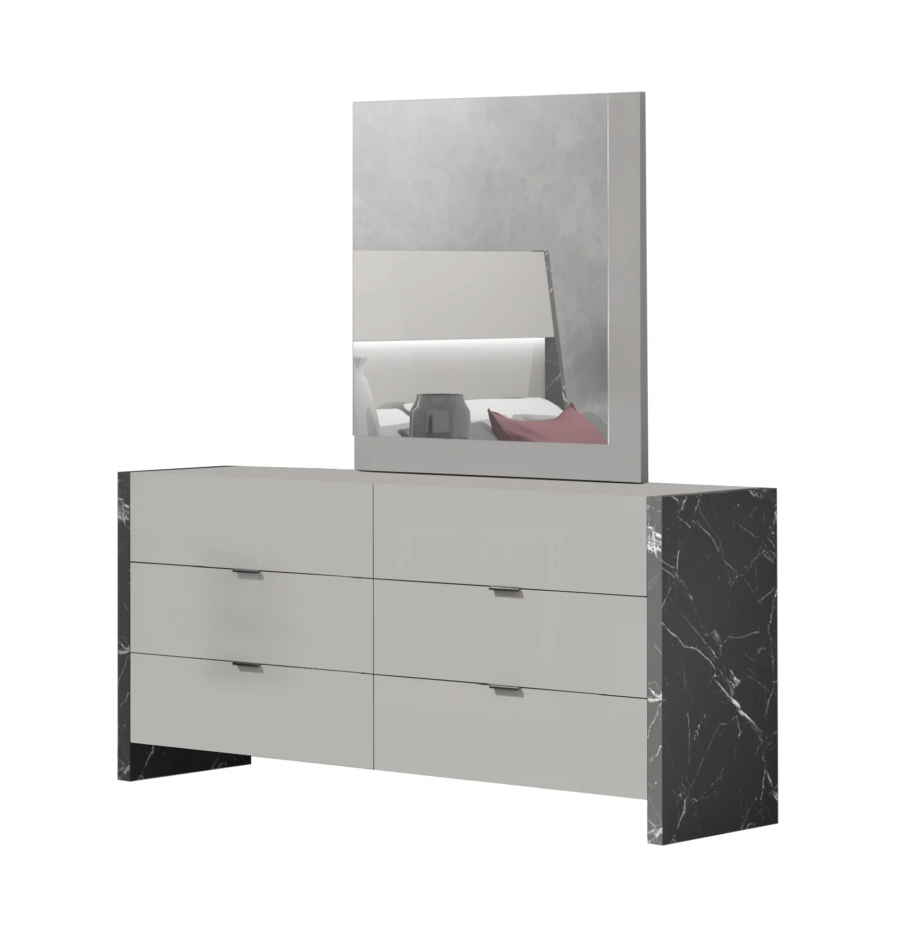 J&M Furniture Faro Premium Bedroom in Grey with 6 piece king bed, chest, dresser, mirror and 2 nightstand, king bedroom set