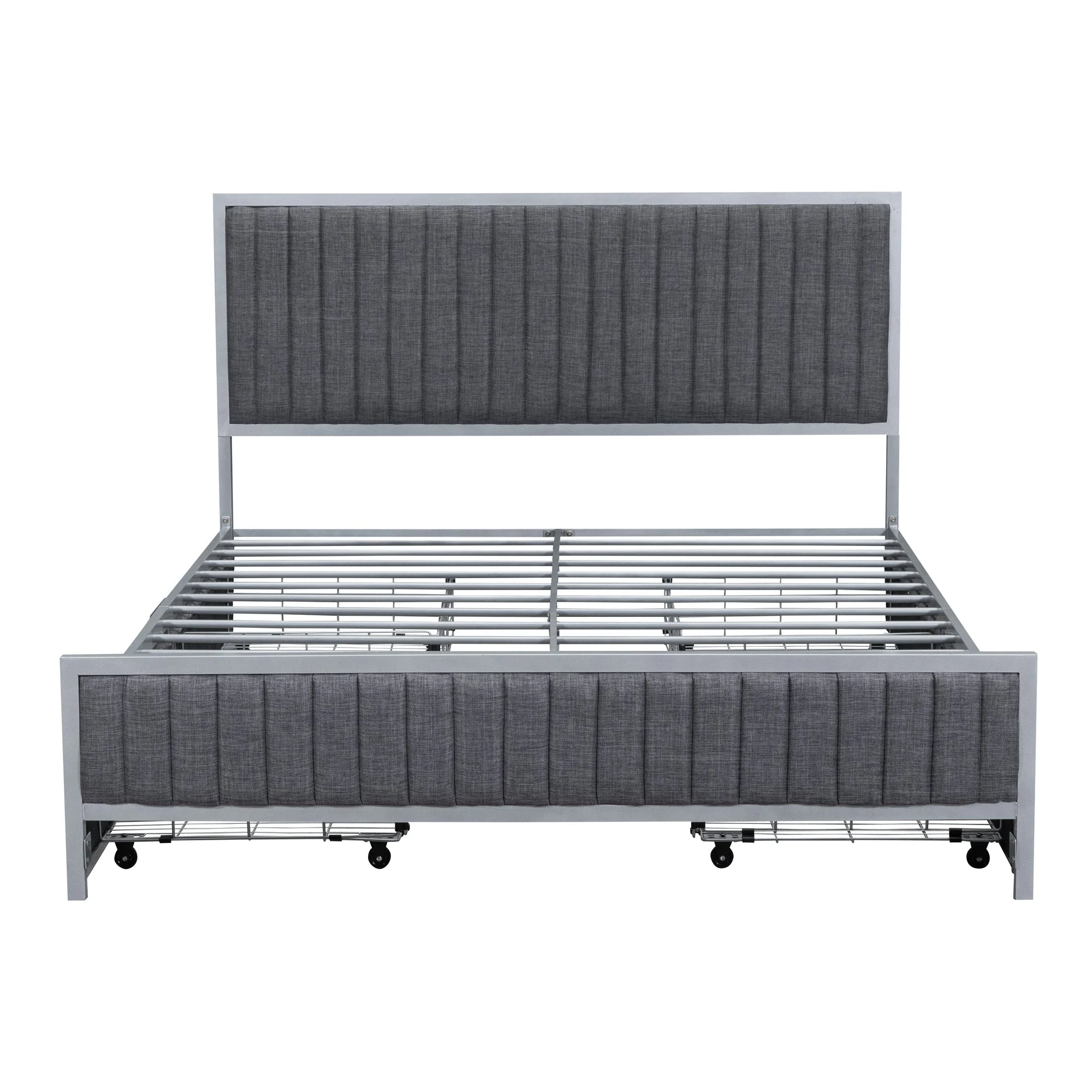 Twin Size Upholstered Platform Bed with Cartoon Ears Shaped Headboard and Trundle, White
