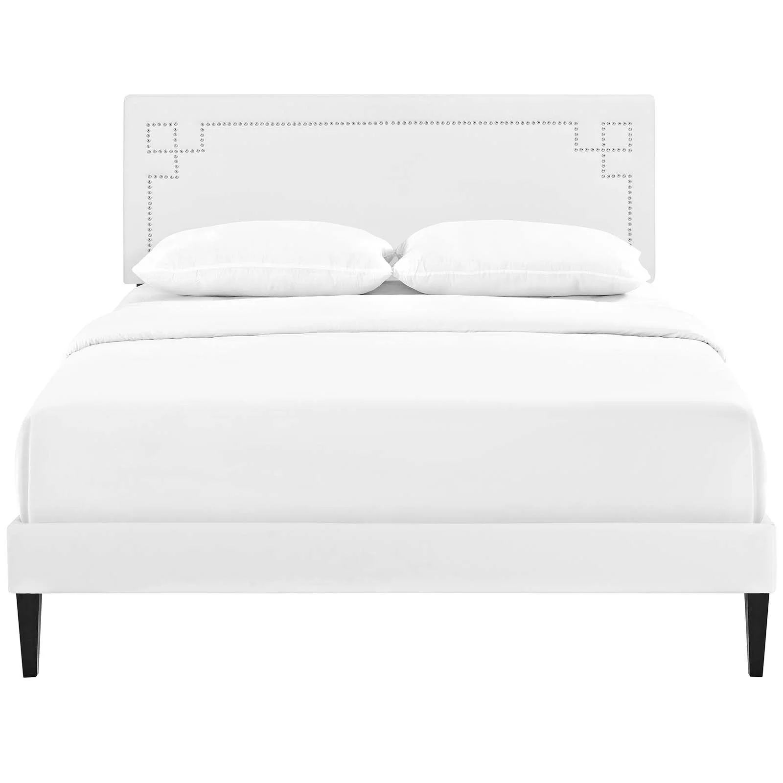 Modway Ruthie Queen Vinyl Platform Bed with Squared Tapered Legs in White