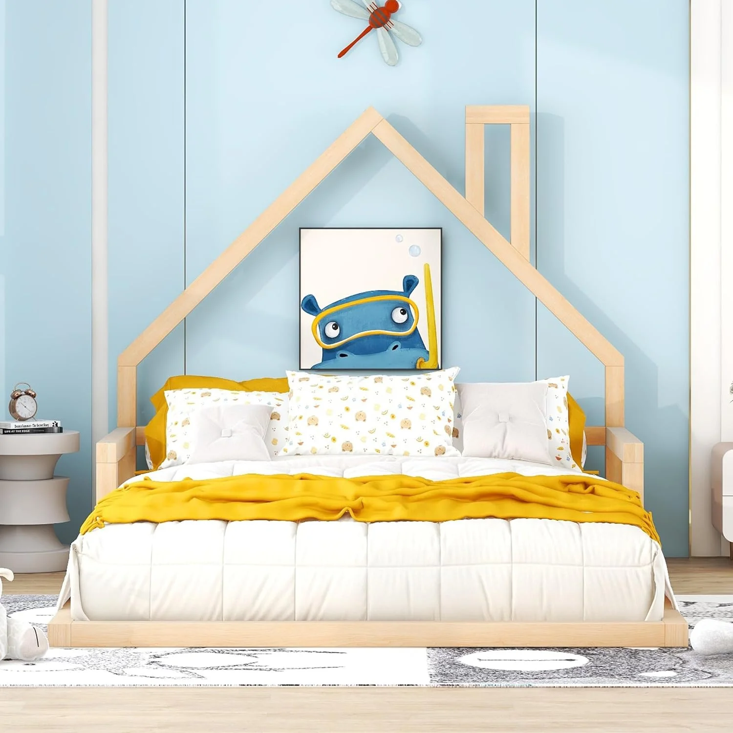 Kuurfuurdo Full Size Platform Bed with Trundle and Multi-Functional Headboard, Bed Frame for Kids Teens and Adults (White)