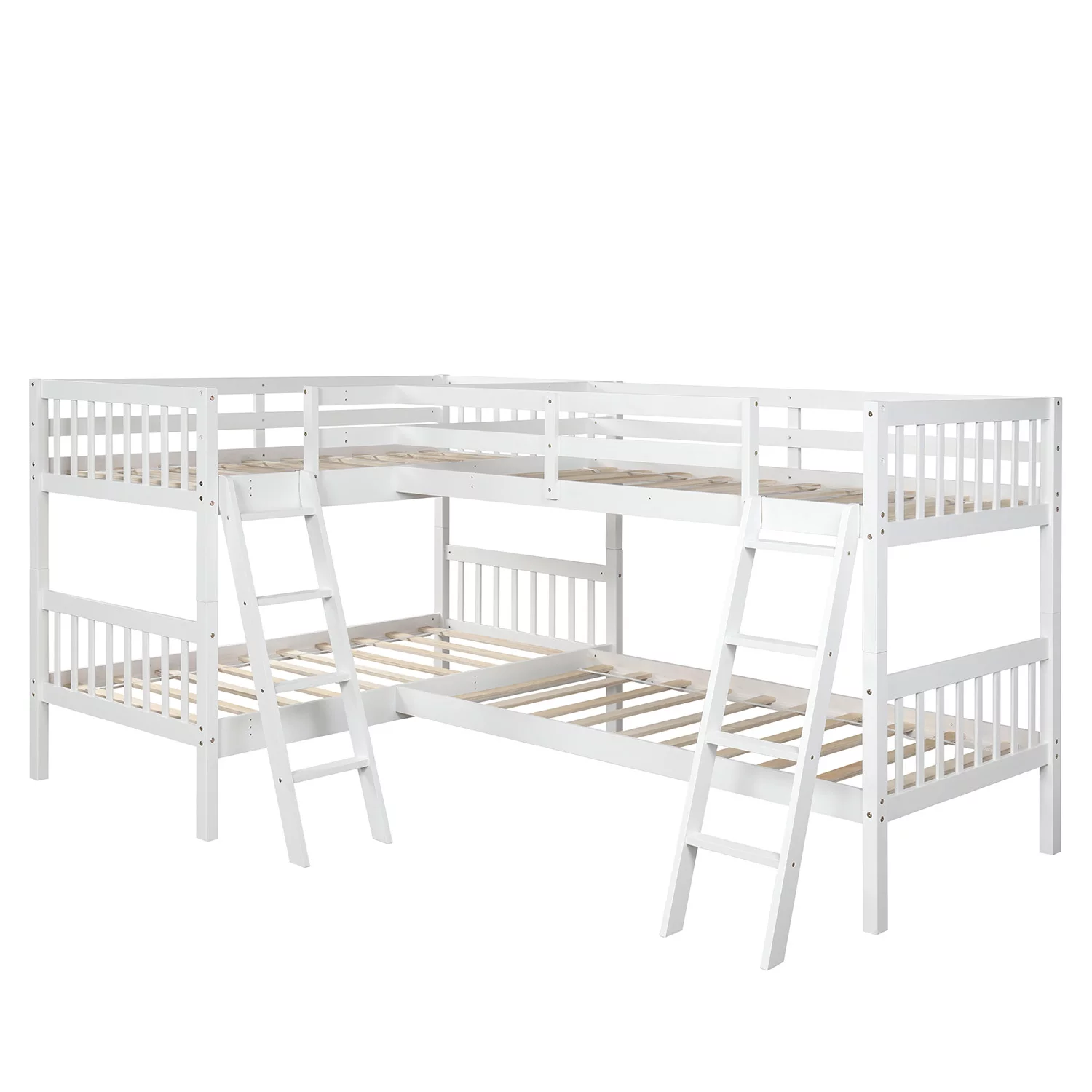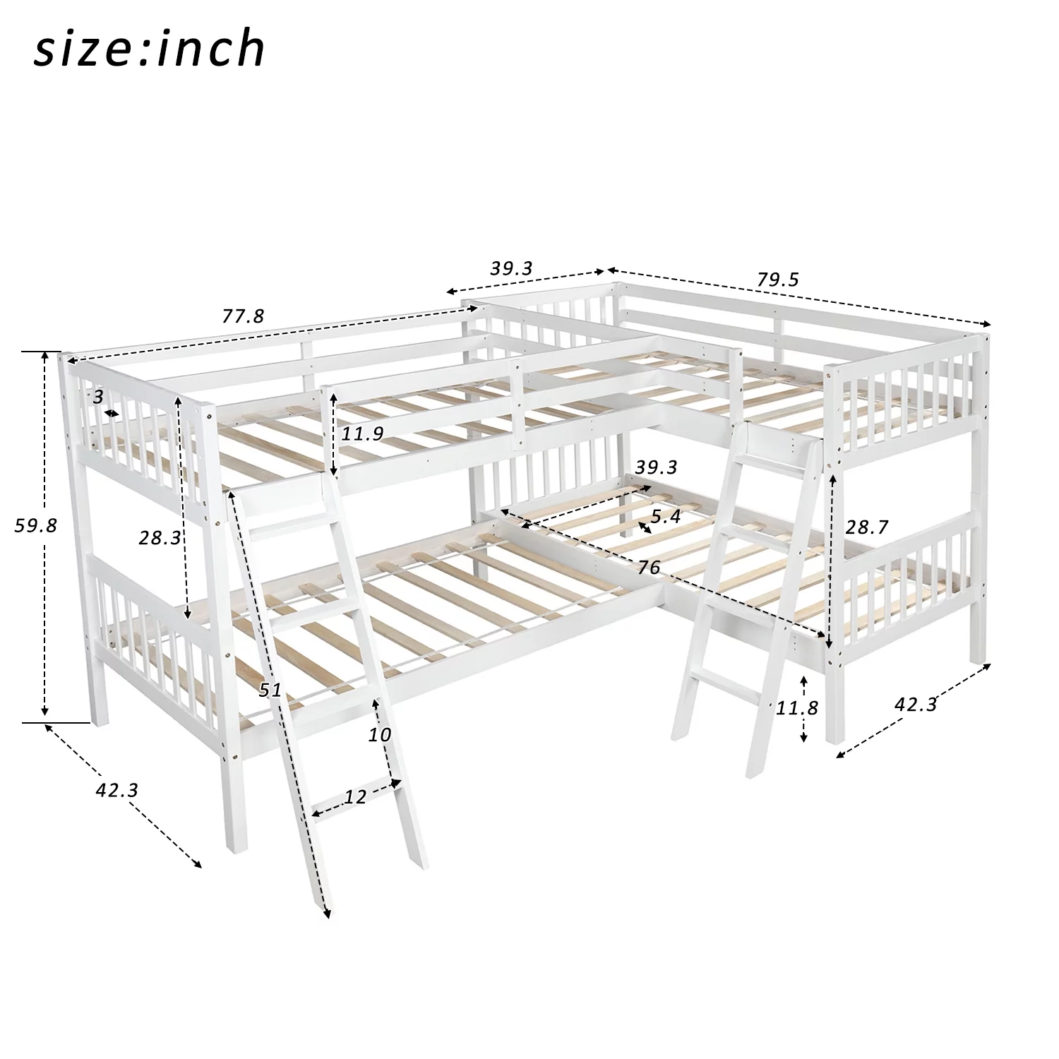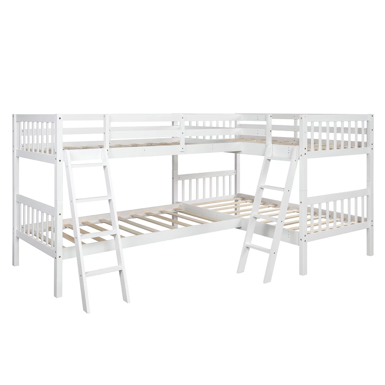 L-Shaped Twin Bunk Bed Twin Over Twin Bunk Bed with Ladder No Box Spring Needed