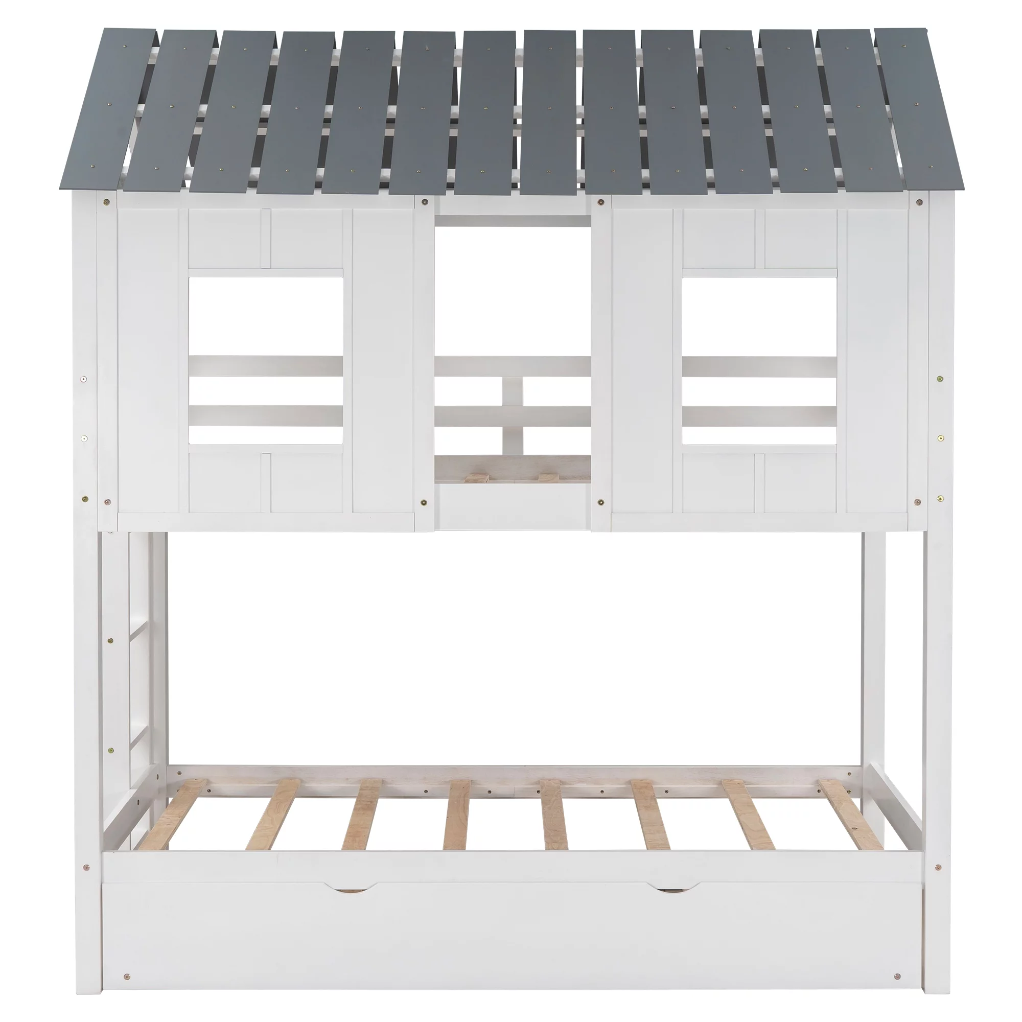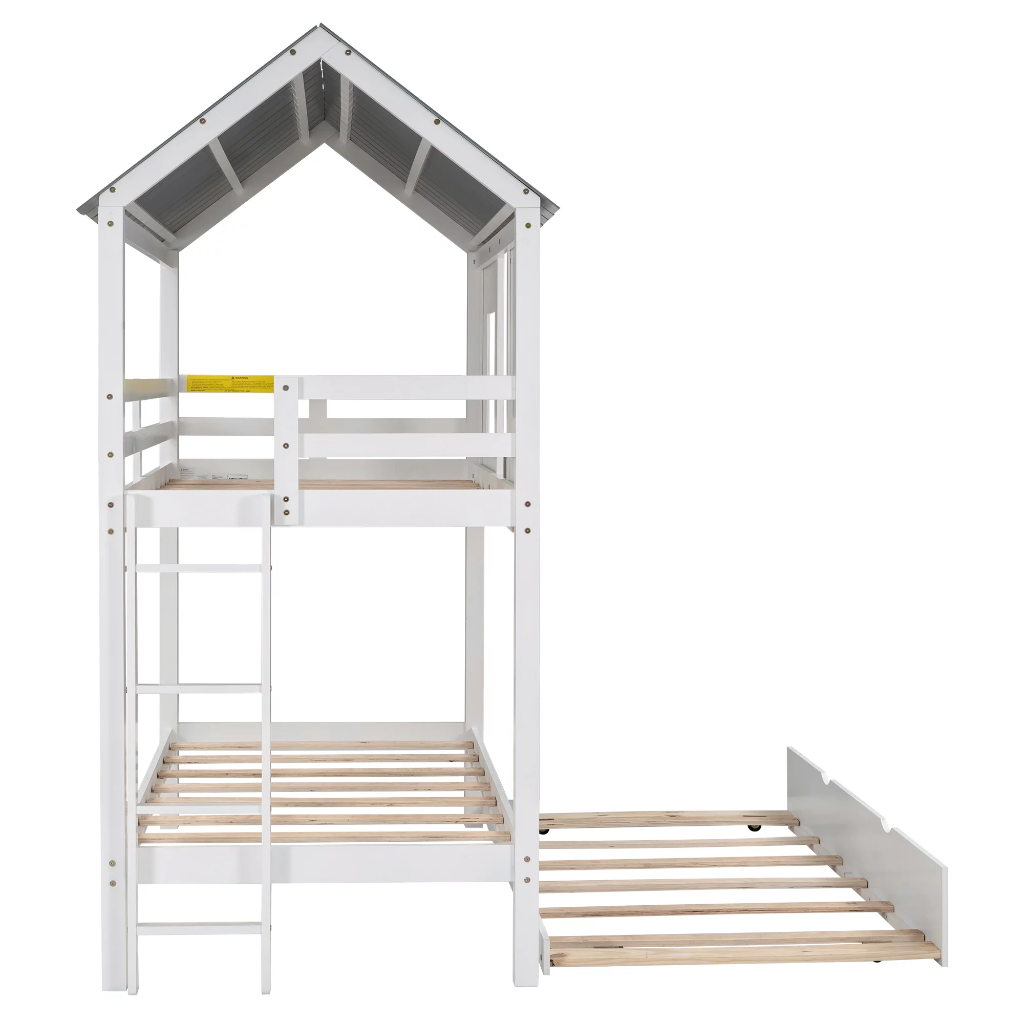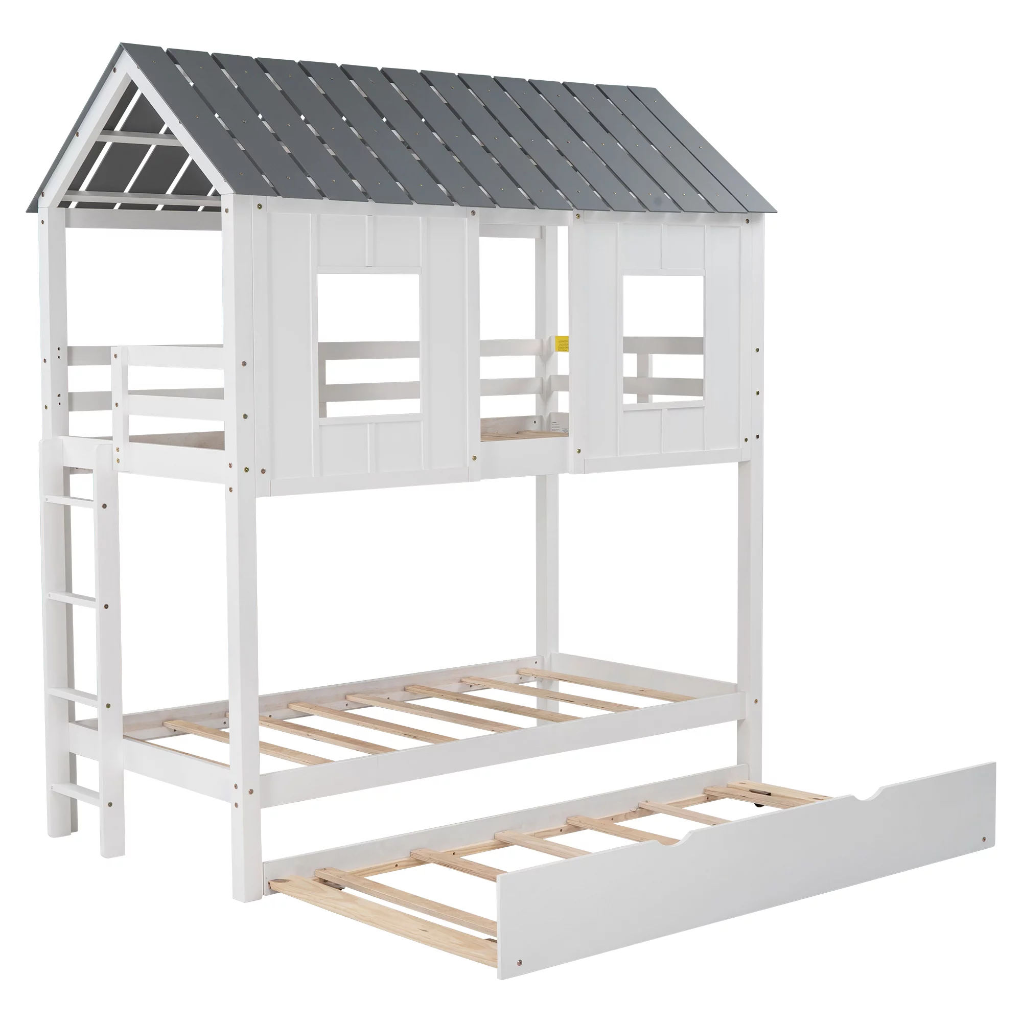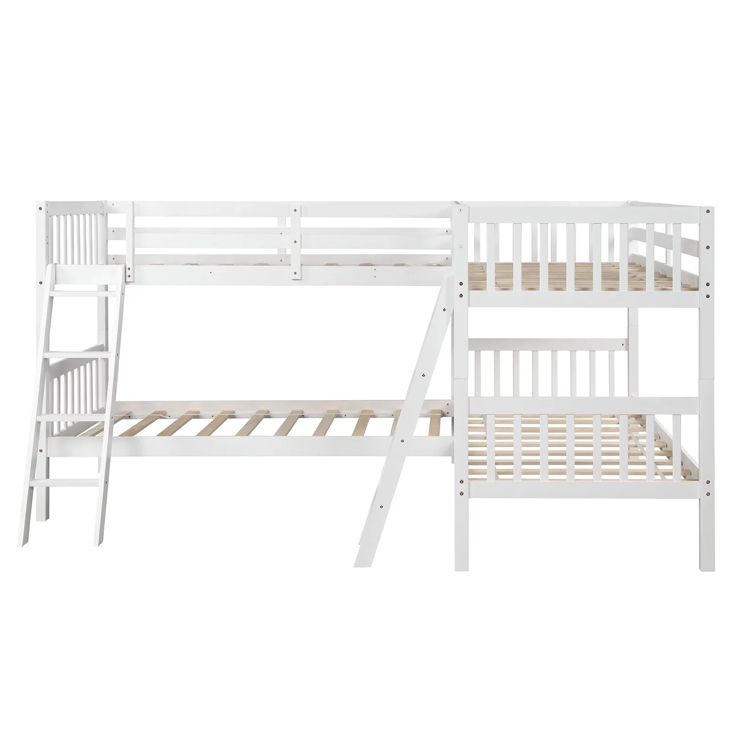 L-Shaped Twin Bunk Bed Twin Over Twin Bunk Bed with Ladder No Box Spring Needed