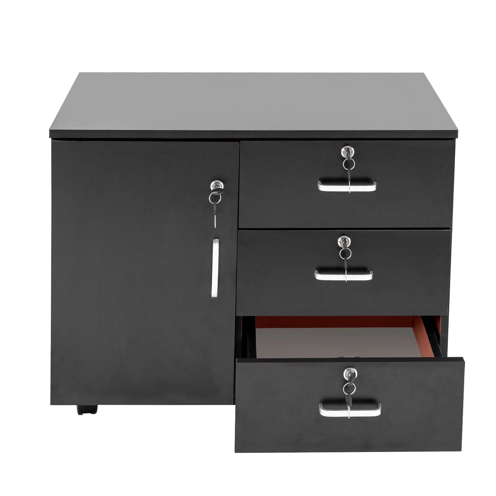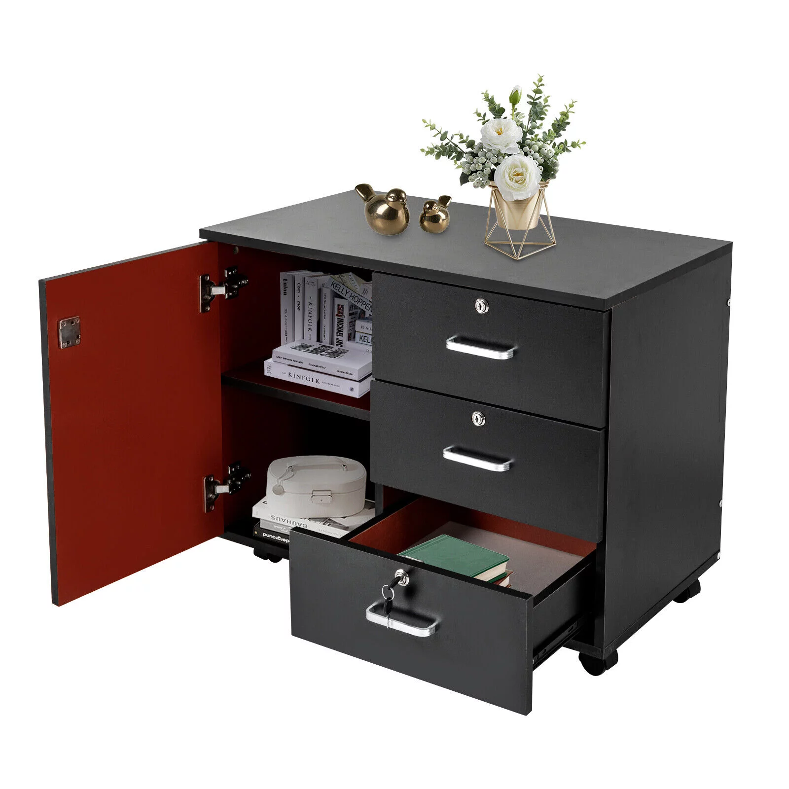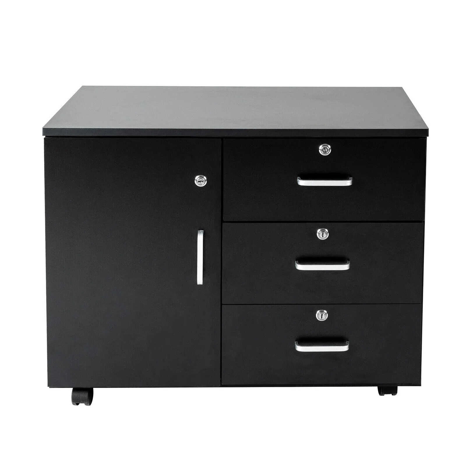 3-Drawer MDF Dresser Chest with Door Mobile File Storage Cabinet Printer Stand