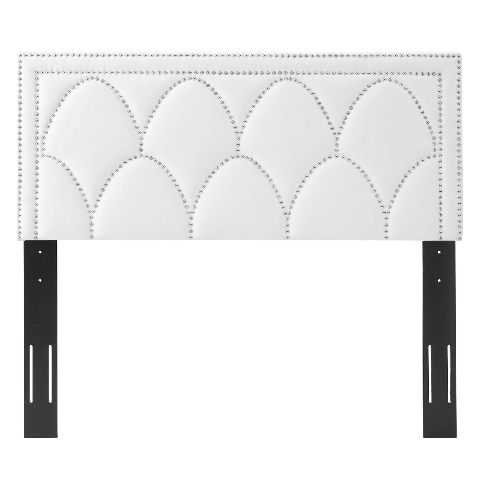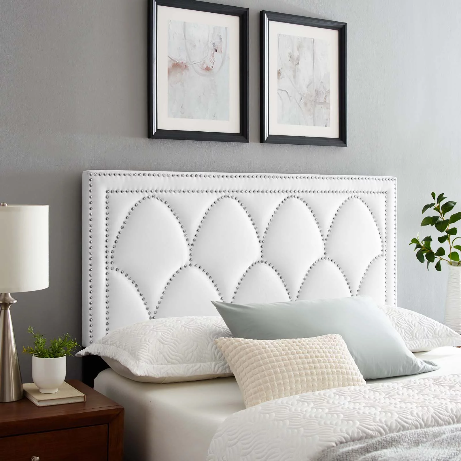 Headboard, Nailhead, King California Size, White, Velvet, Modern Contemporary, Bedroom Master Guest Suite Room