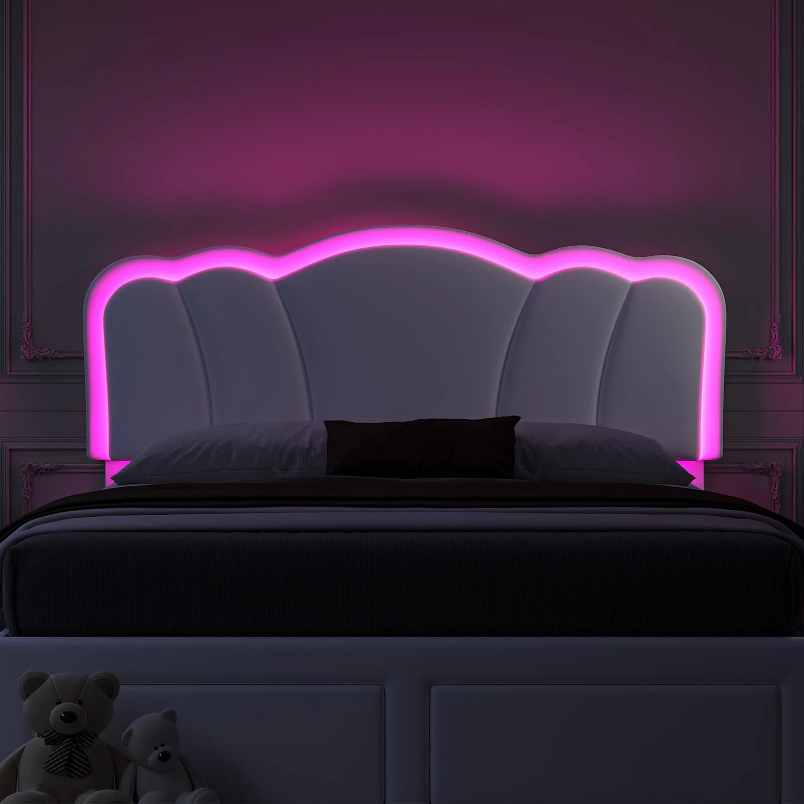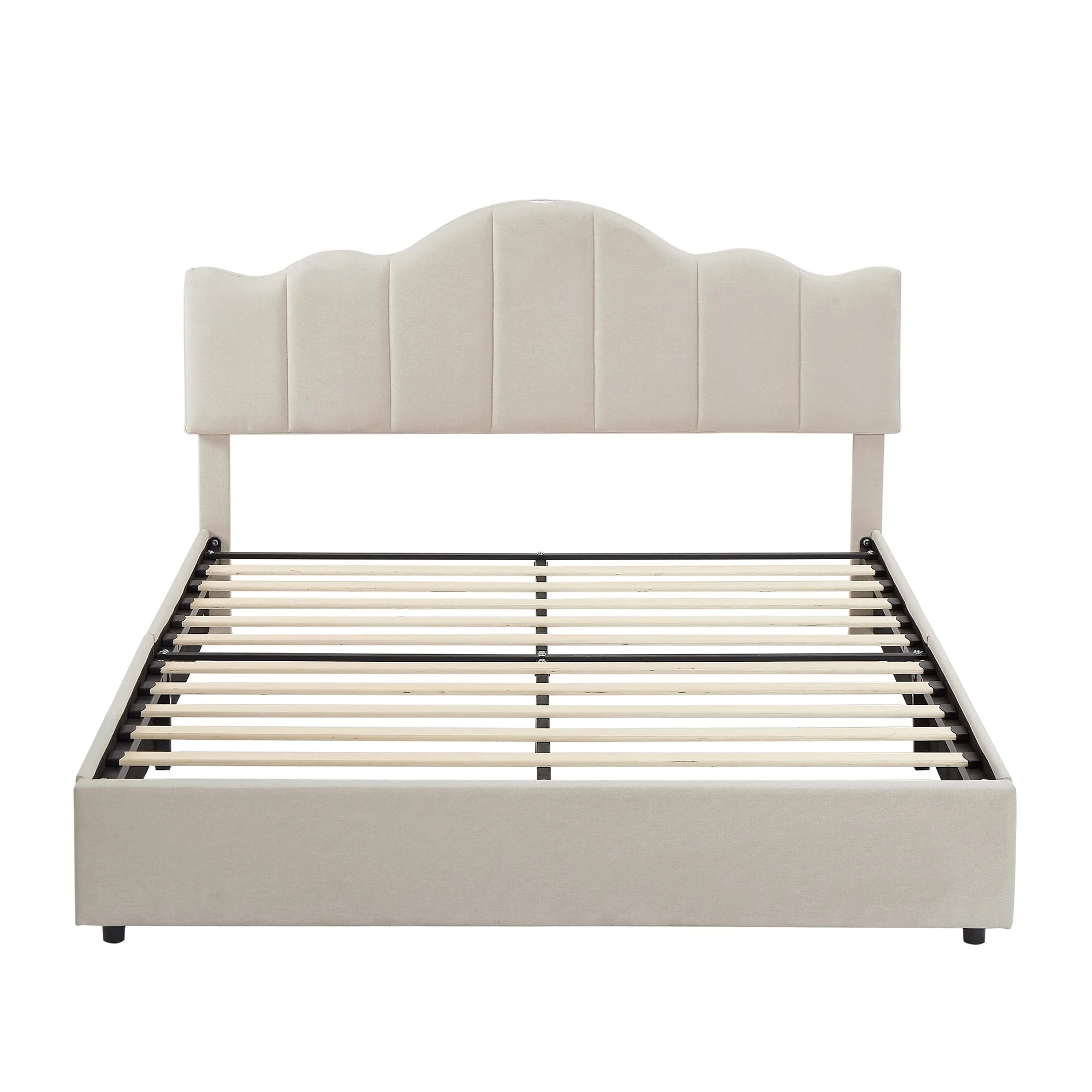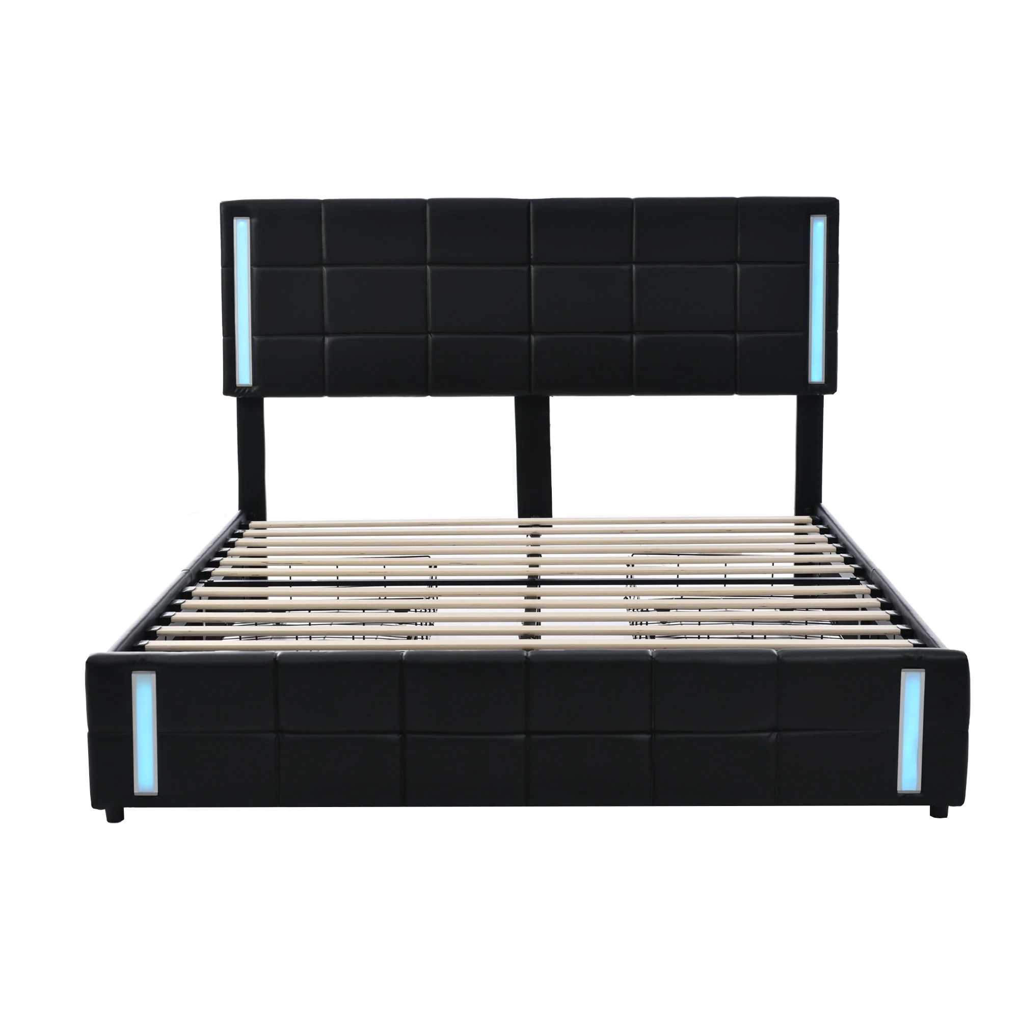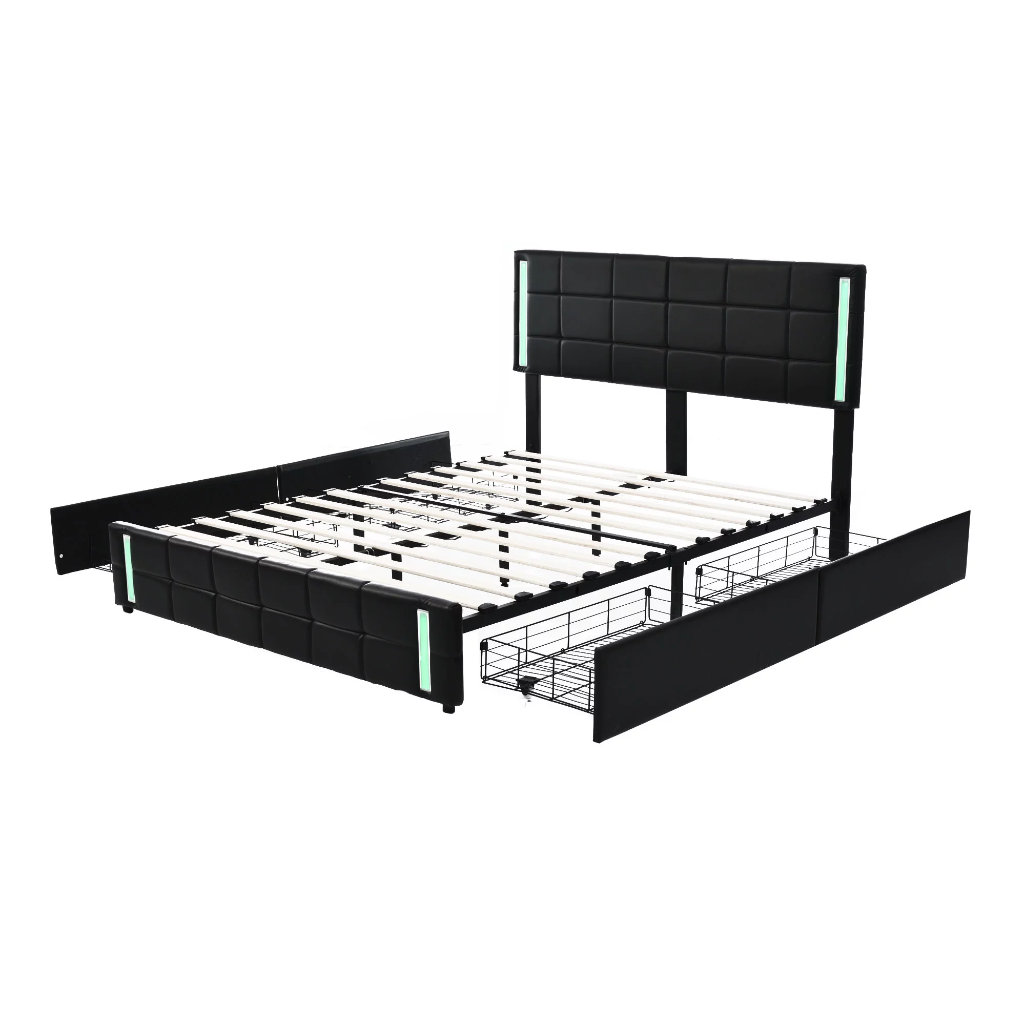 Queen Size Led Bed Frame with 2 Storage Drawers,Upholstered Platform Storage Bed with Drawers and Flower Headboard,White