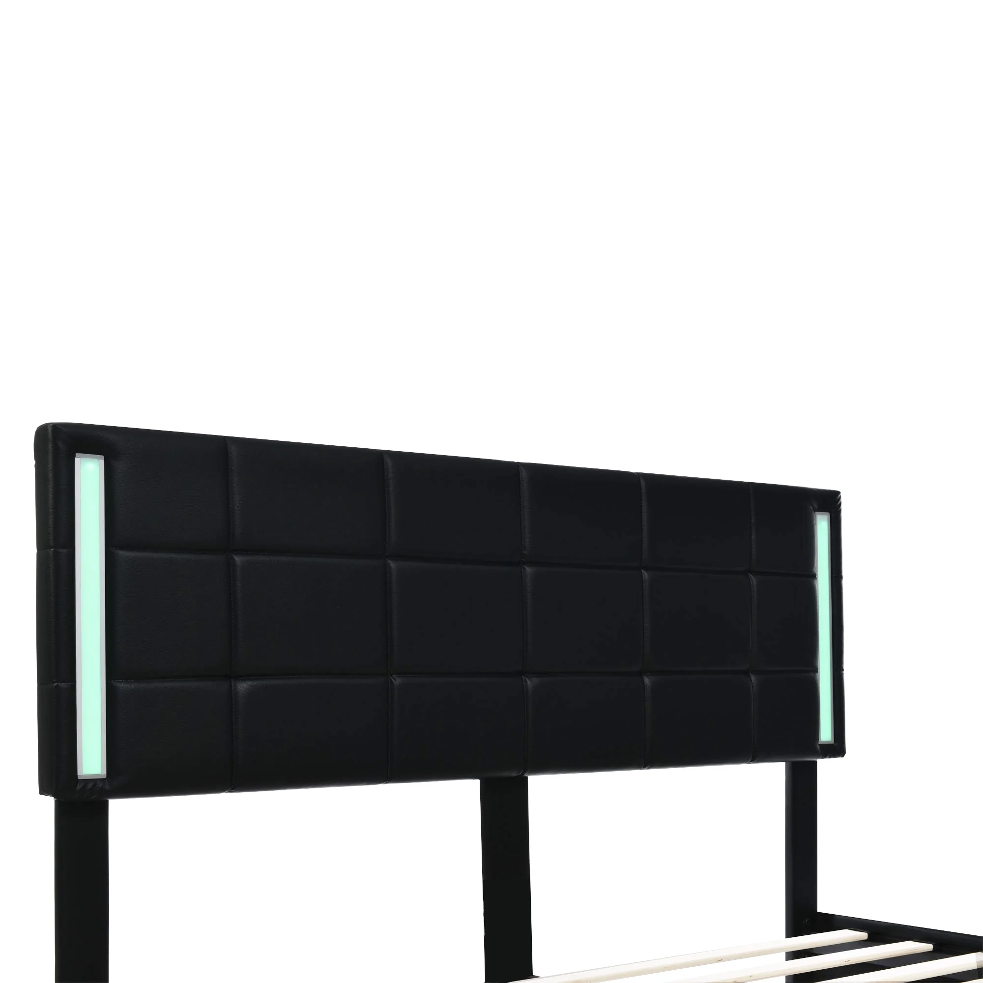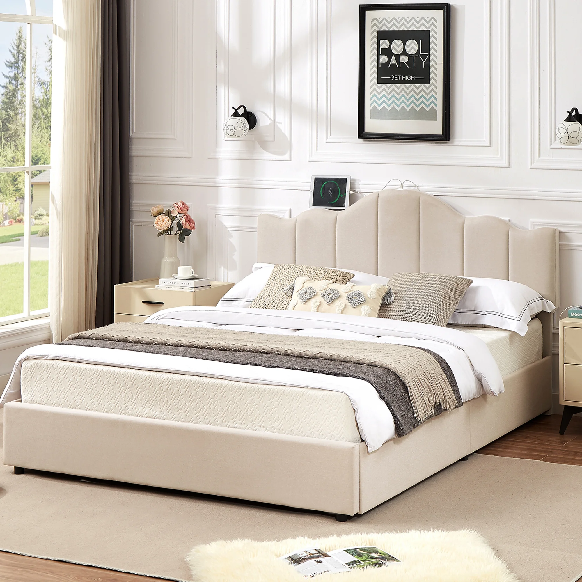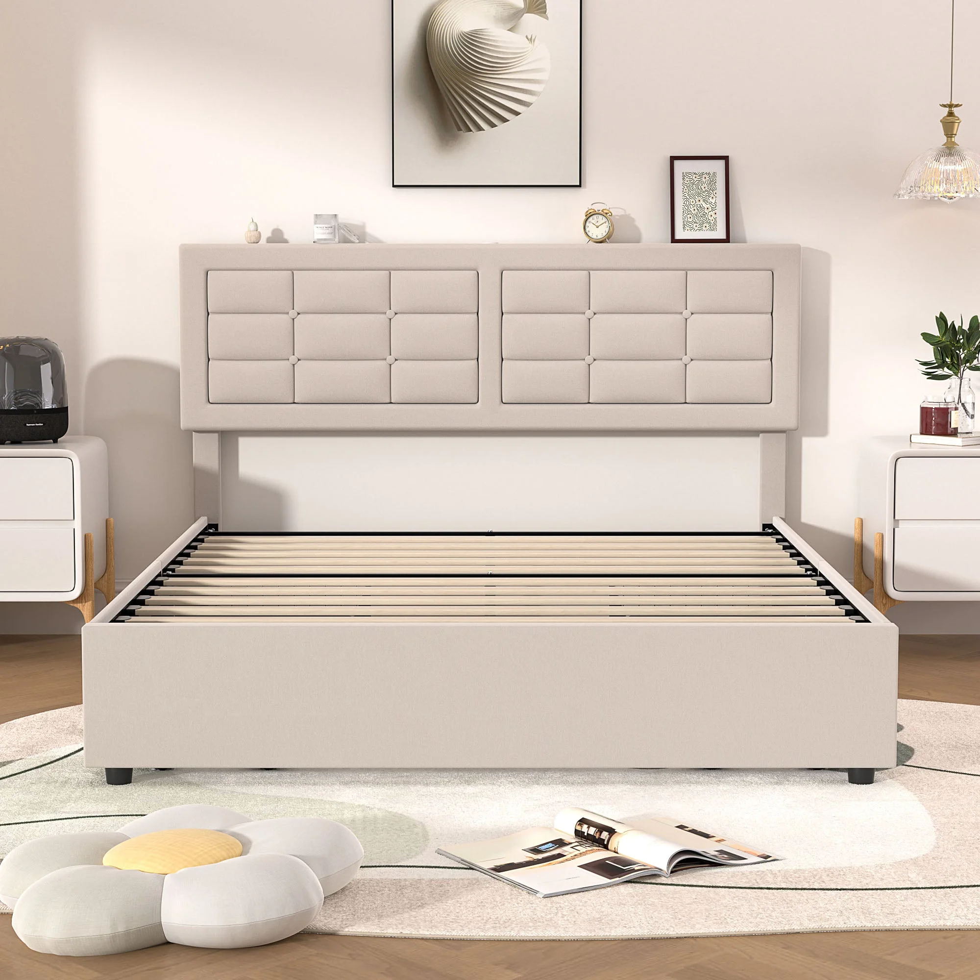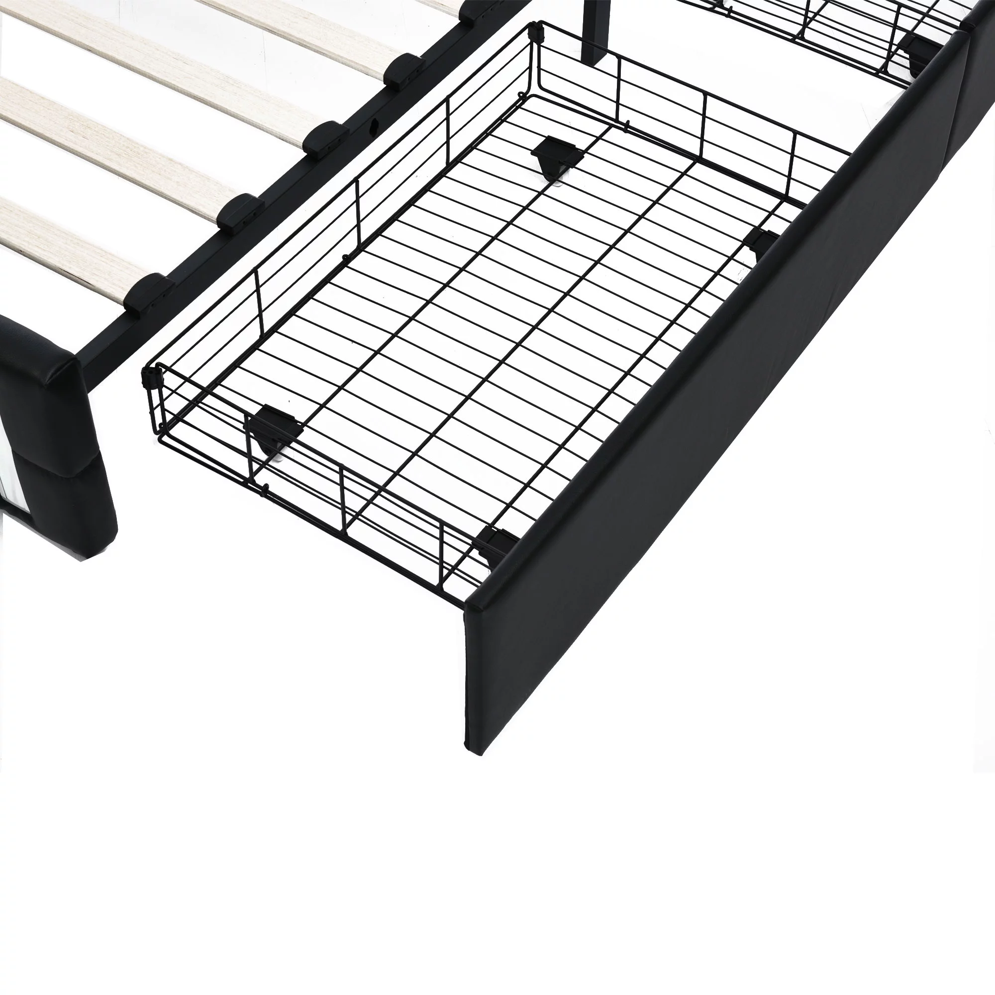 Queen Size Led Bed Frame with 2 Storage Drawers,Upholstered Platform Storage Bed with Drawers and Flower Headboard,White