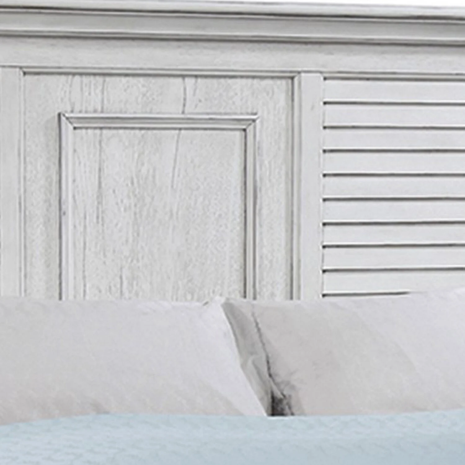 Benjara Molded Trim Shutter Headboard Eli California King Size Panel Bed, White