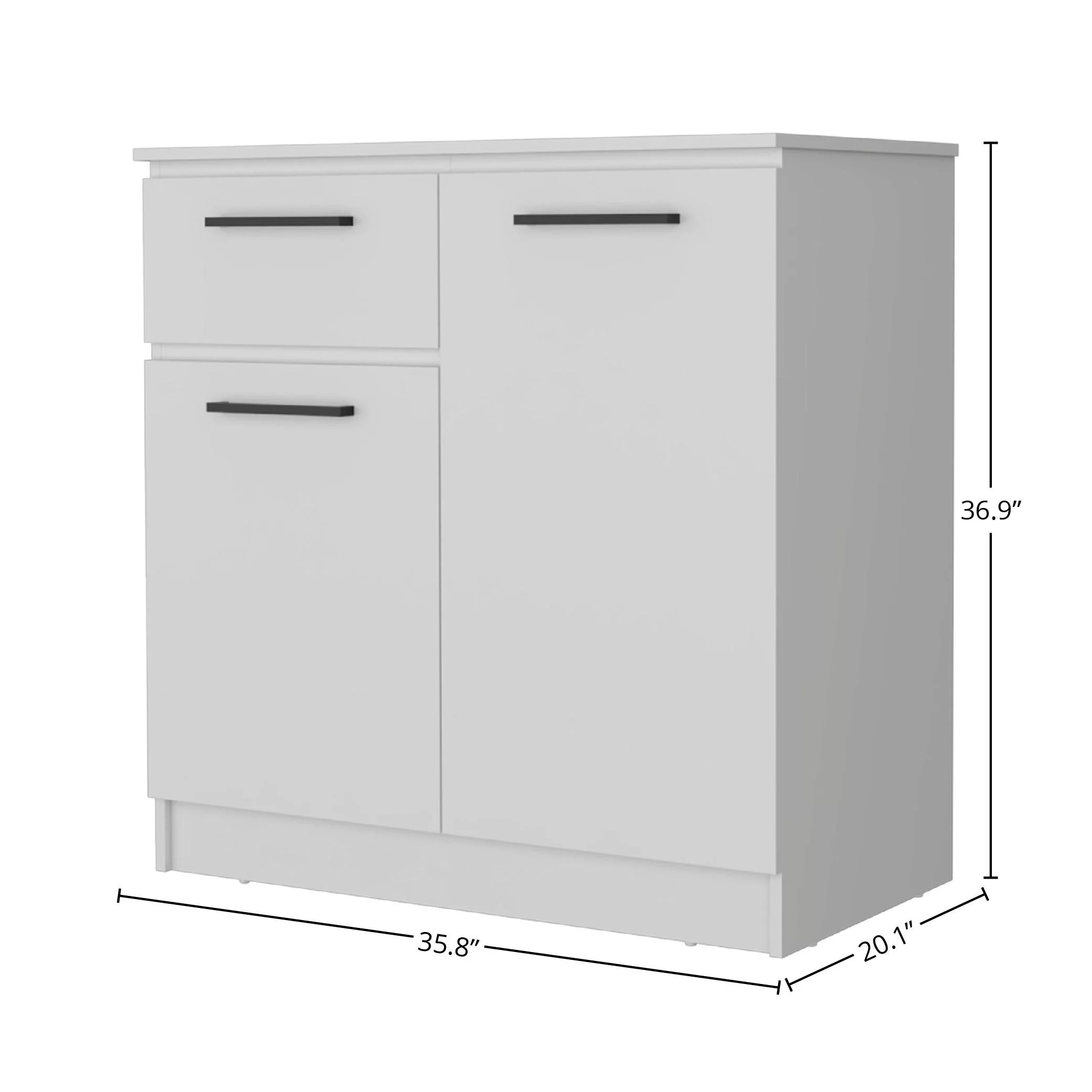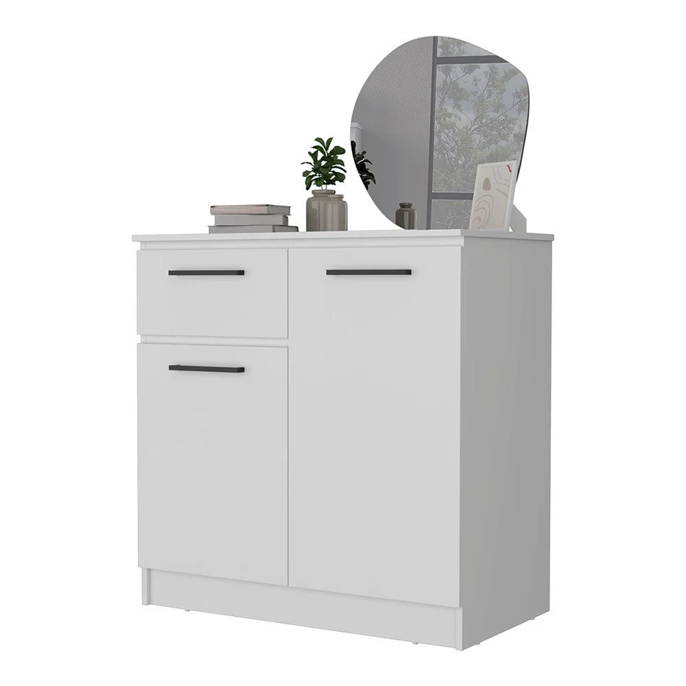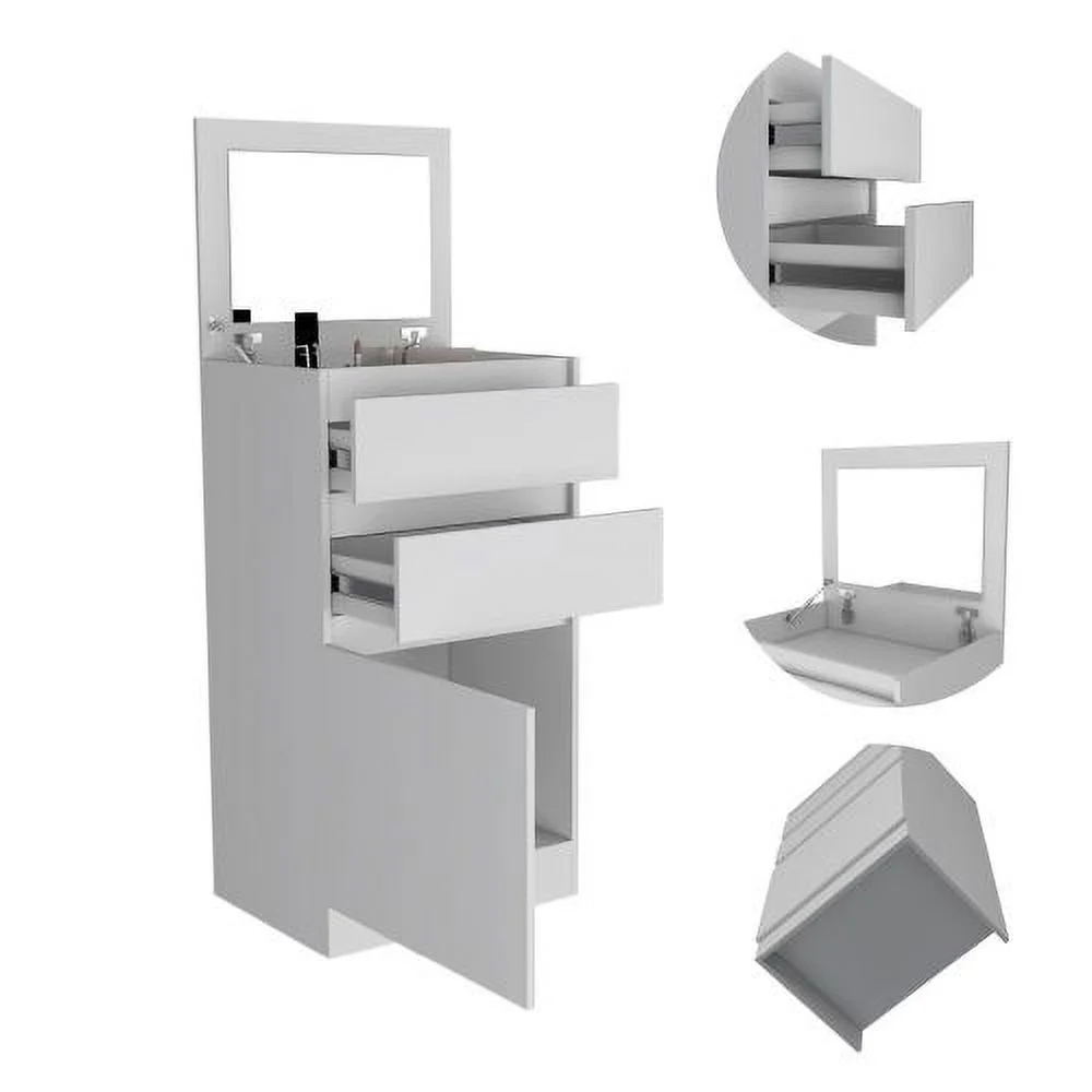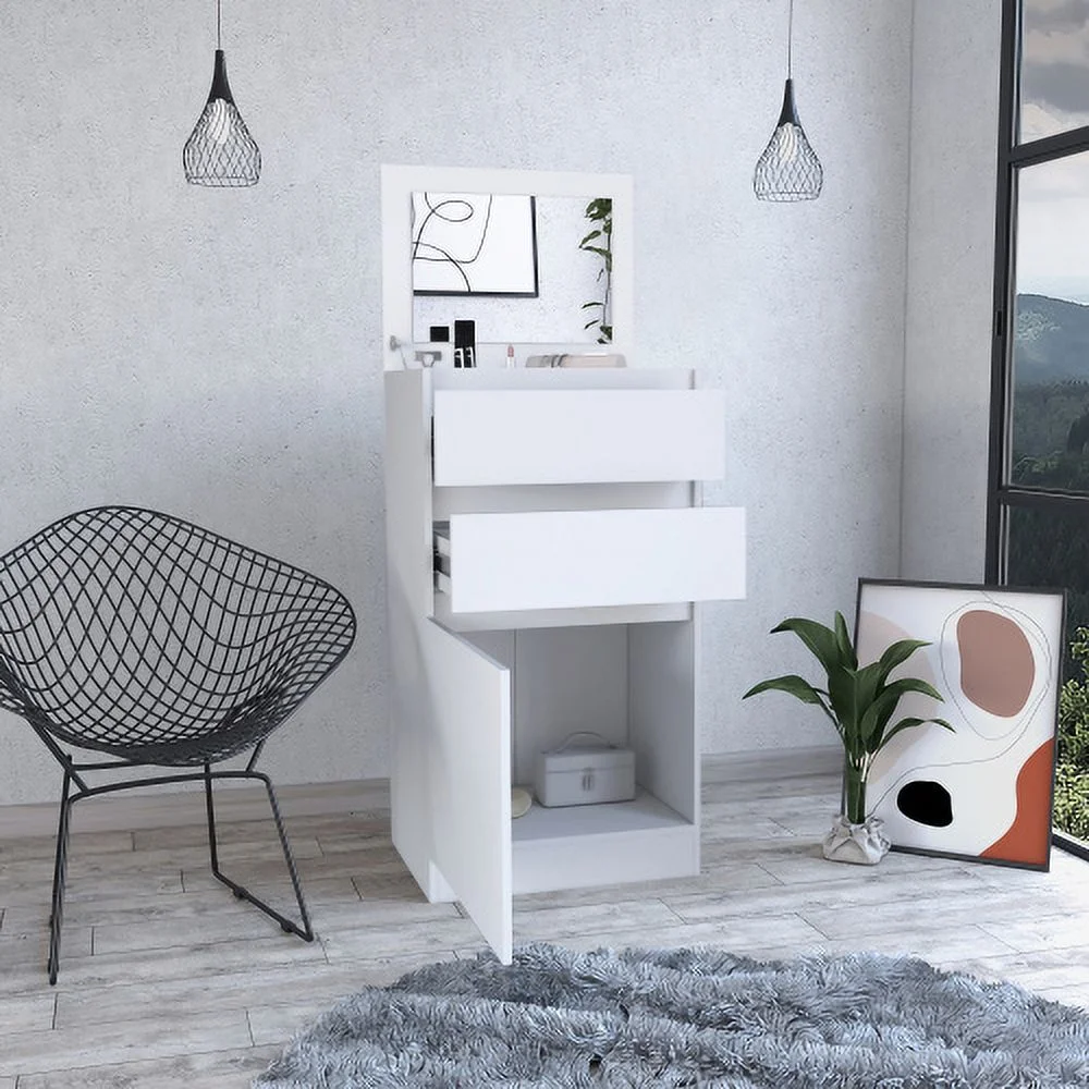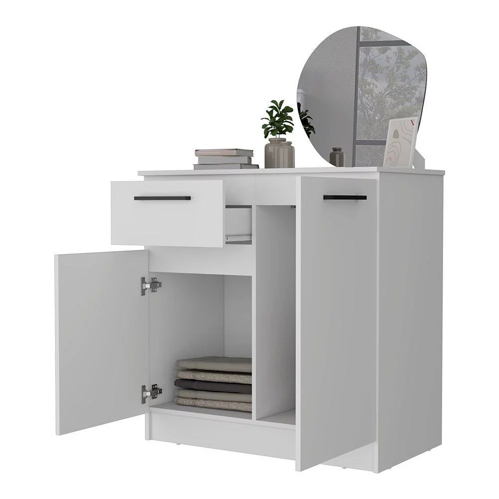 Dresser With Jewelry Box, Single Door Cabinet, Mirror, Two Drawers - White