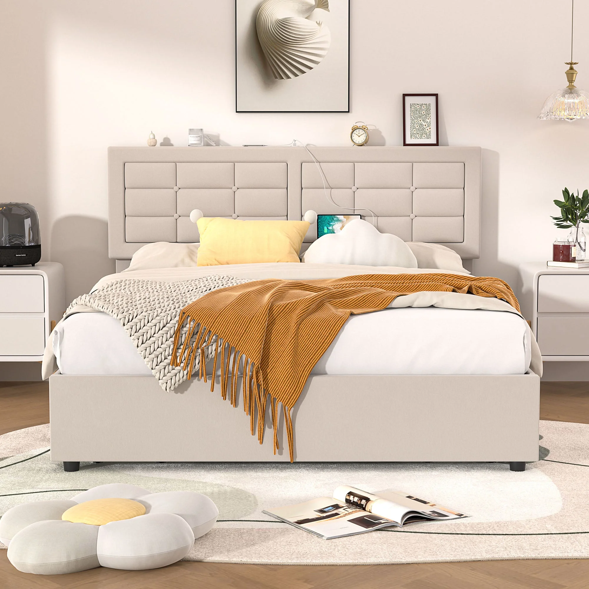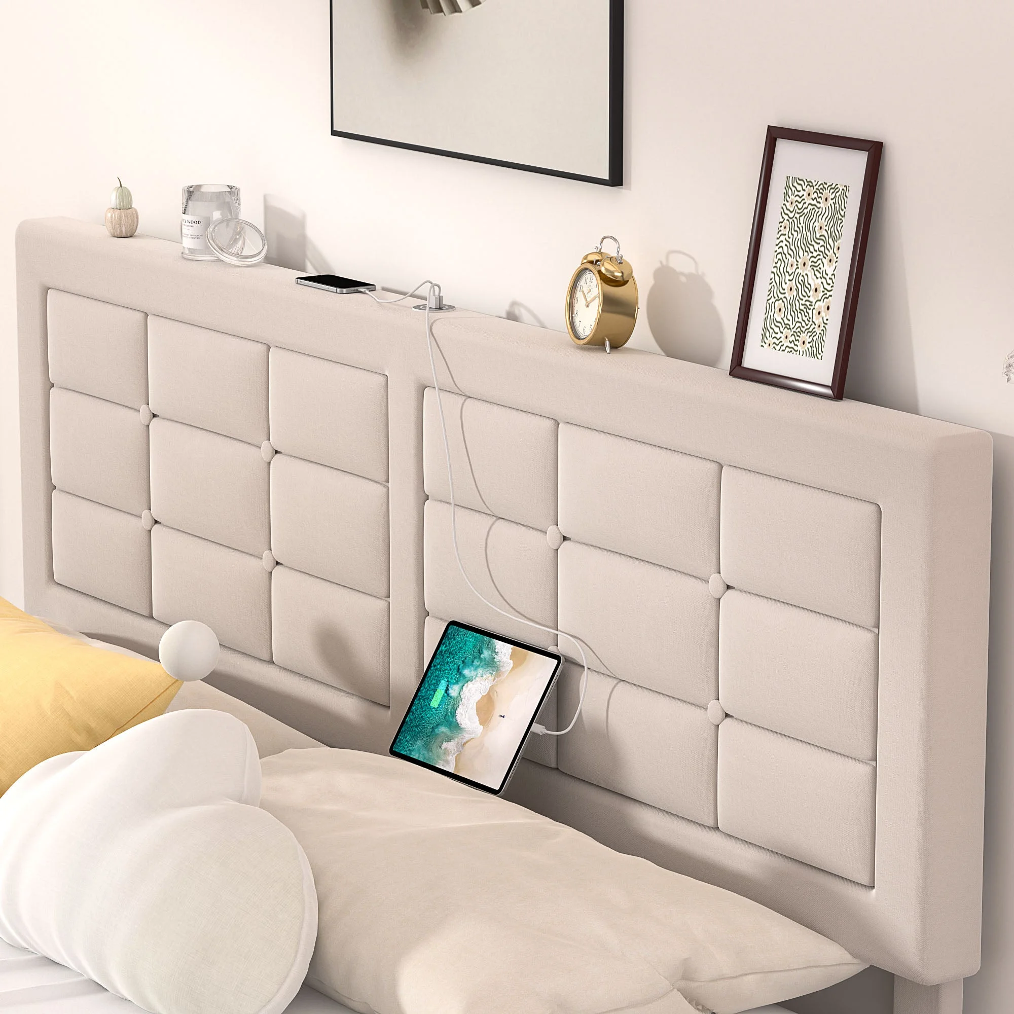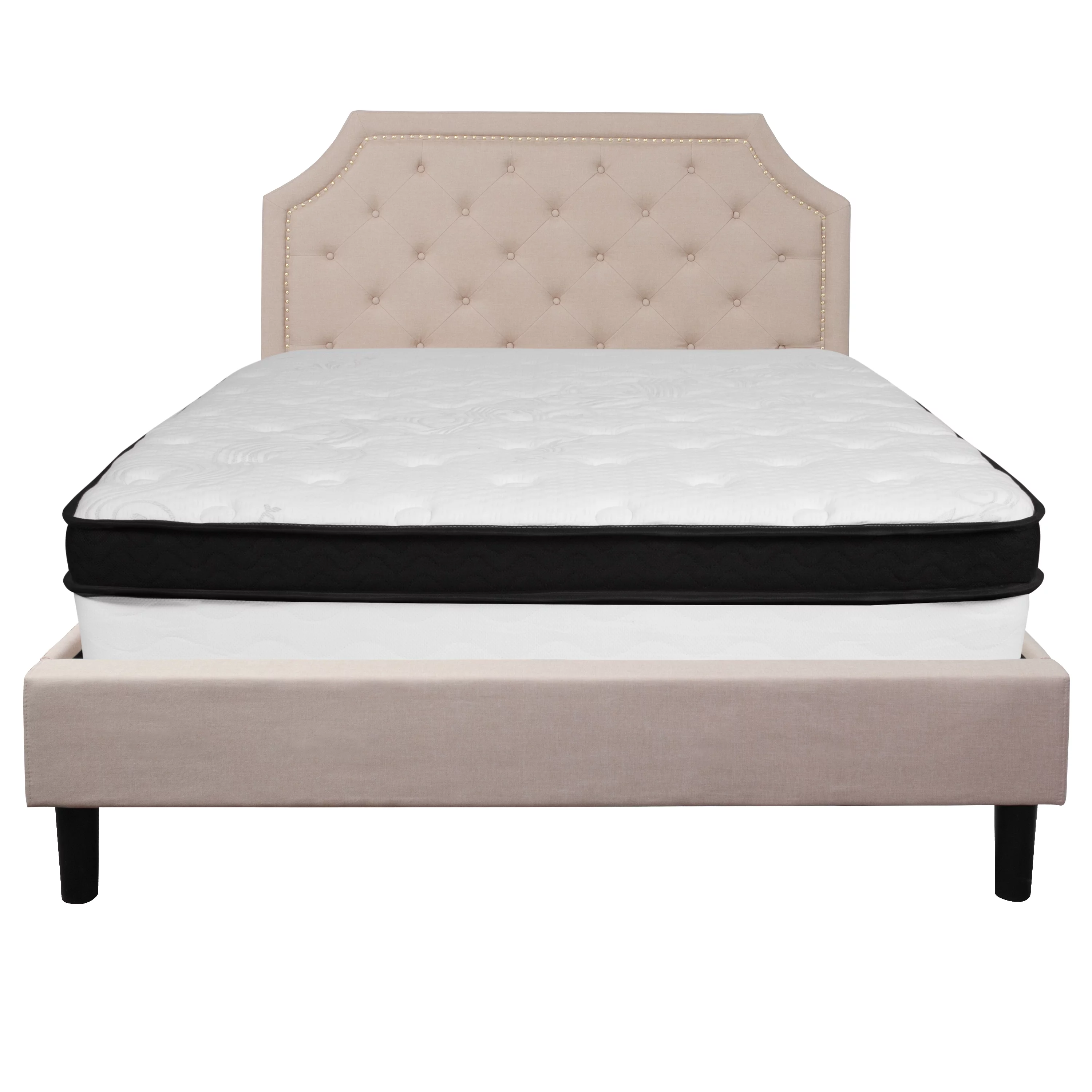 Flash Furniture Brighton Queen Size Tufted Upholstered Platform Bed in Beige Fabric with Memory Foam Mattress