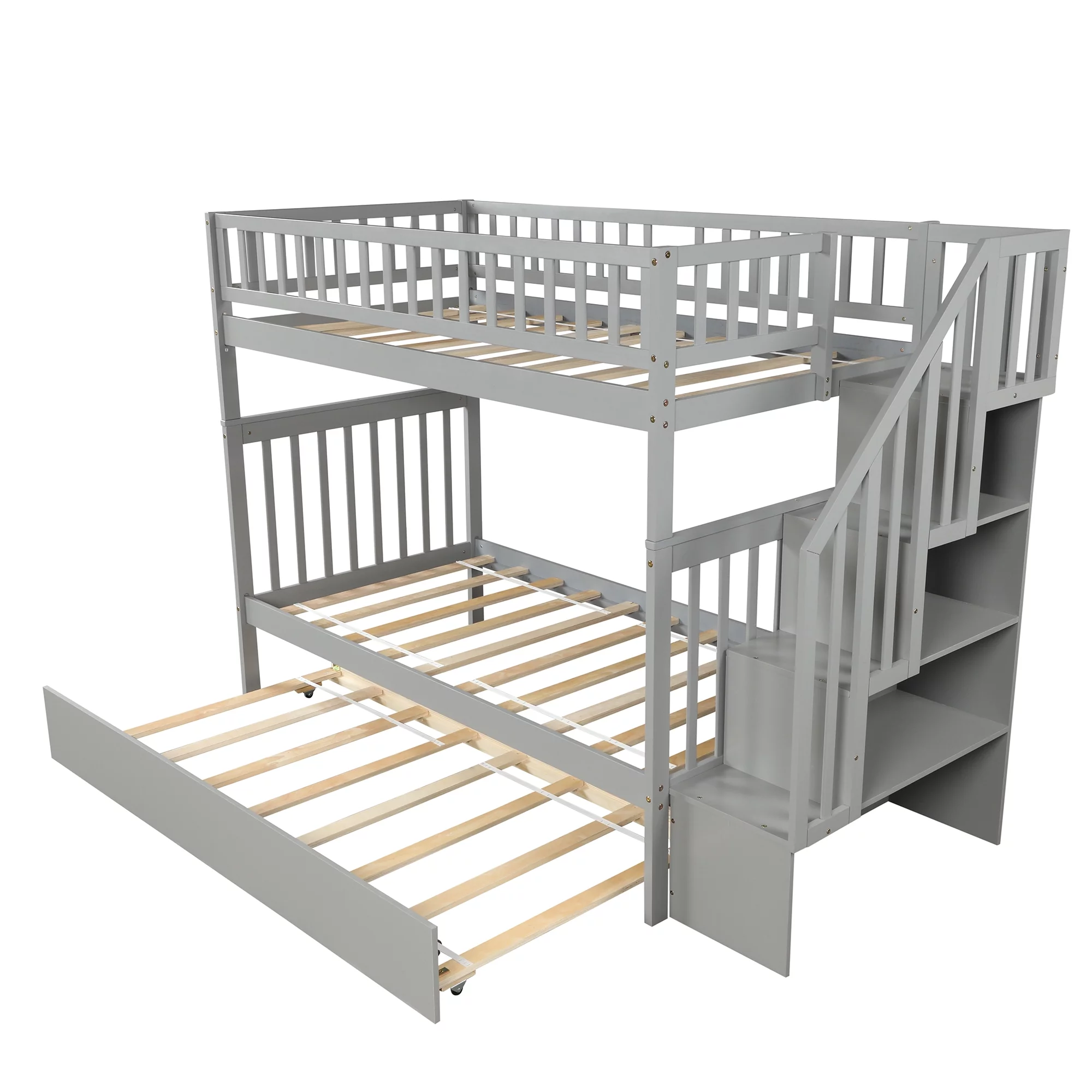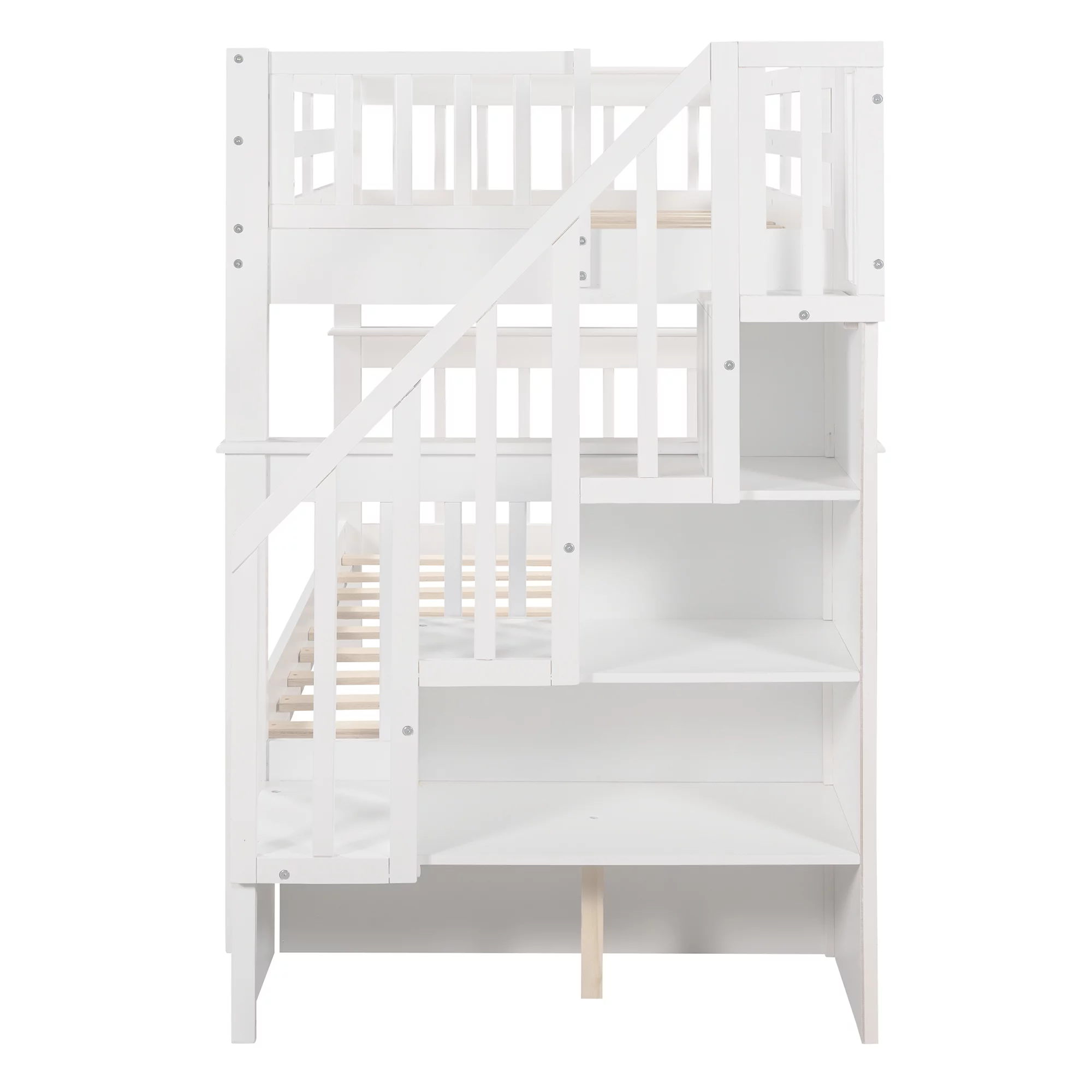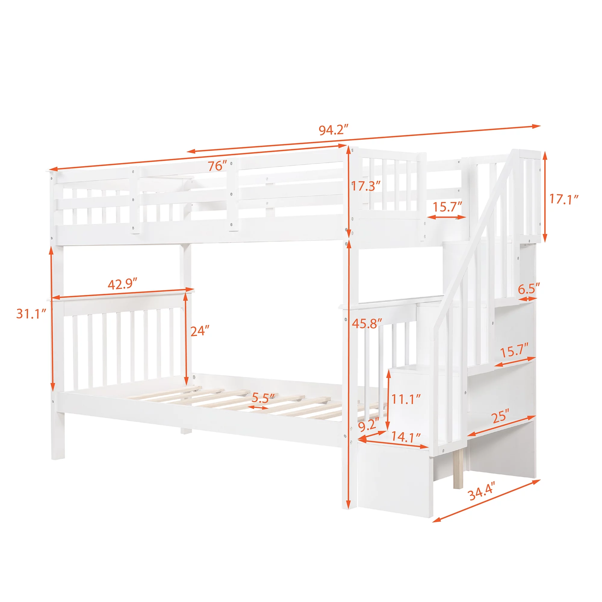 Stairway Bunk Beds Twin Over Twin with 4 Storage Shelves in The Steps and a Twin Trundle Teens Bedroom, Guest Room Furniture