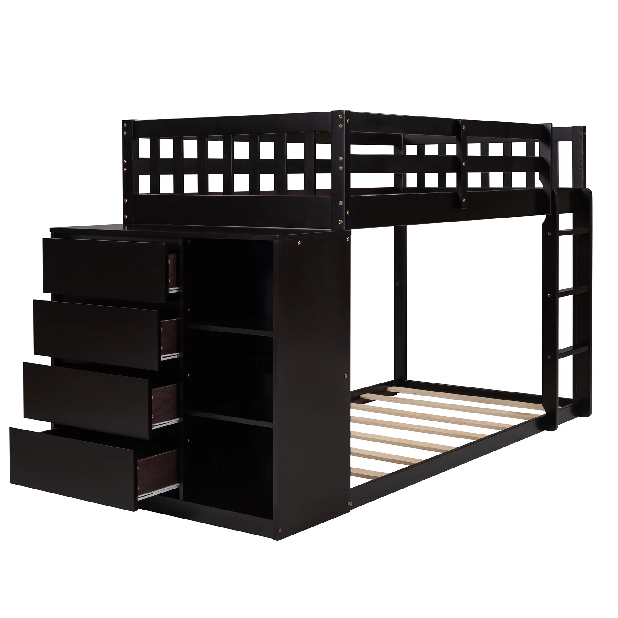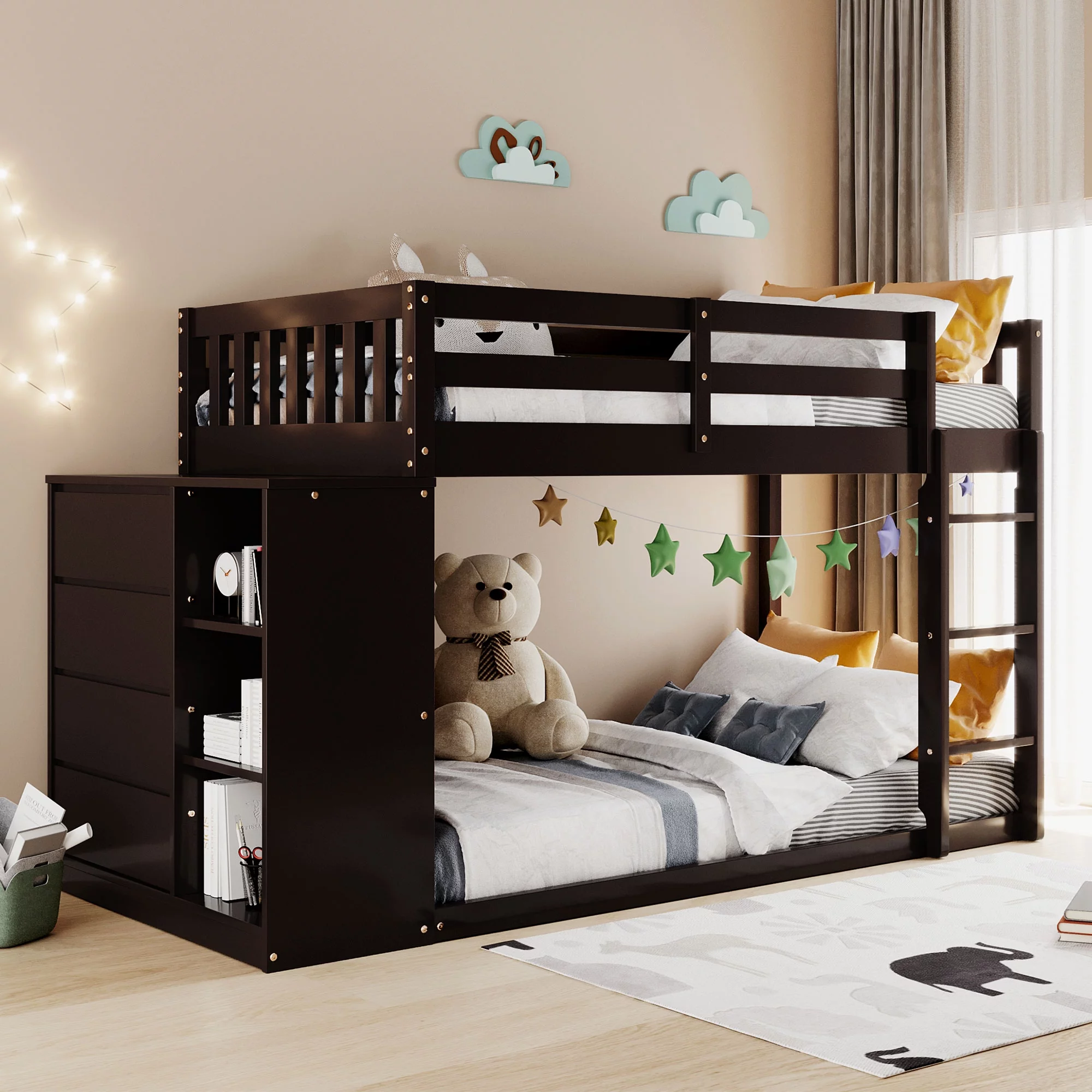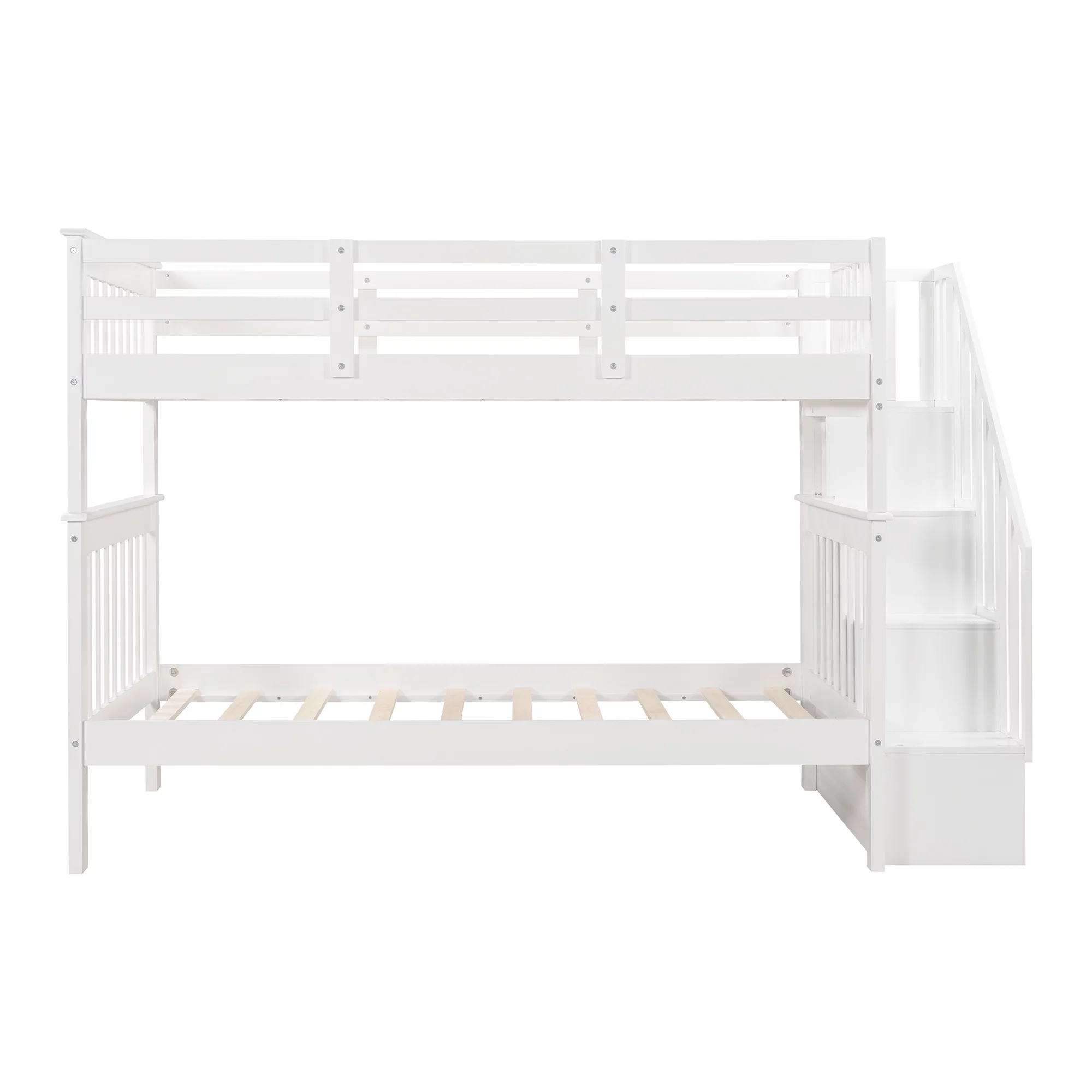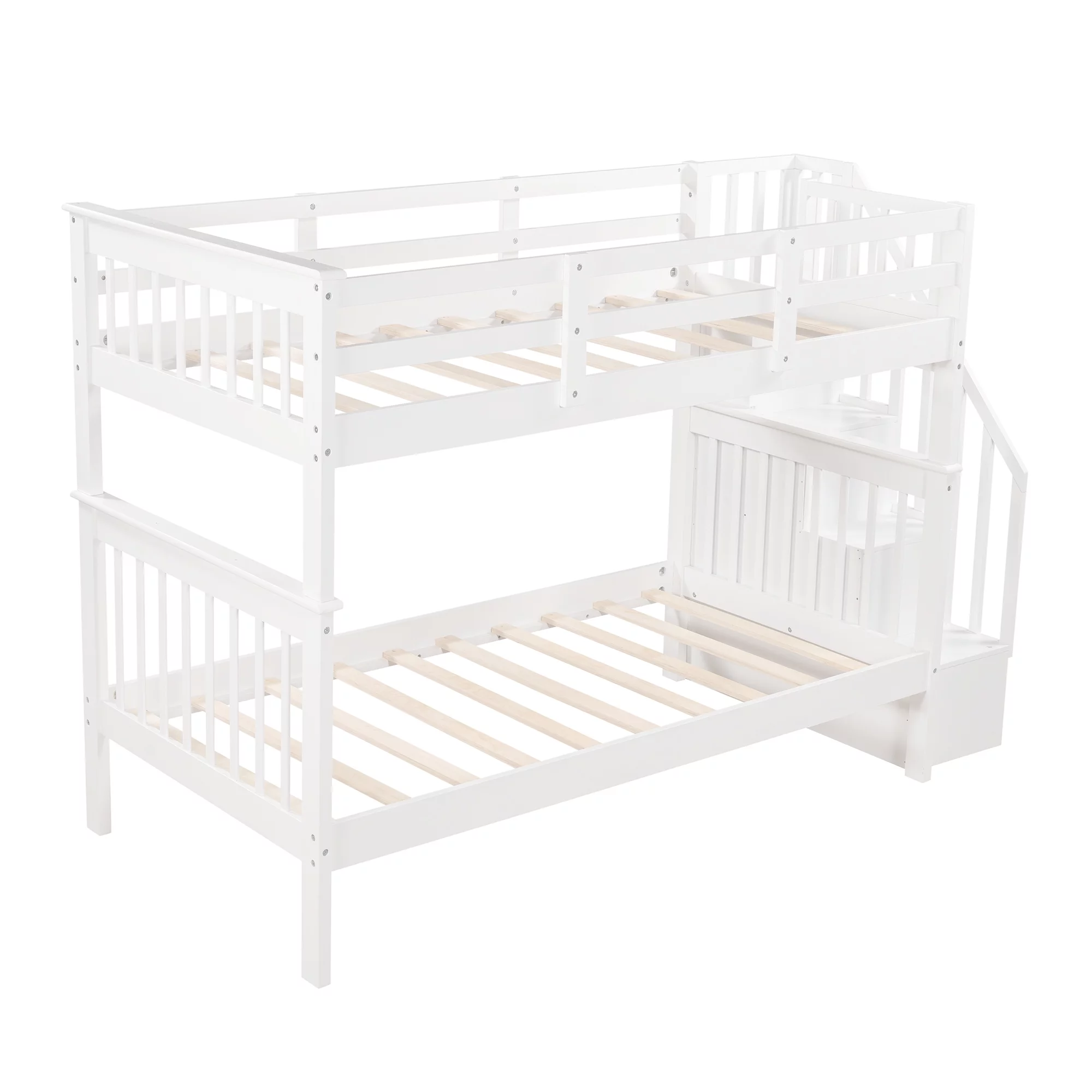 Stairway Bunk Beds Twin Over Twin with 4 Storage Shelves in The Steps and a Twin Trundle Teens Bedroom, Guest Room Furniture