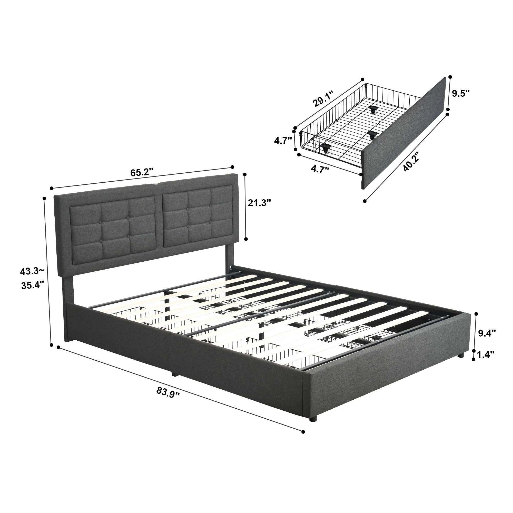 Platform Bed Frame - Foldable, Under-Bed Storage, No Tools Required, Supports 2000+ Lbs - Full XL Size