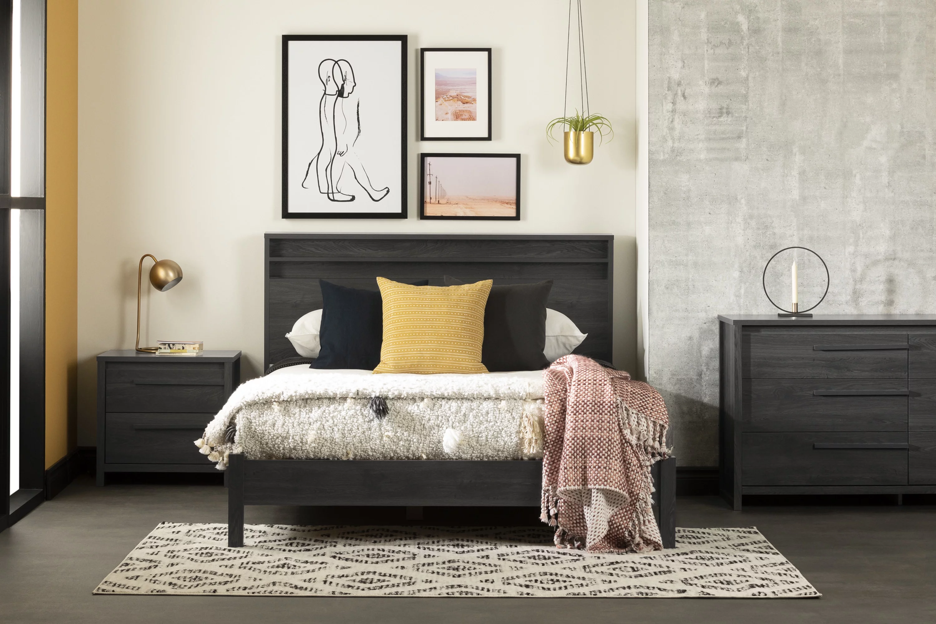 South Shore Tao Contemporary Bed and Headboard Set, Full/Queen, Gray Oak