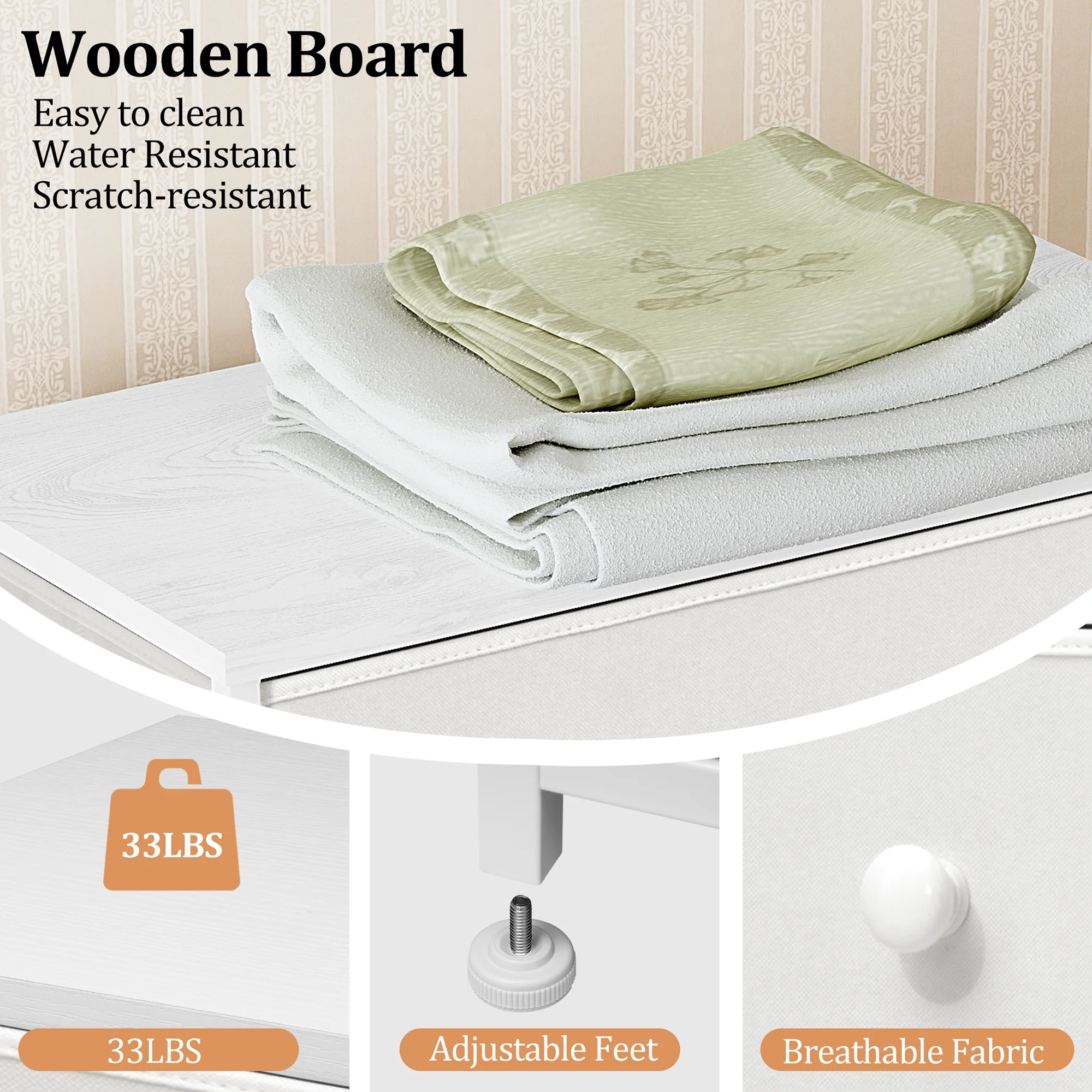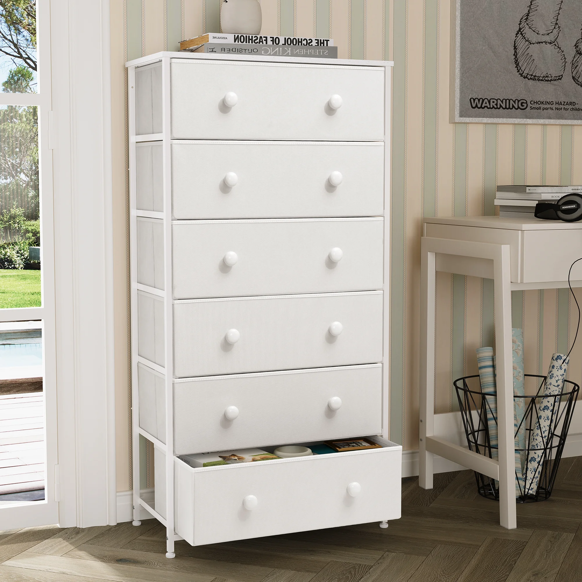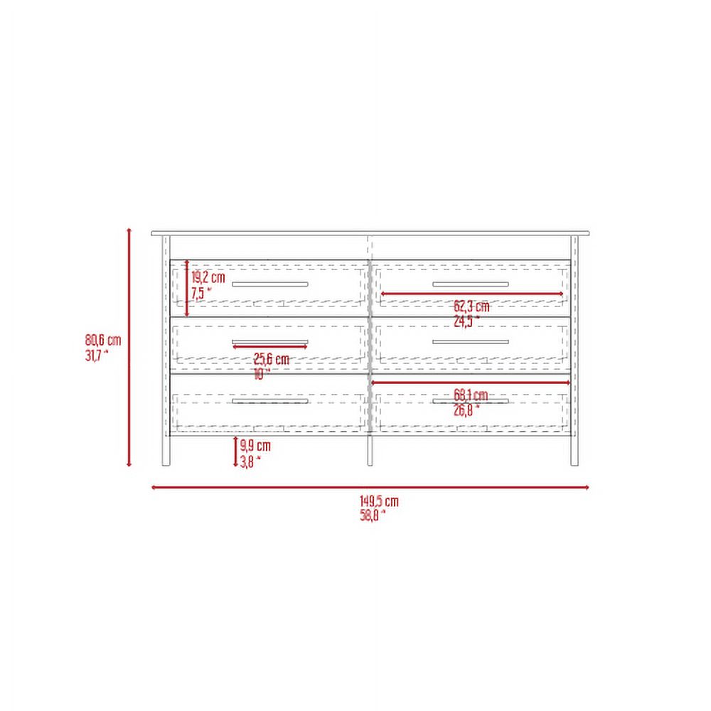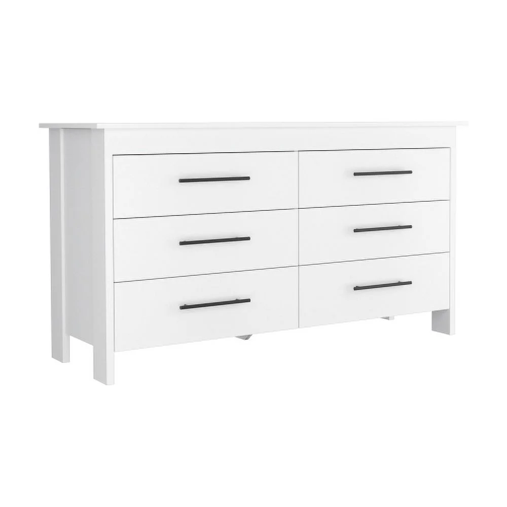 Superior Top 6 Drawer Double Dresser - White, Elegant Storage with Four Legs