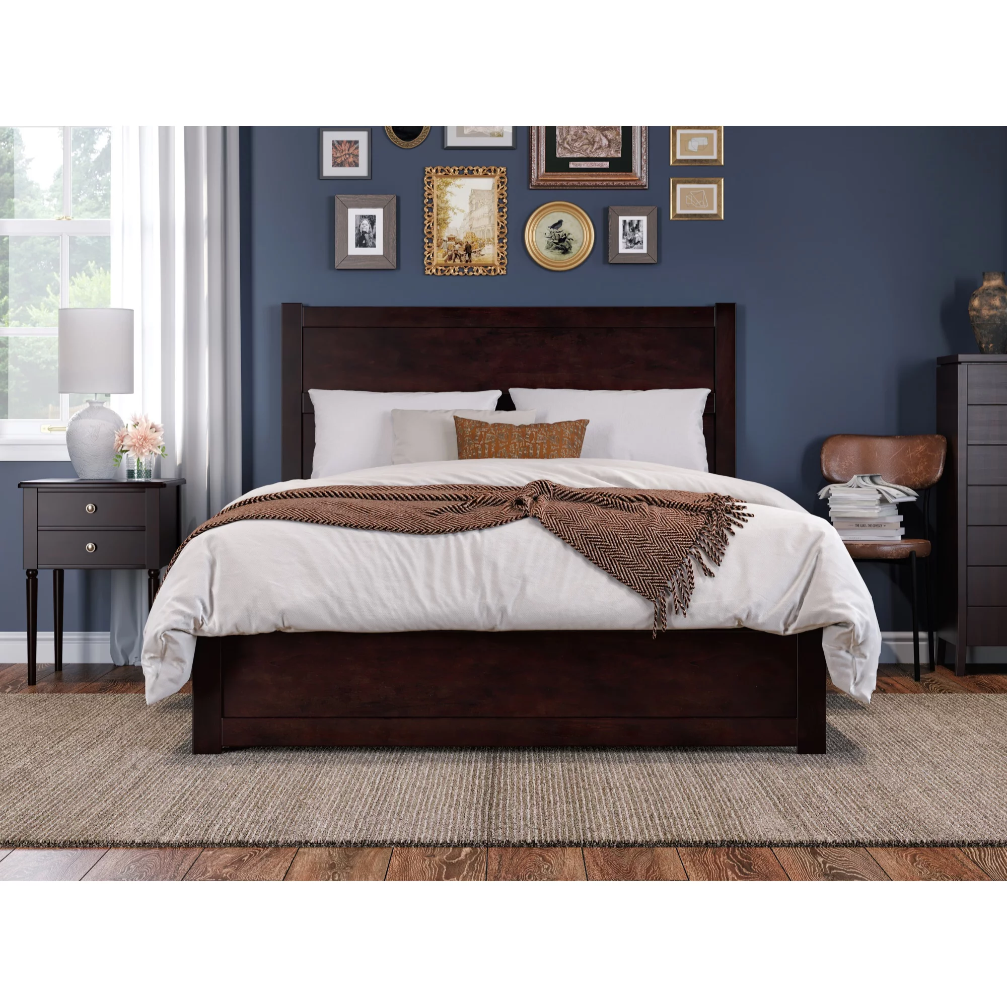 AFI NoHo Full Solid Wood Bed with 2 Drawers and USB Charger in Espresso