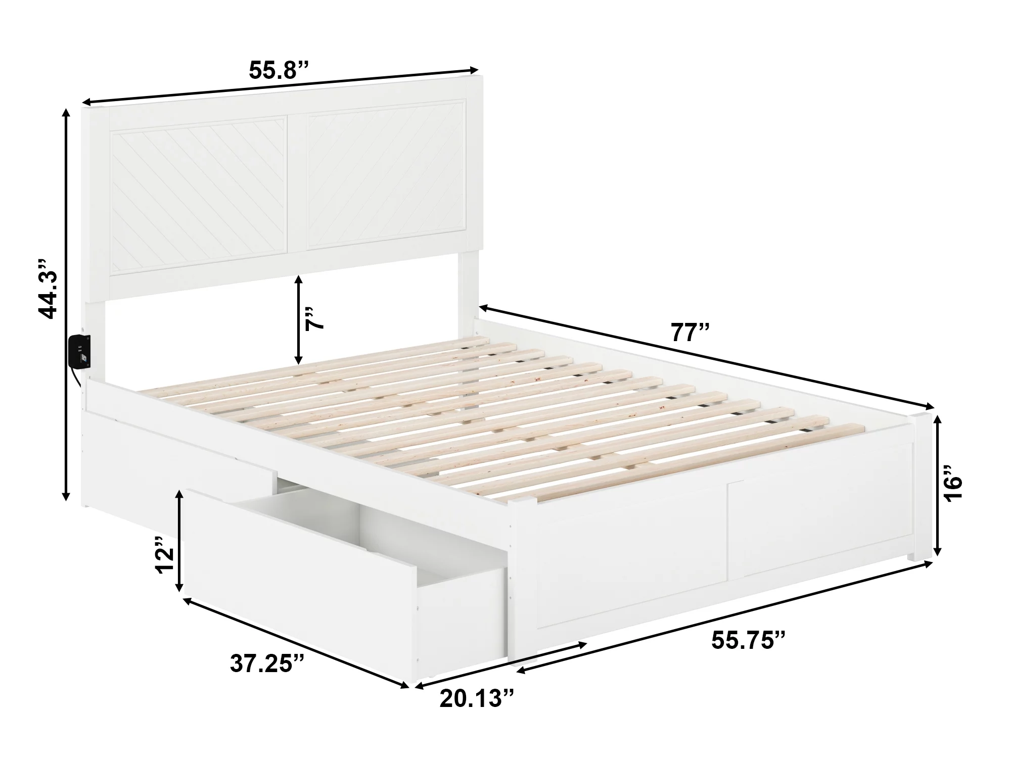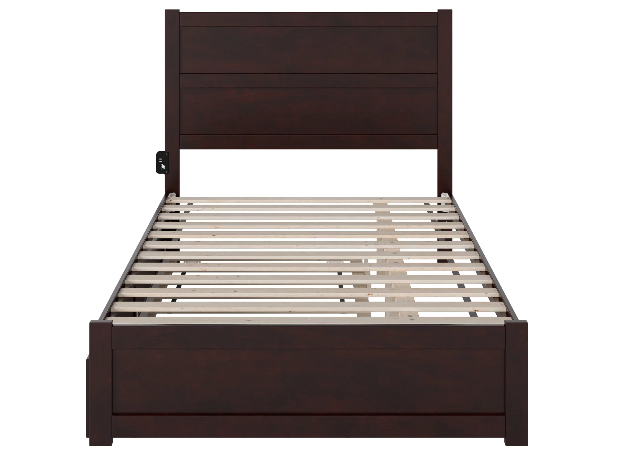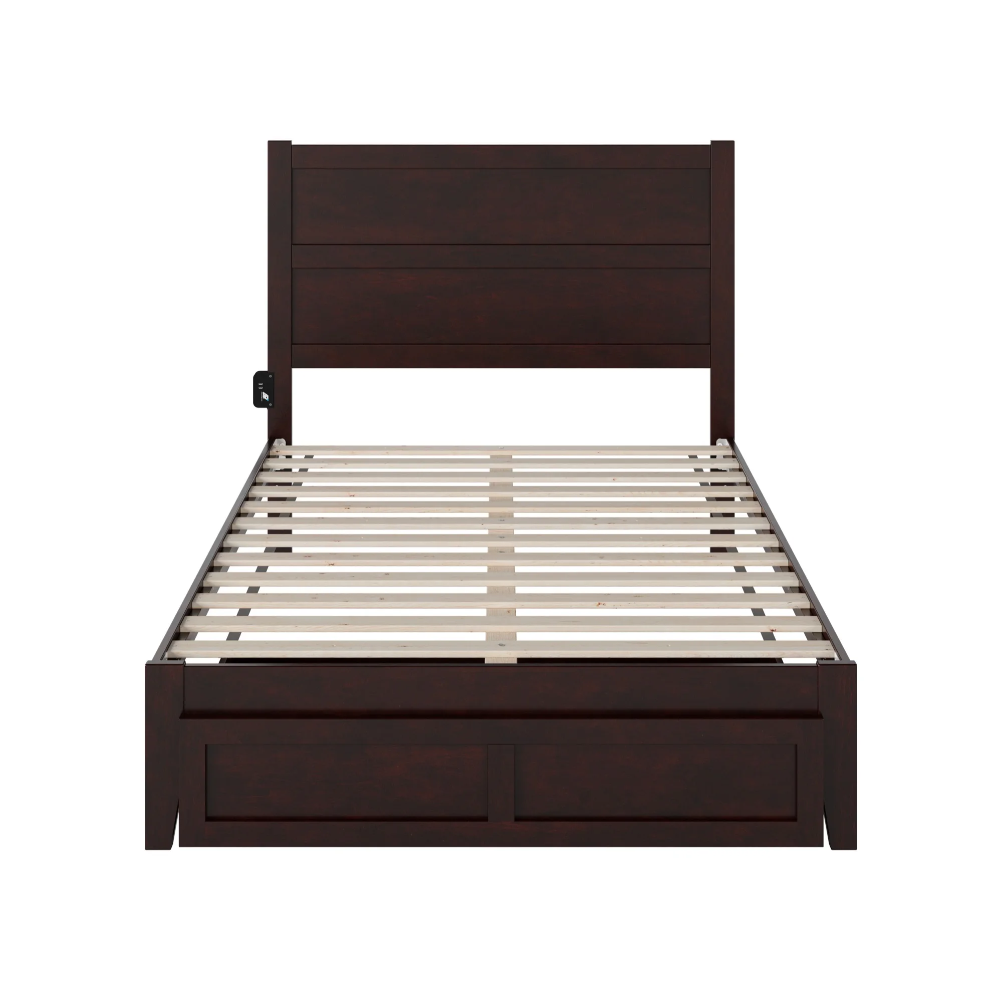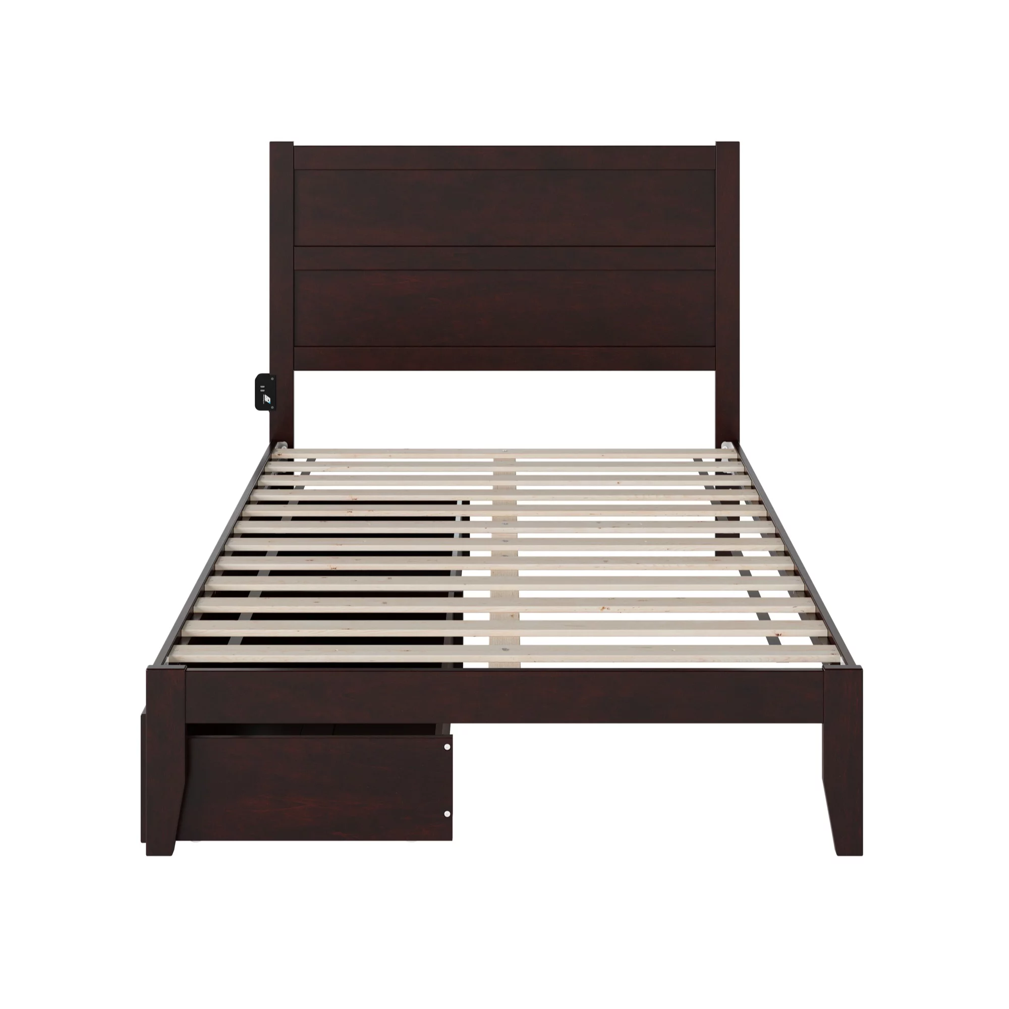 NoHo Solid Wood Platform Bed with Foot Drawer Storage & Attachable USB Charger, Espresso - Full Size