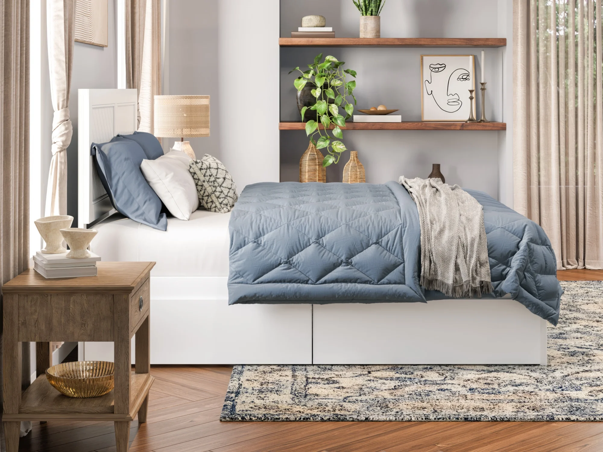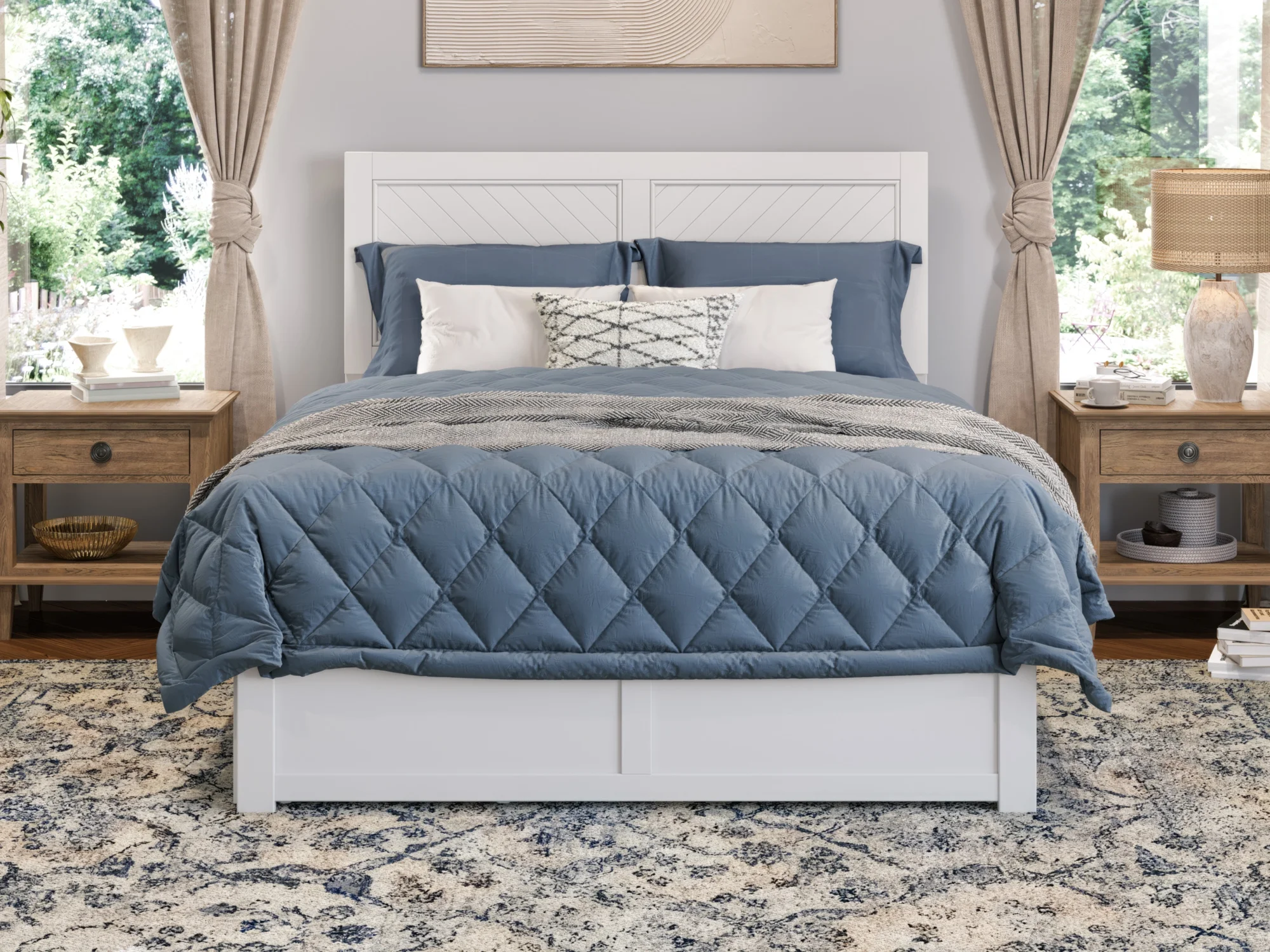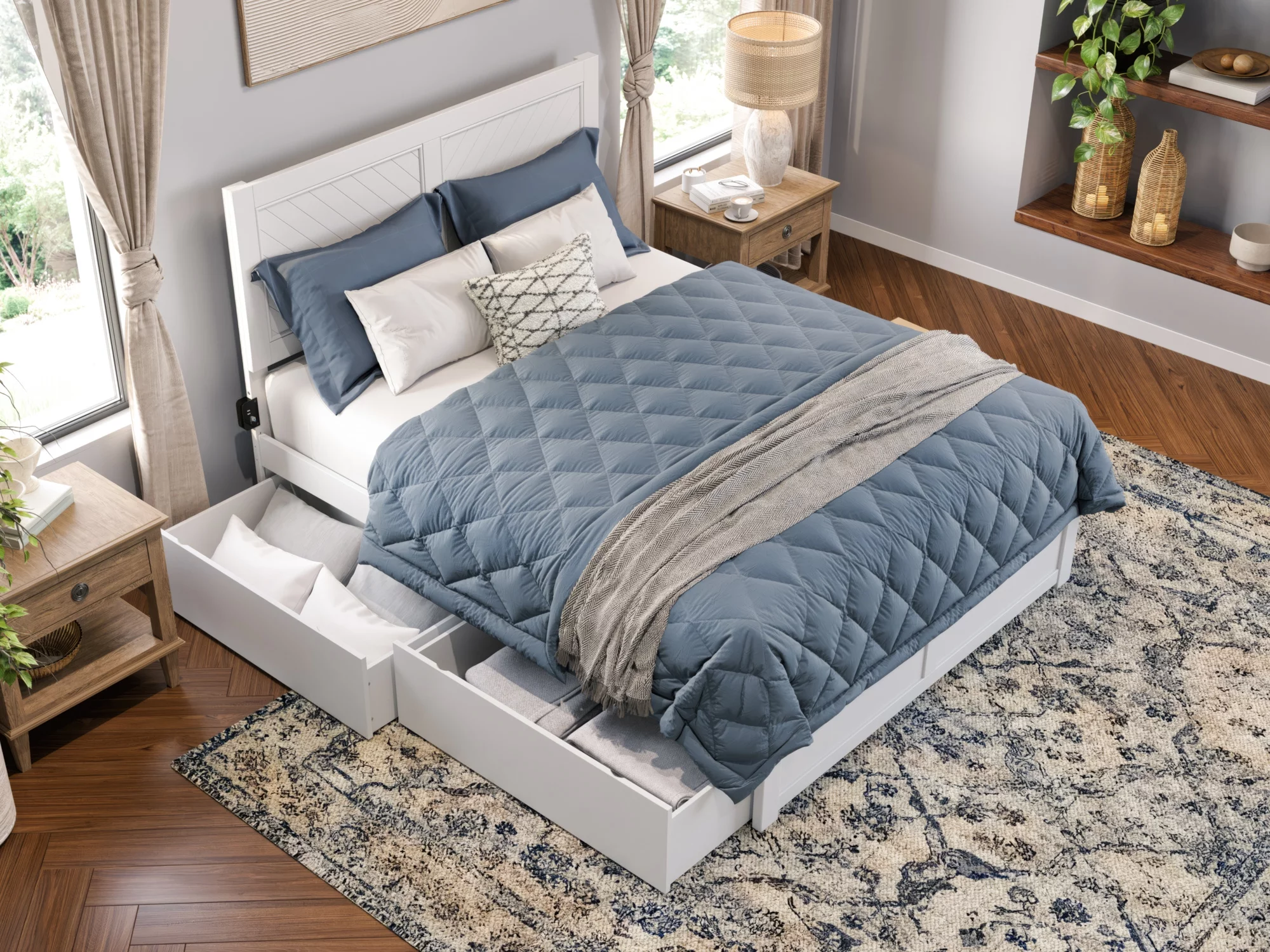 AFI Canyon White Solid Wood Platform Bed with Footboard & Set of 2 Storage Drawers, Full