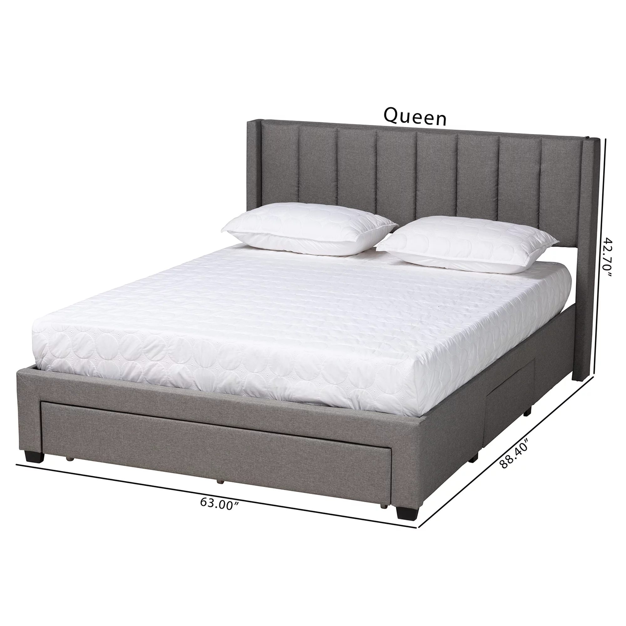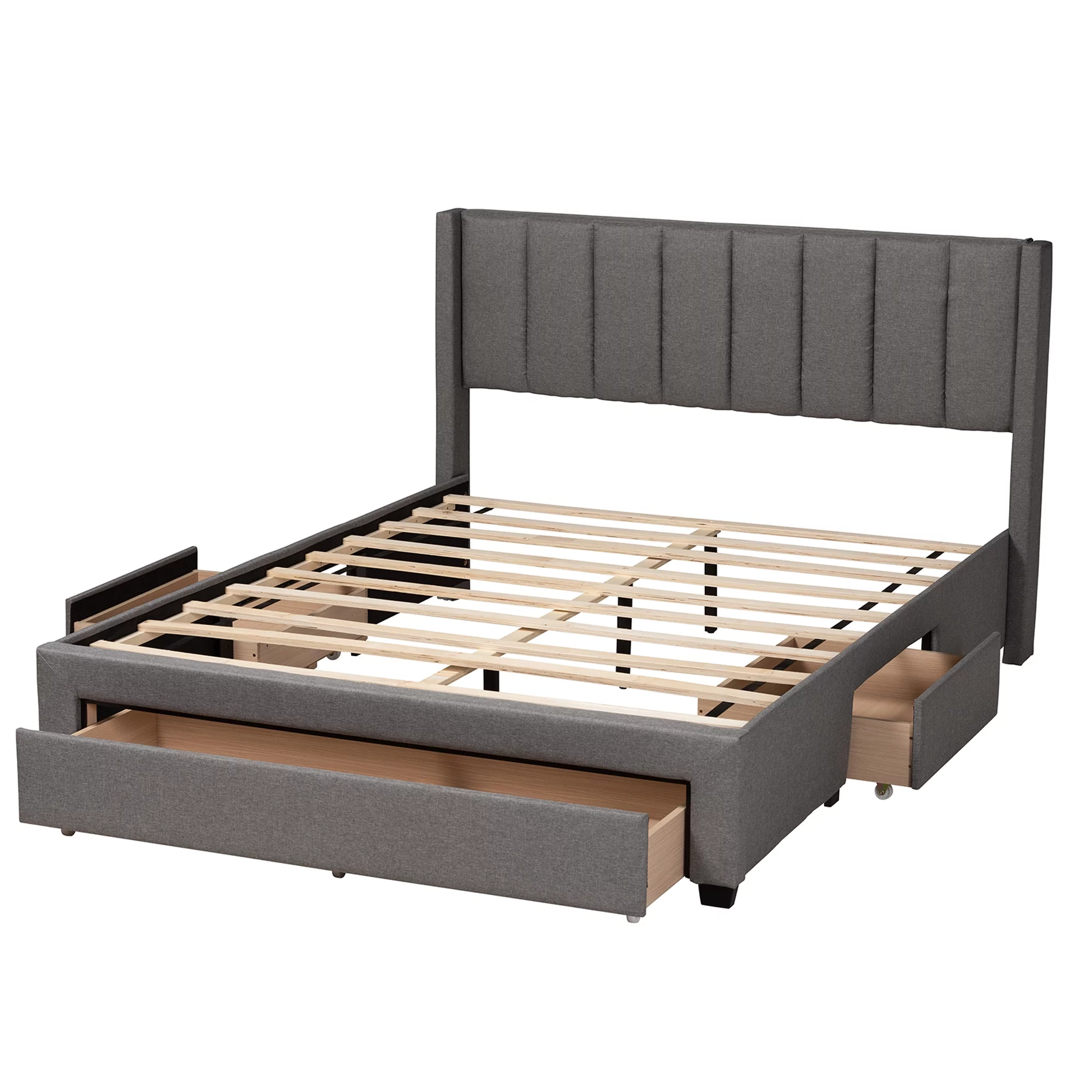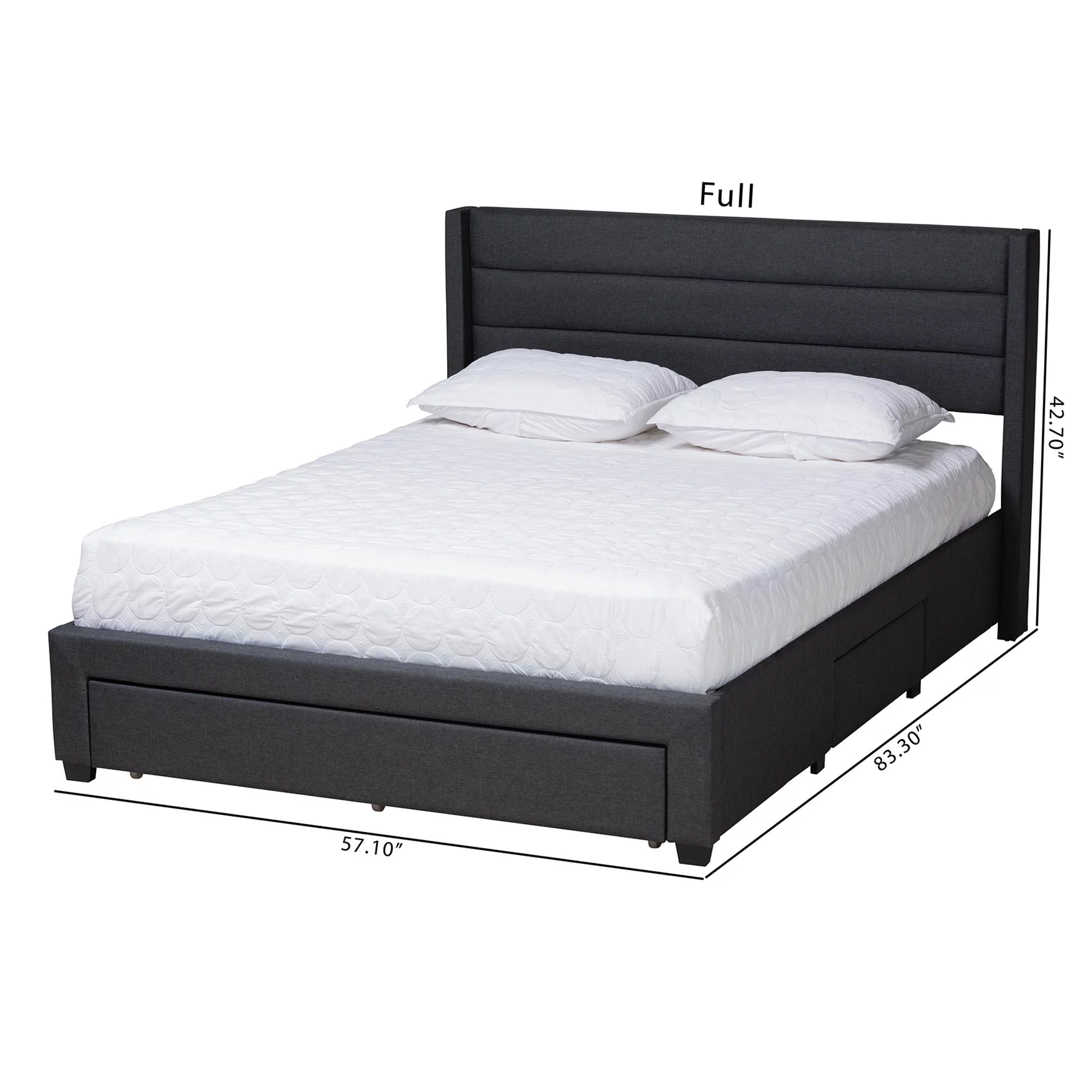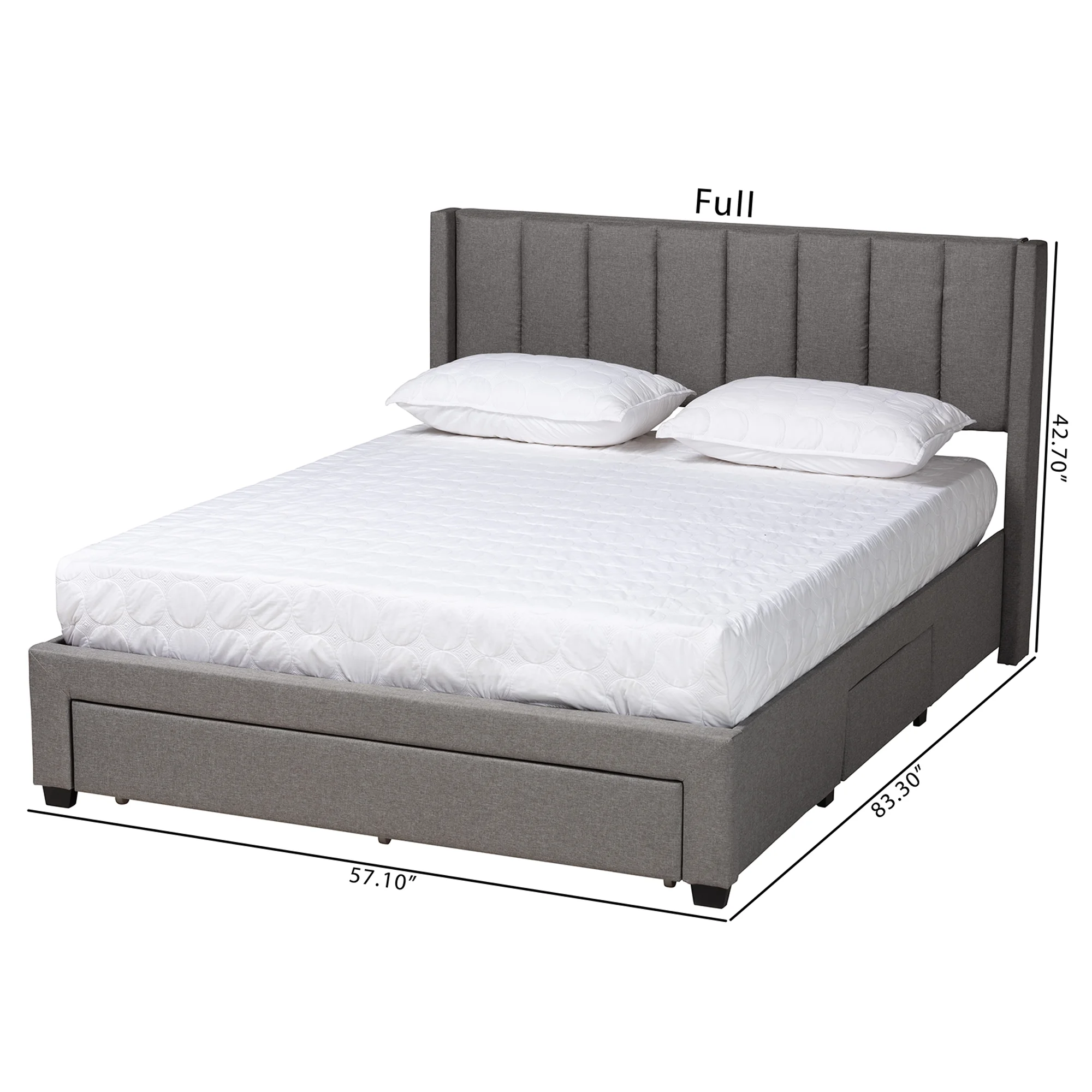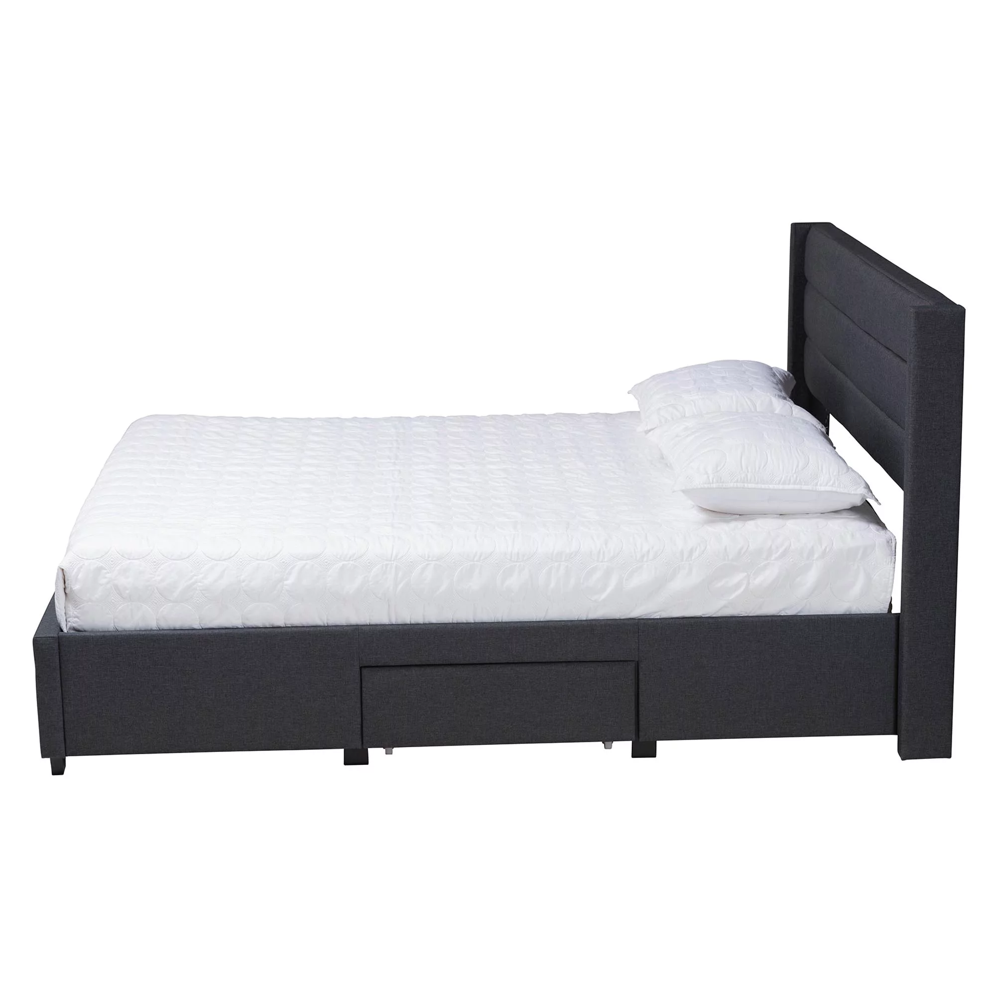 Baxton Studio Coronado Mid-Century Modern Transitional Grey Fabric Full Size 3-Drawer Storage Platform Bed