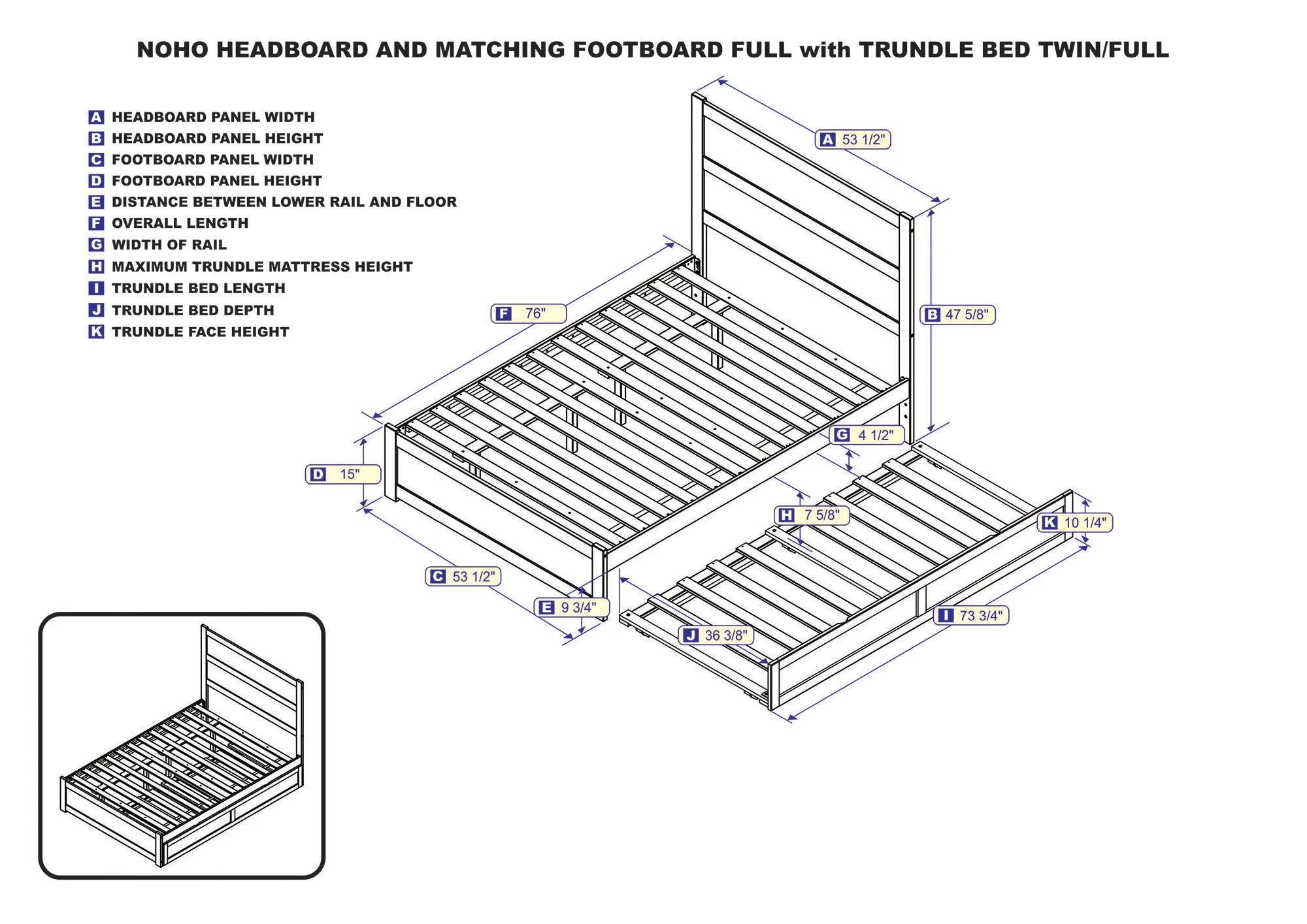 AFI NoHo Full Wood Platform Bed with Headboard Footboard & Twin Trundle, Espresso