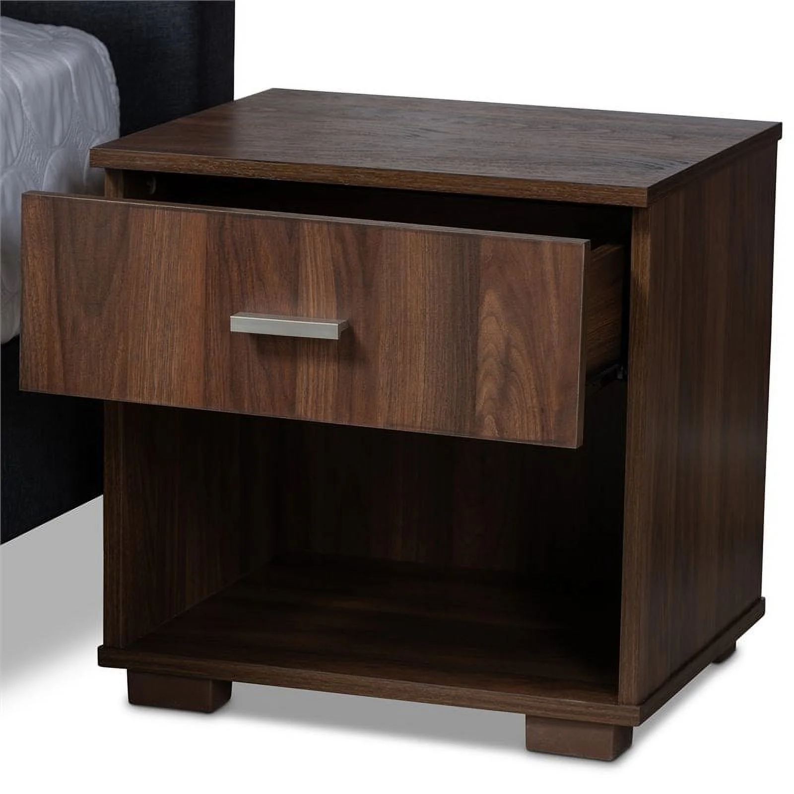Baxton Studio Flint Modern Ash Walnut Finished Wood Queen Size Platform Bed