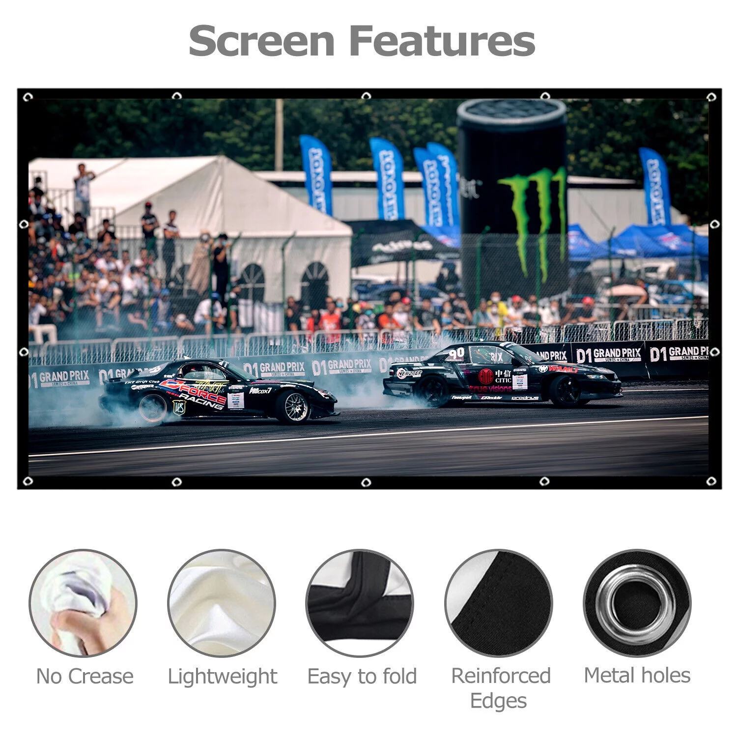 Portable Foldable Projector Screen 16:9 HD Outdoor Home Cinema Theater 3D Movie