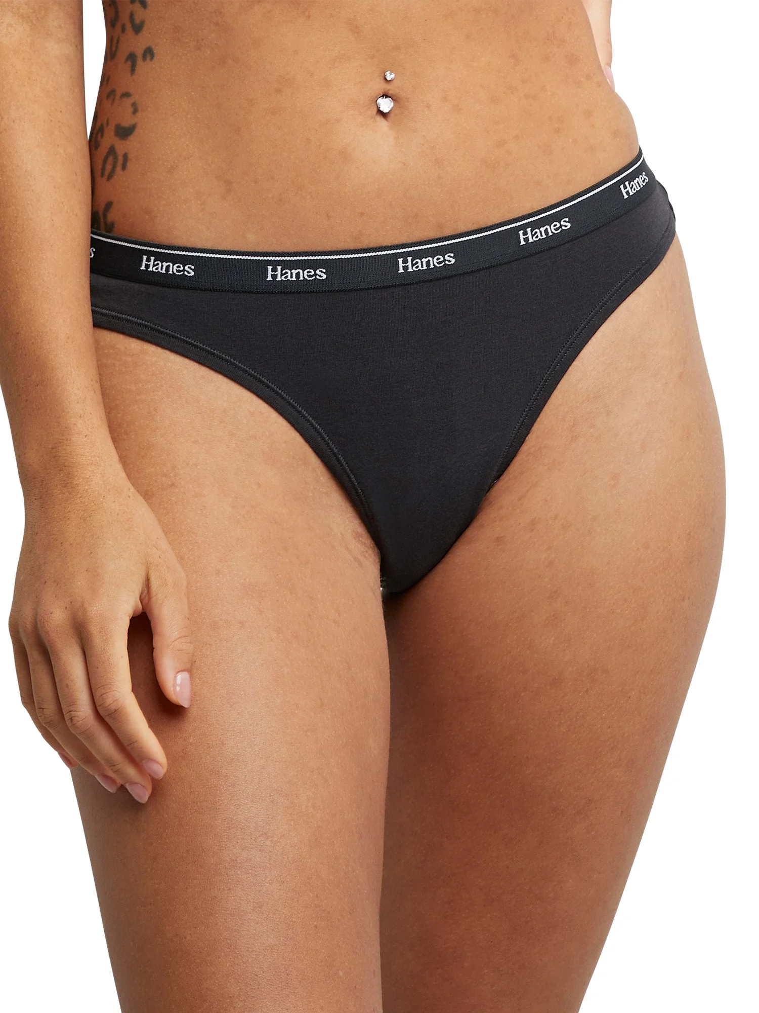 Hanes Originals Women's Thong Underwear, Breathable Cotton Stretch, 6-Pack