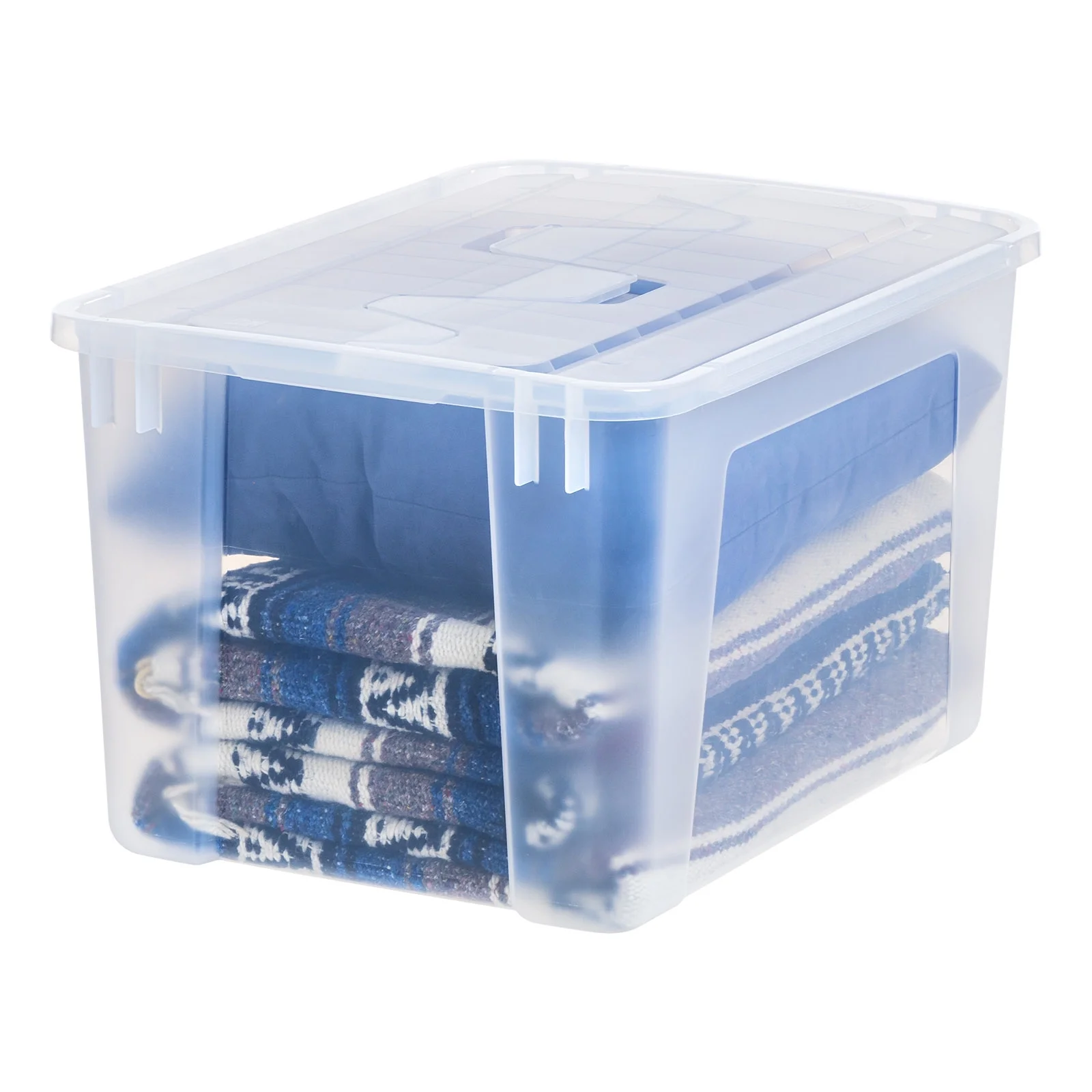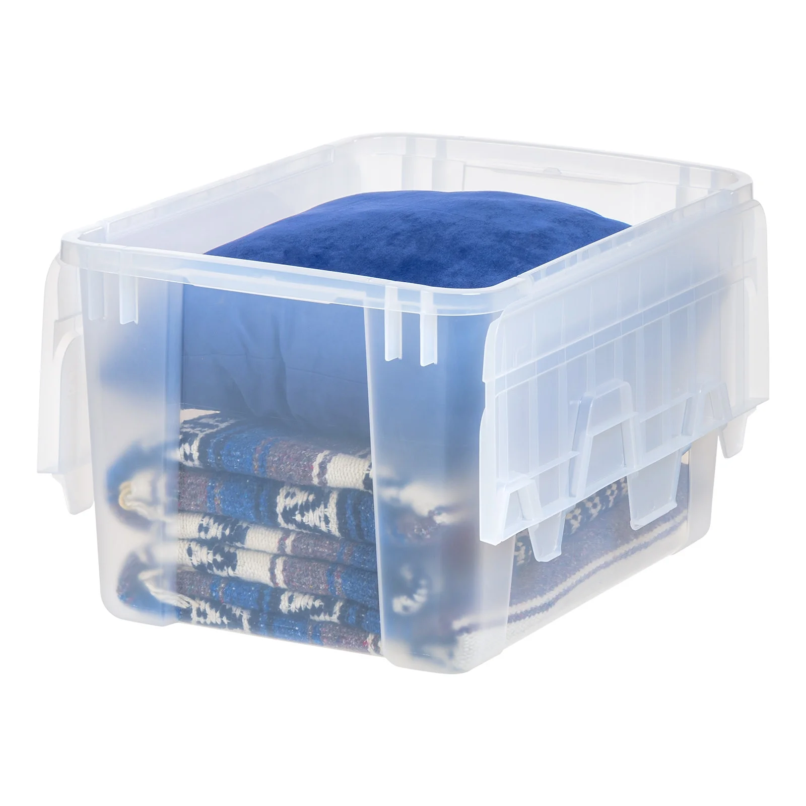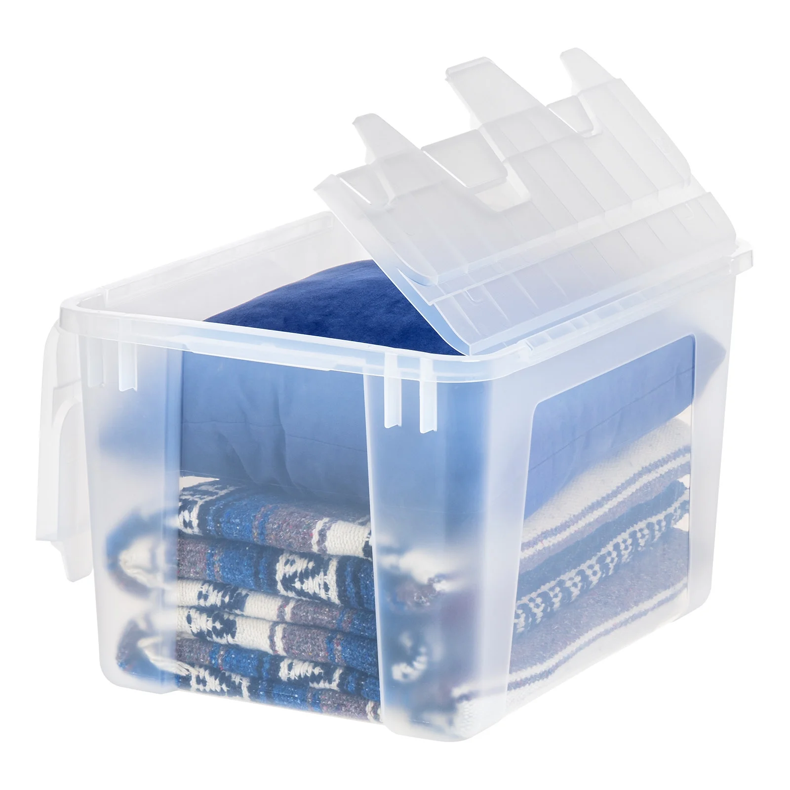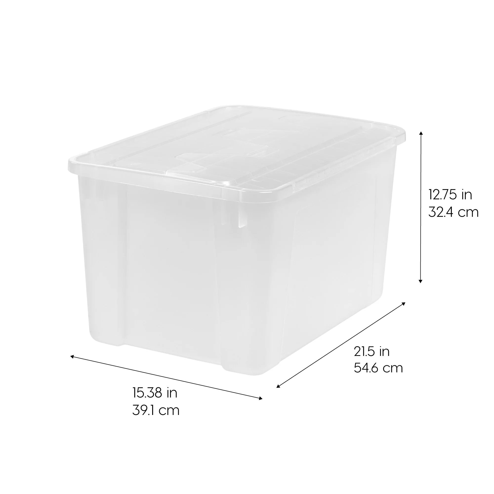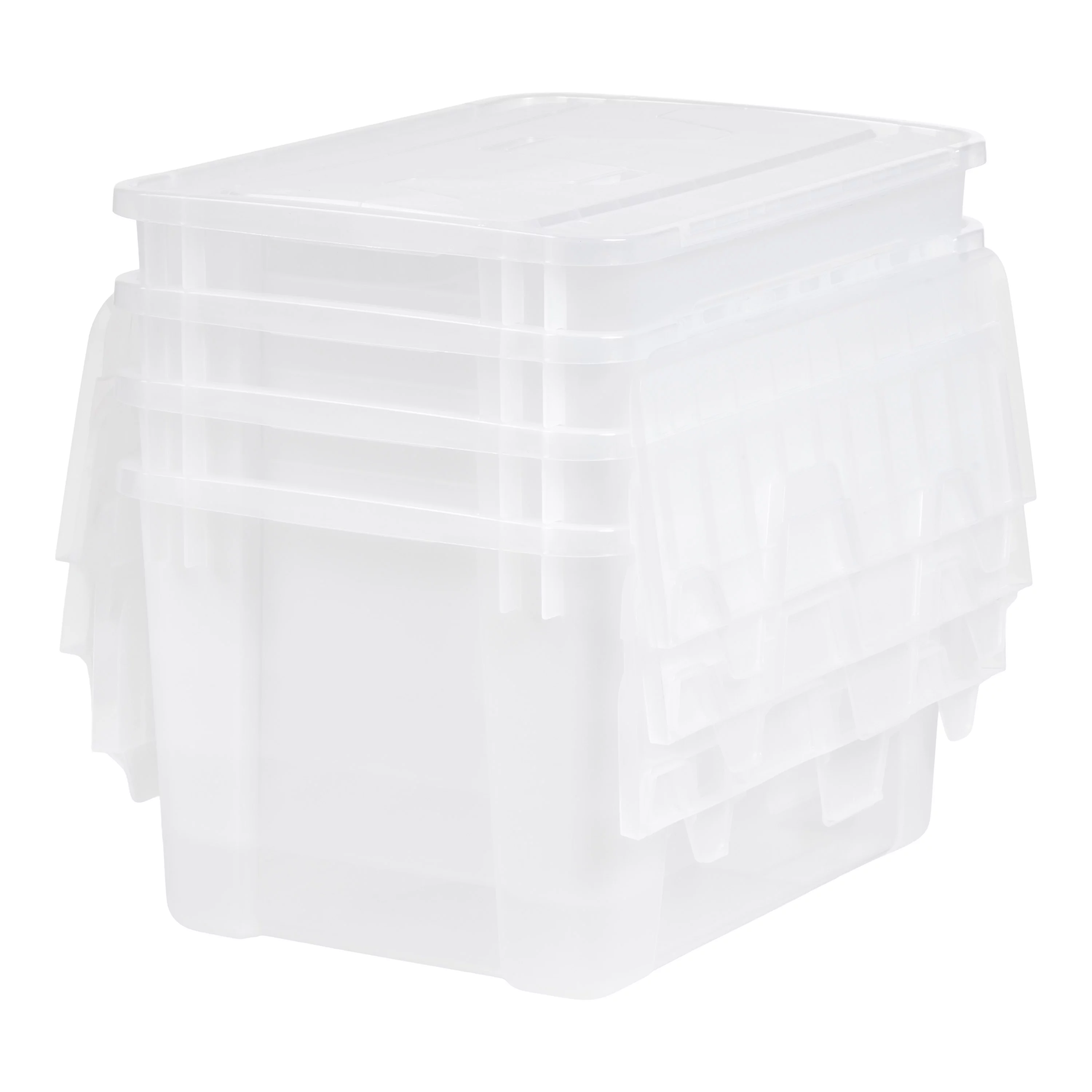 IRIS USA 50 Qt. (12 gal.) Plastic Storage Box with Attached Hinged Lid, Clear, Set of 4