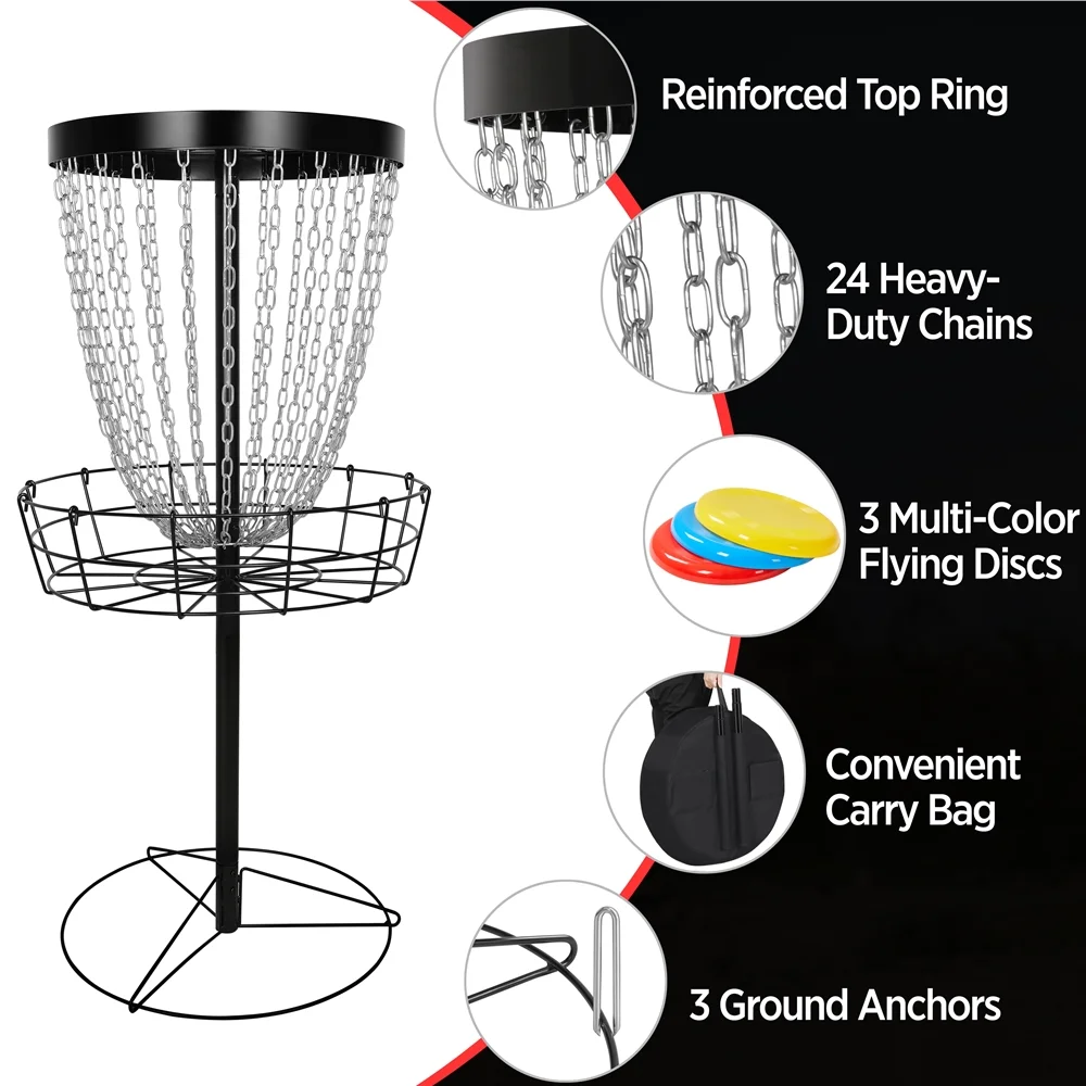 Topeakmart 24-Chain Portable Disc Golf Basket with 3 Discs and Carrying Bag