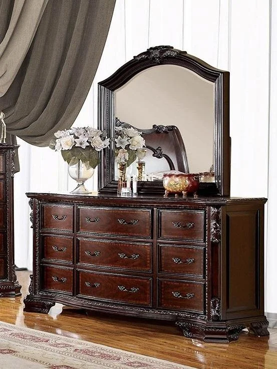 Antique Platinum Sleigh King Bedroom Set 6Pcs B9506 Mcferran Classic Traditional