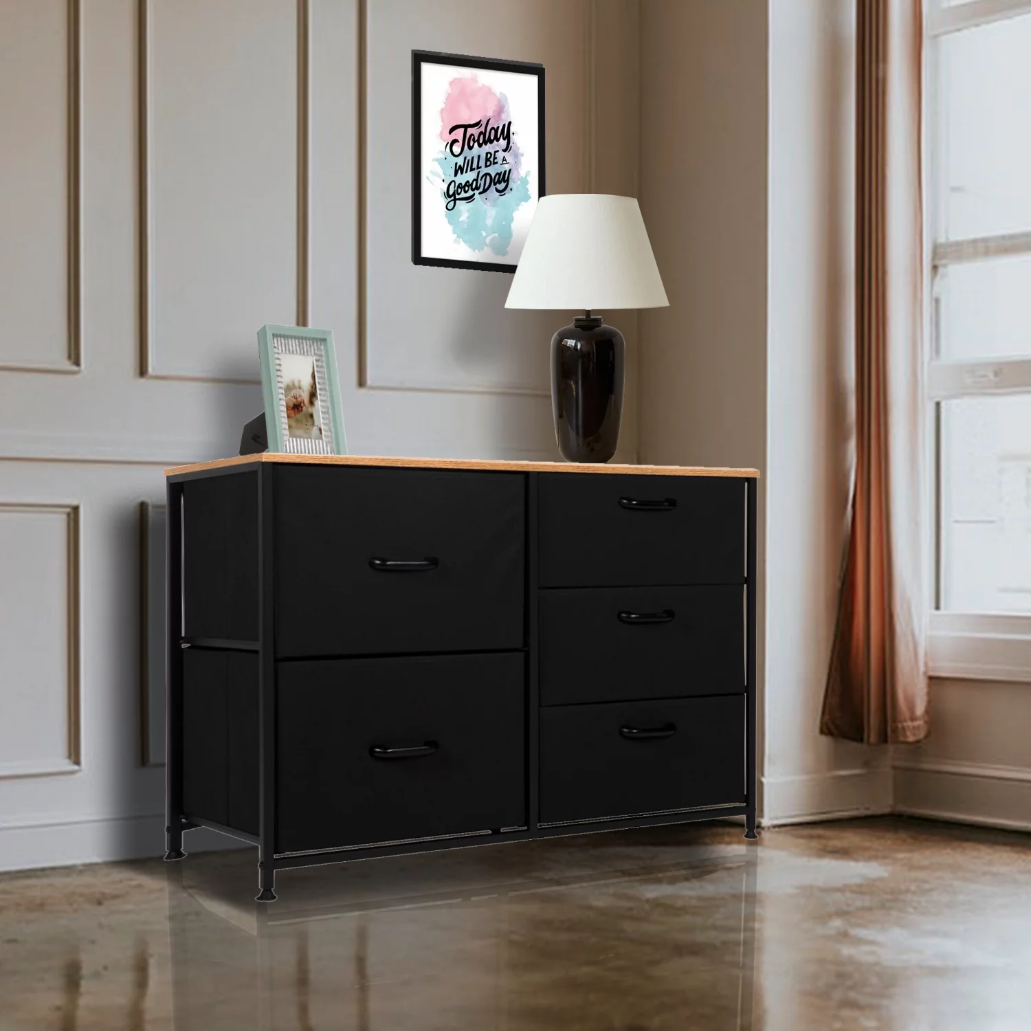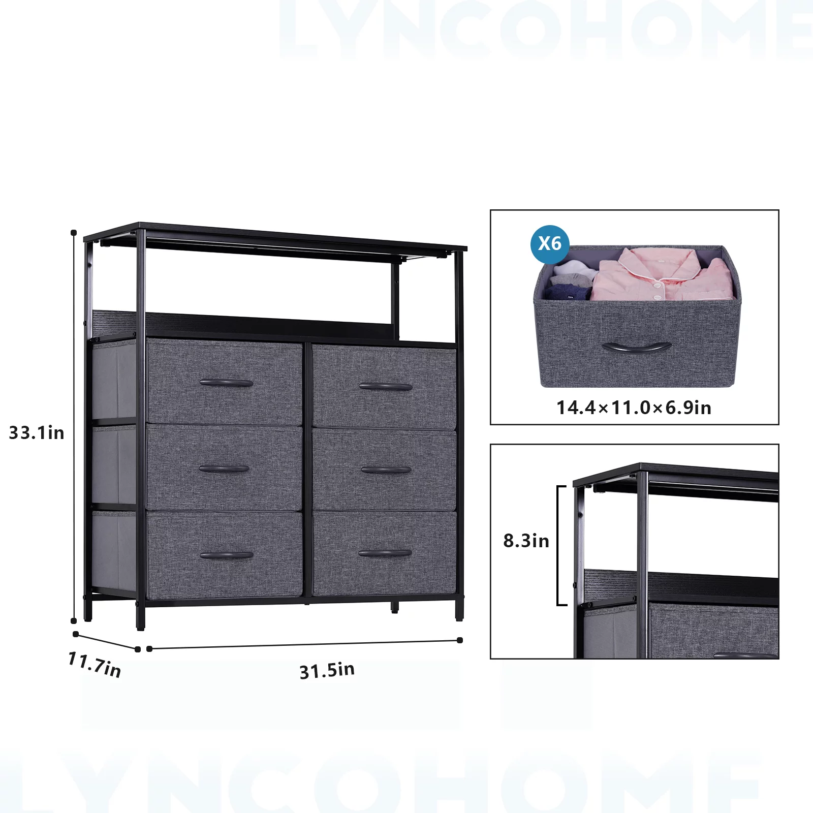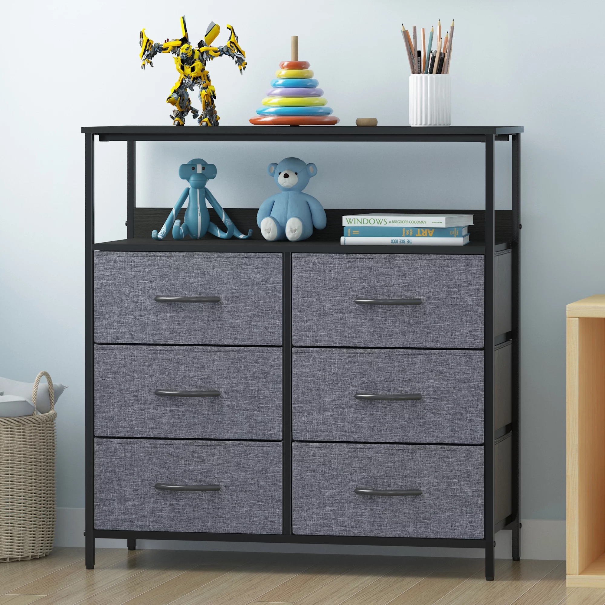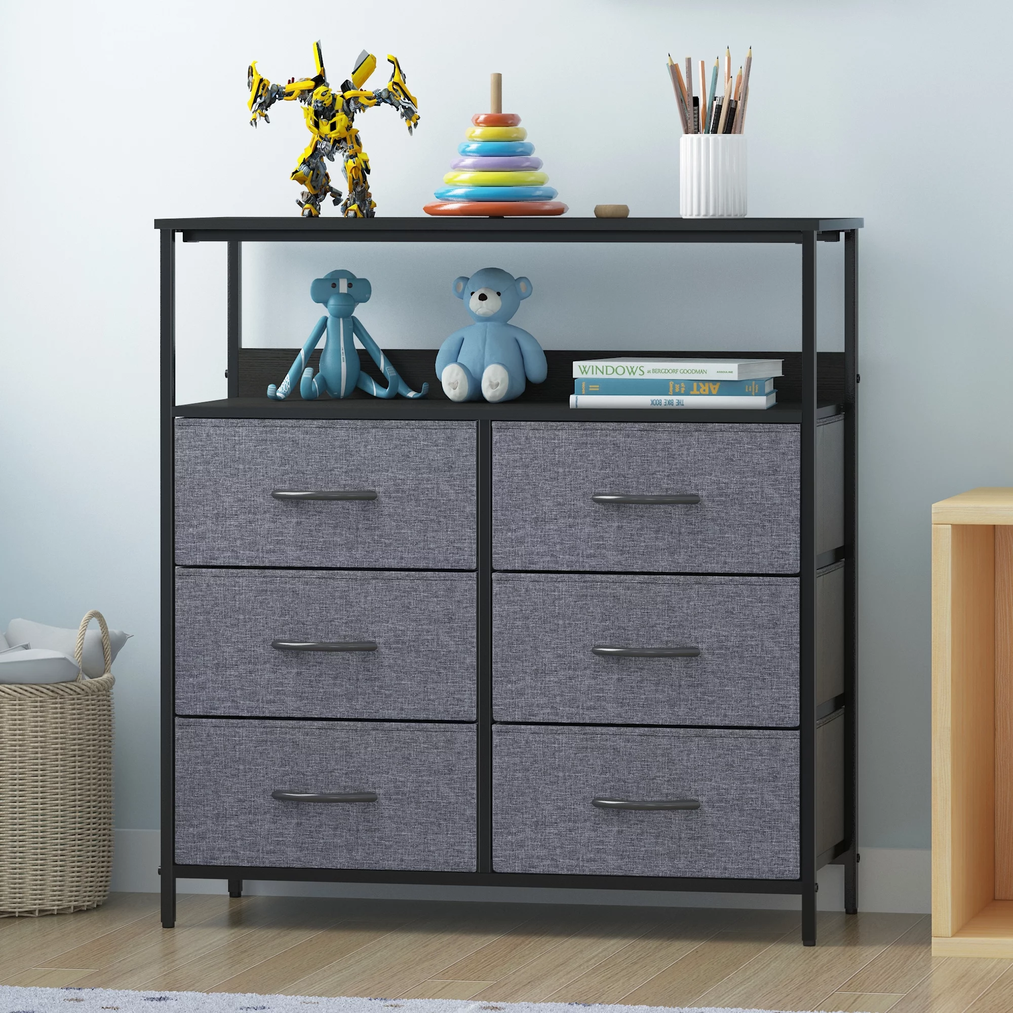 6-Drawer Dresser, Fabric Dresser for Bedroom, Kids Dresser, Chest of Drawers, Gray Finish