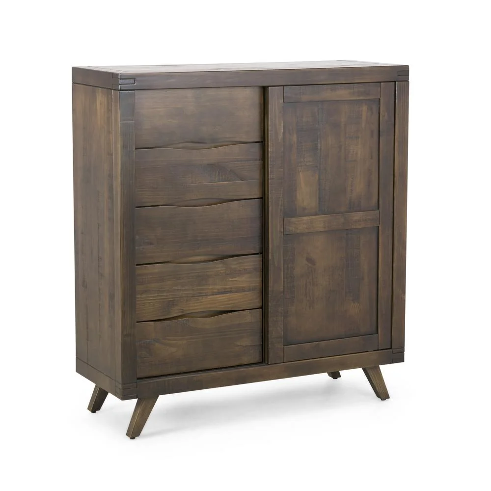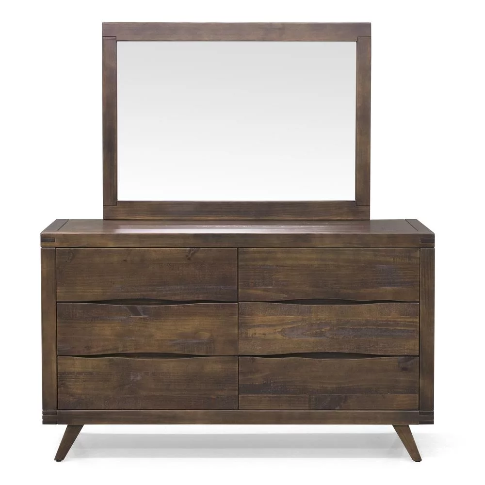 6pc Bedroom Furniture Set Eastern King Size Bed Dresser Mirror 2x Nightstands Chest Gorgeous Two Tone Walnut Solid wood Acacia