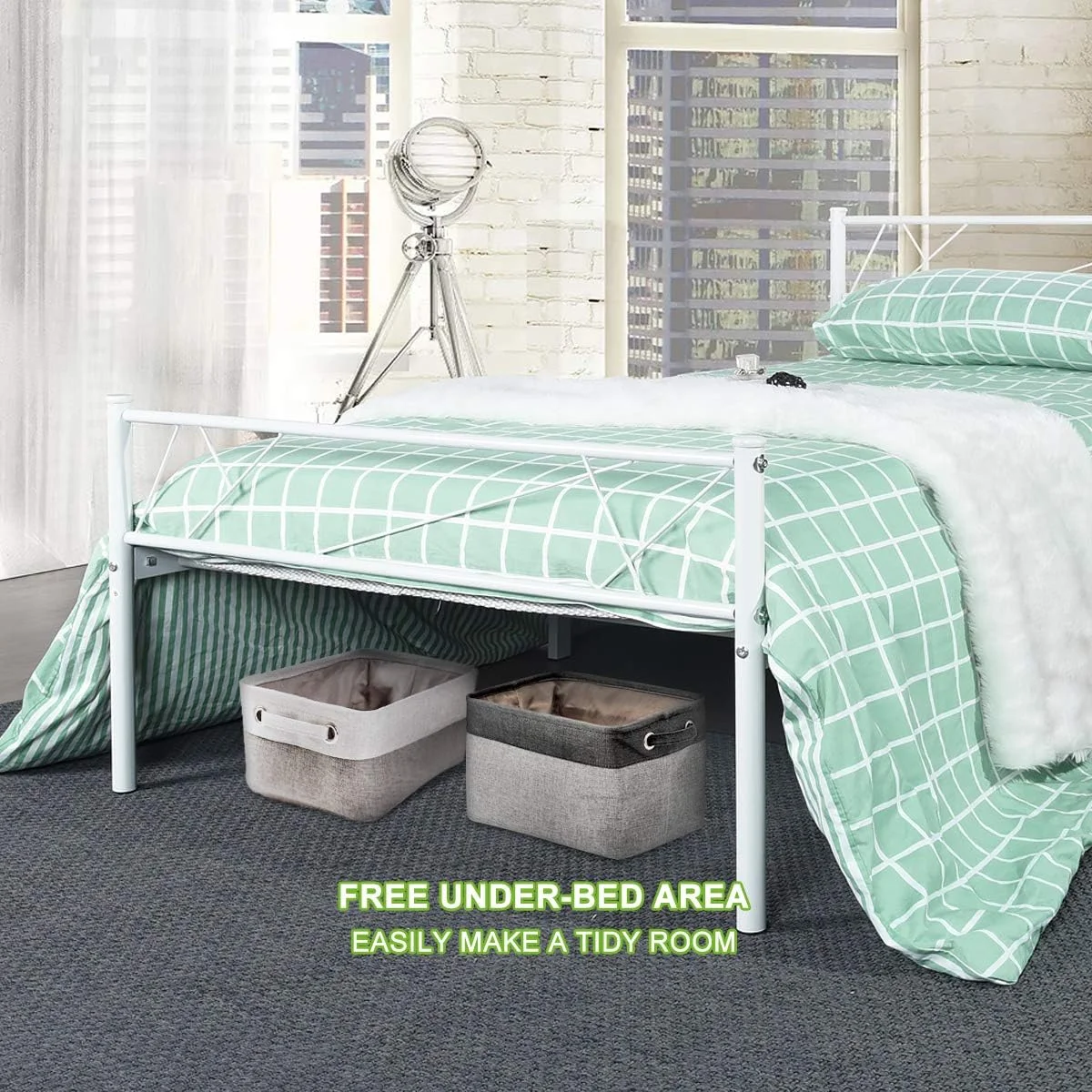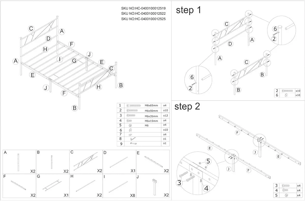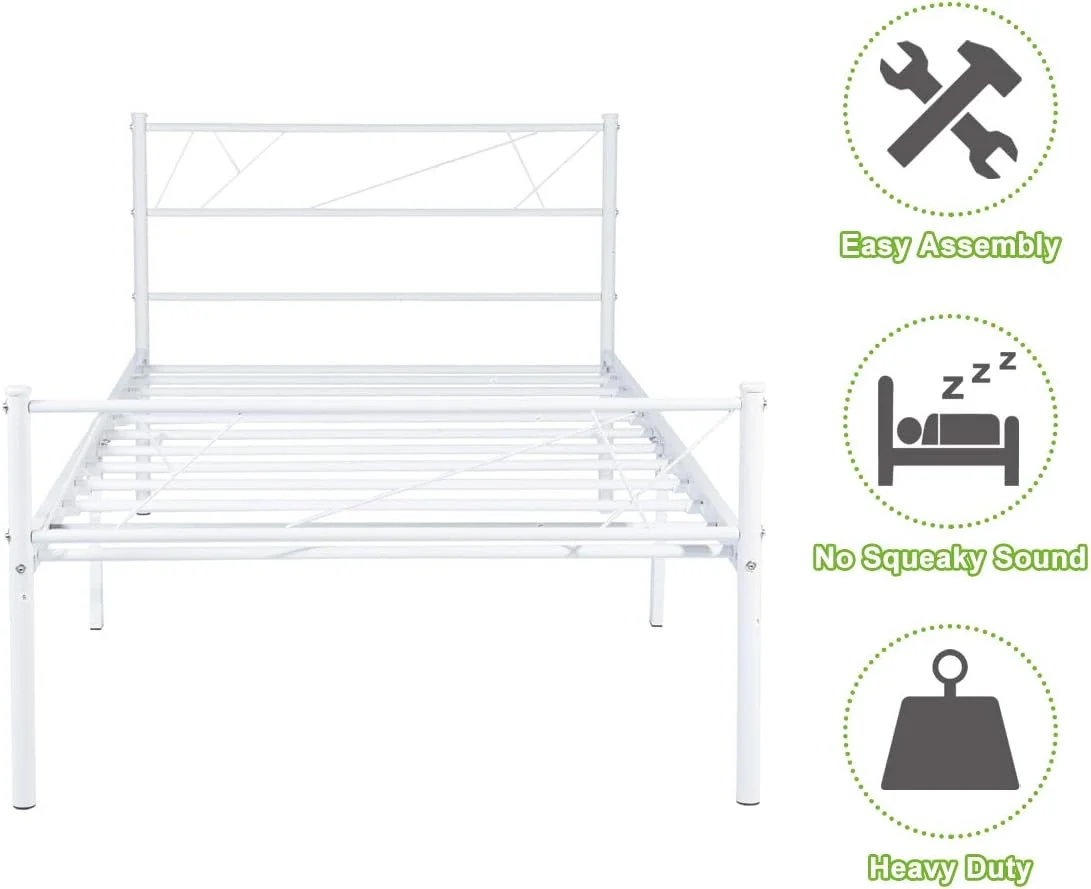 JIAH Metal Bed Frame Size with Headboard and Footboard Platform Base Bed Frame (,Antique Brown)