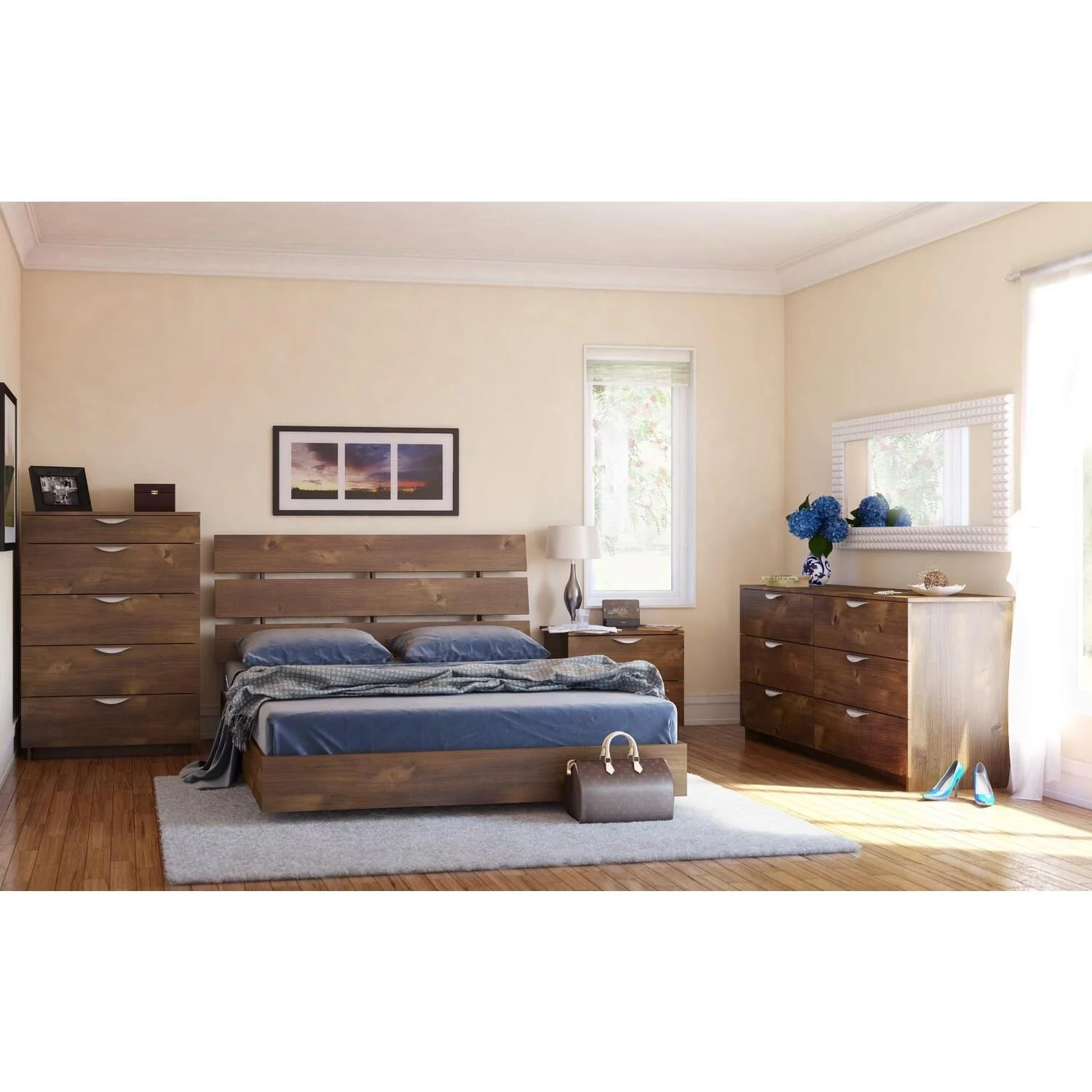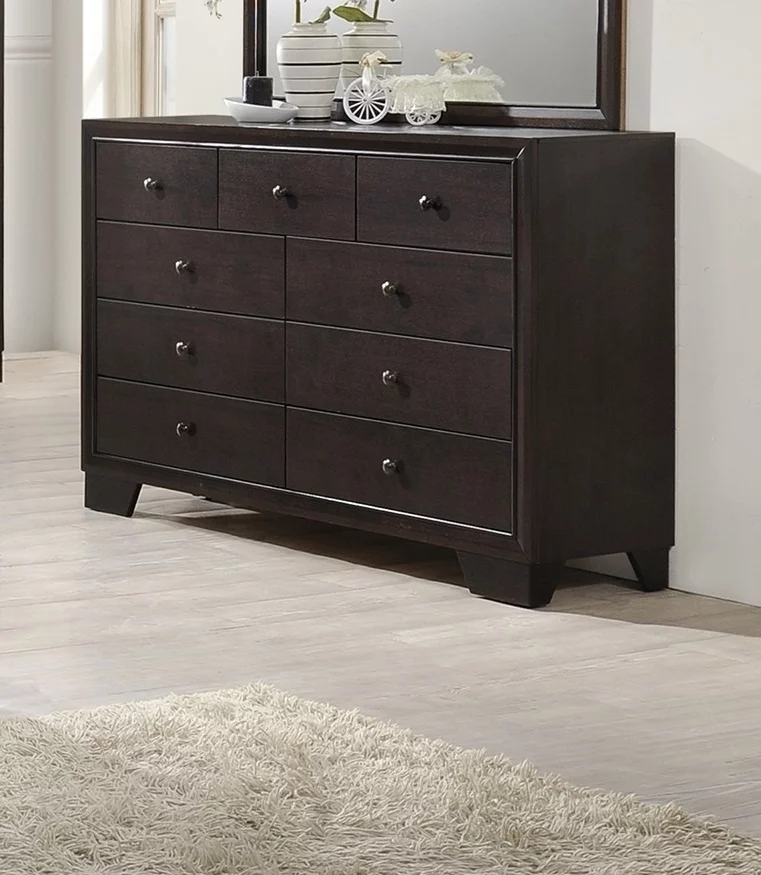 Contemporary Bedroom Furniture King Size Bed Set Dresser Mirror Nightstand Brown Finish 4pc